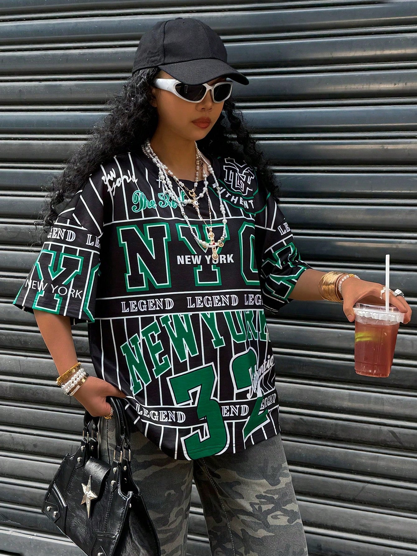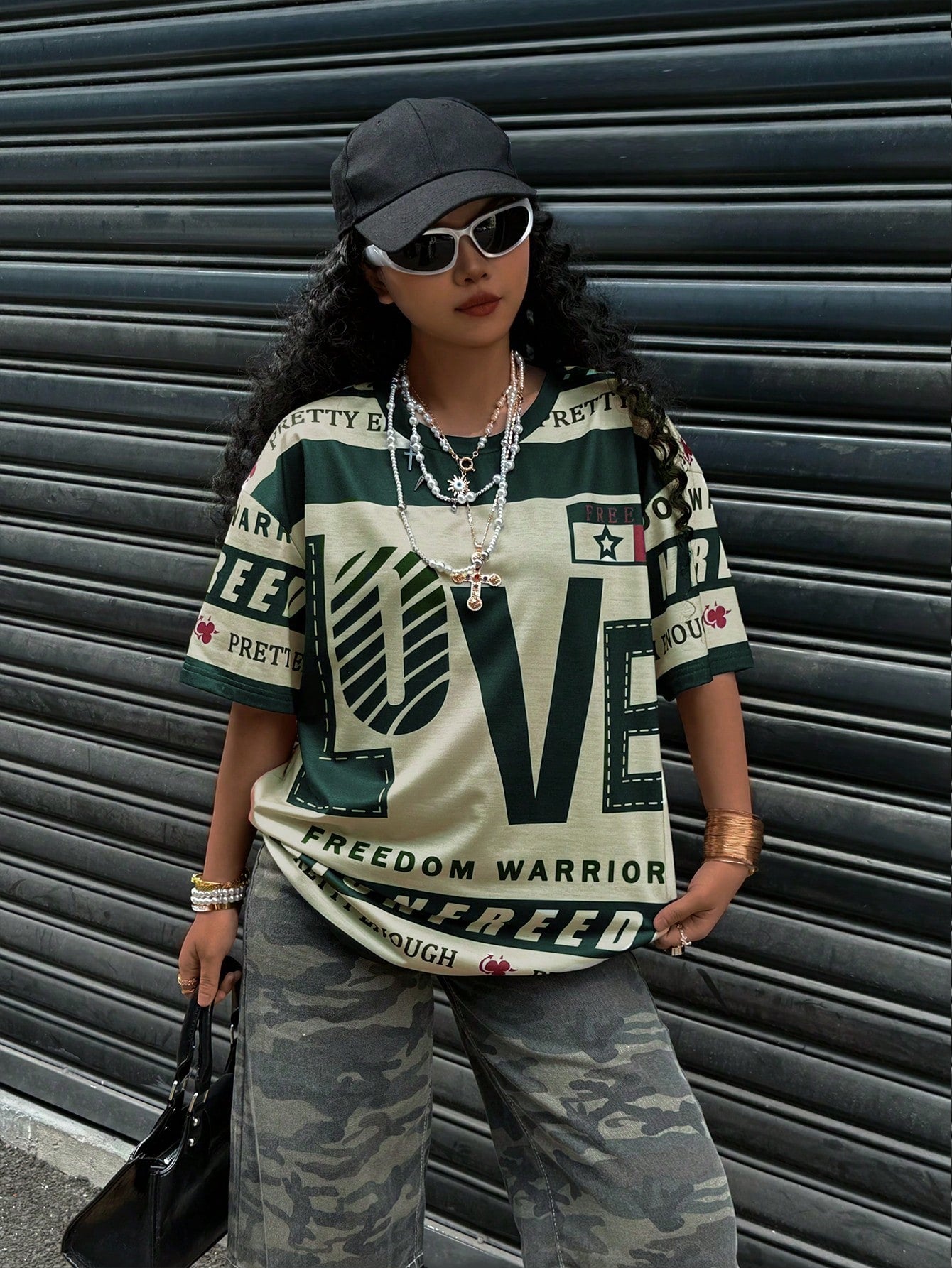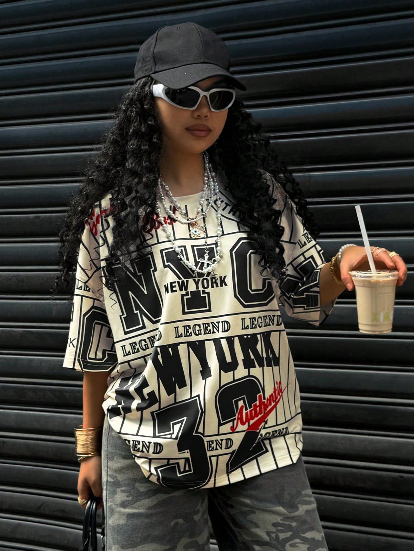 EZwear Women's Casual Striped Letter Print Short Sleeve T-Shirt