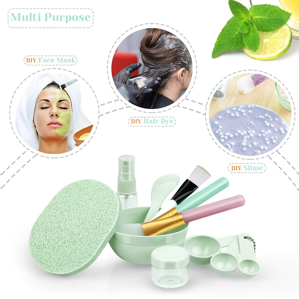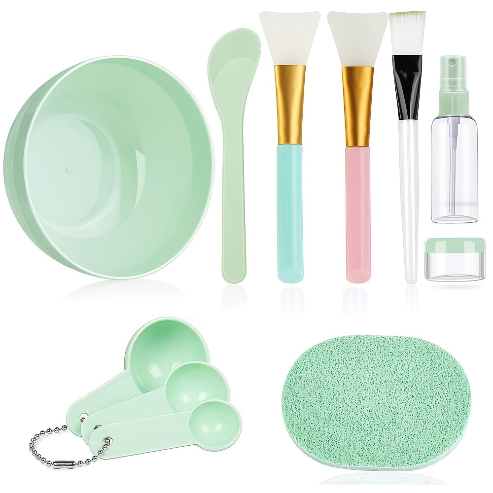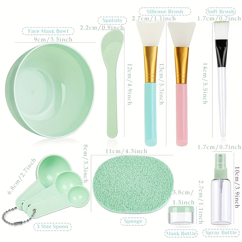 Face Mask Mixing Bowl Set, 11pcs DIY Facemask Mixing Tool Kit with Facial Mask Bowl Stick Spatula Silicone Brush Spray Bottle Puff Soaking Bottle Gauges