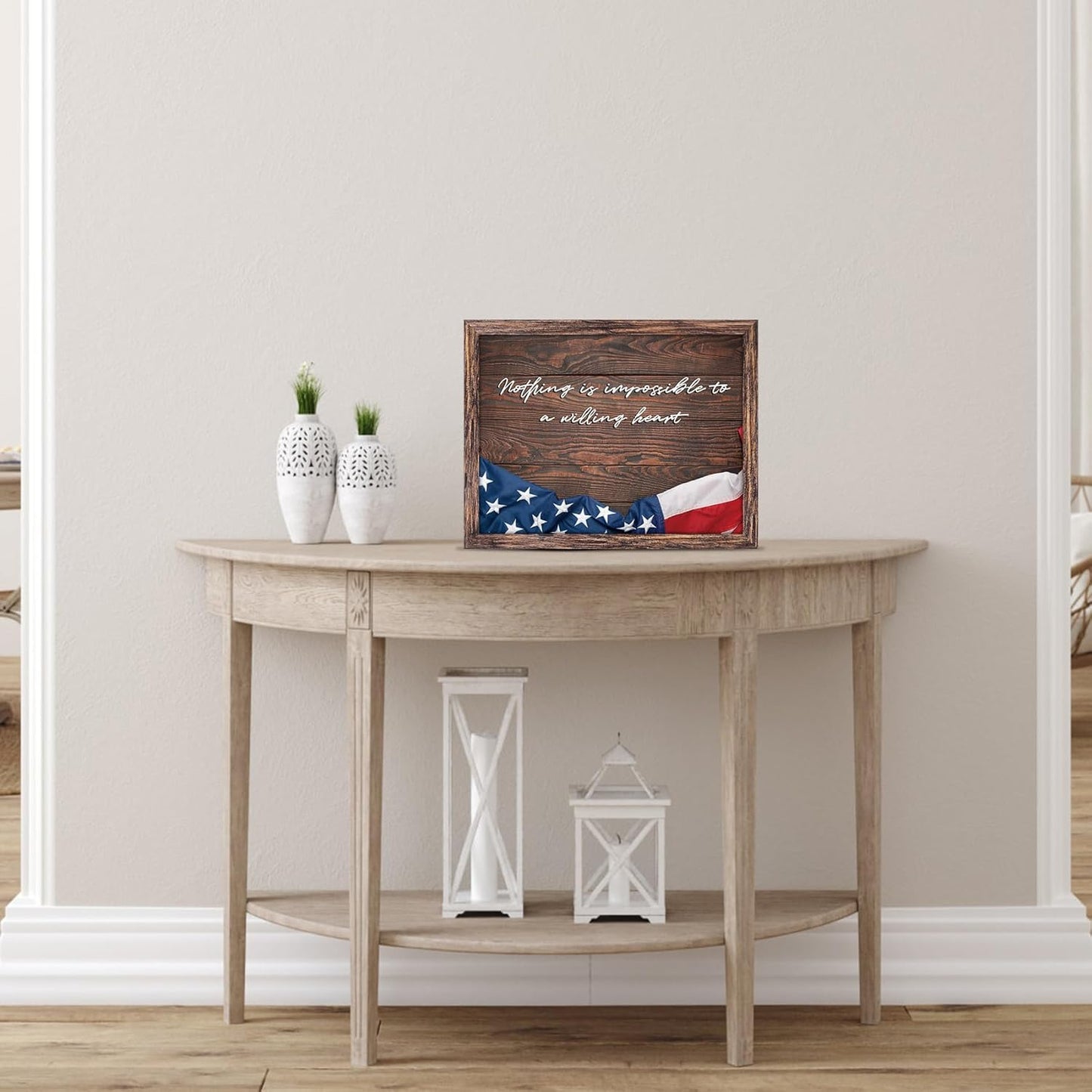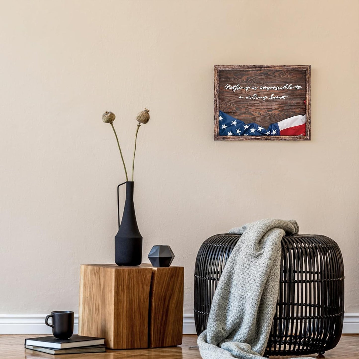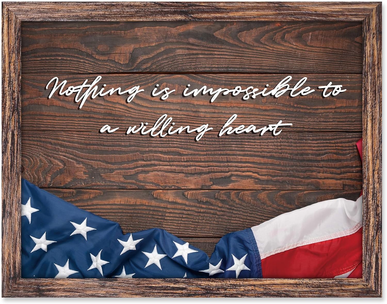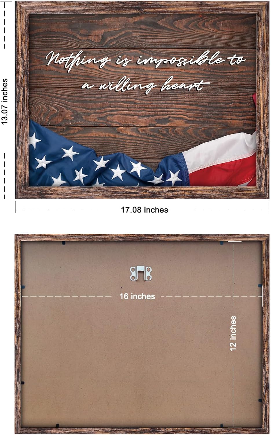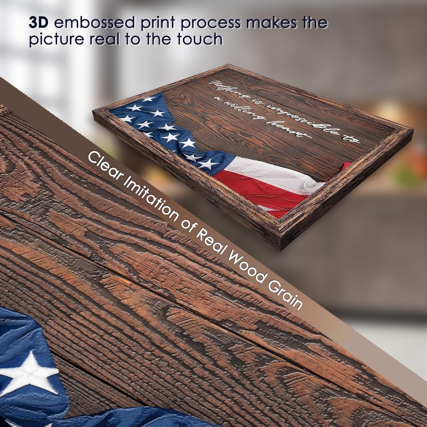 Farmhouse Rustic American National Flag Wall Art Modern Embossing Plate Patriotic Pride Motivational Framed Artwork for Living Room Office Bedroom Wall Decor - 12''x16''
