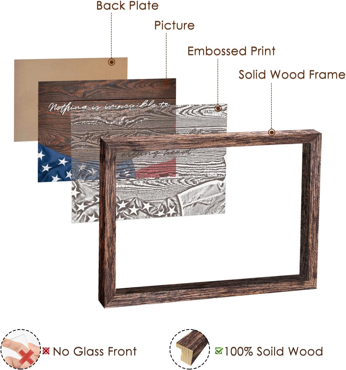 - [HIGH-QUALITY MATERIALS] This 12x16 wall art frame is made of wood(Walnut rustic wood grain paper wrapping), that is different from the one made of PS or MDF. It's more durable and free from the change of humidity and temperature.Therefore, not easily deformed. Framed wall art decorative size: 12 x 16 inches.