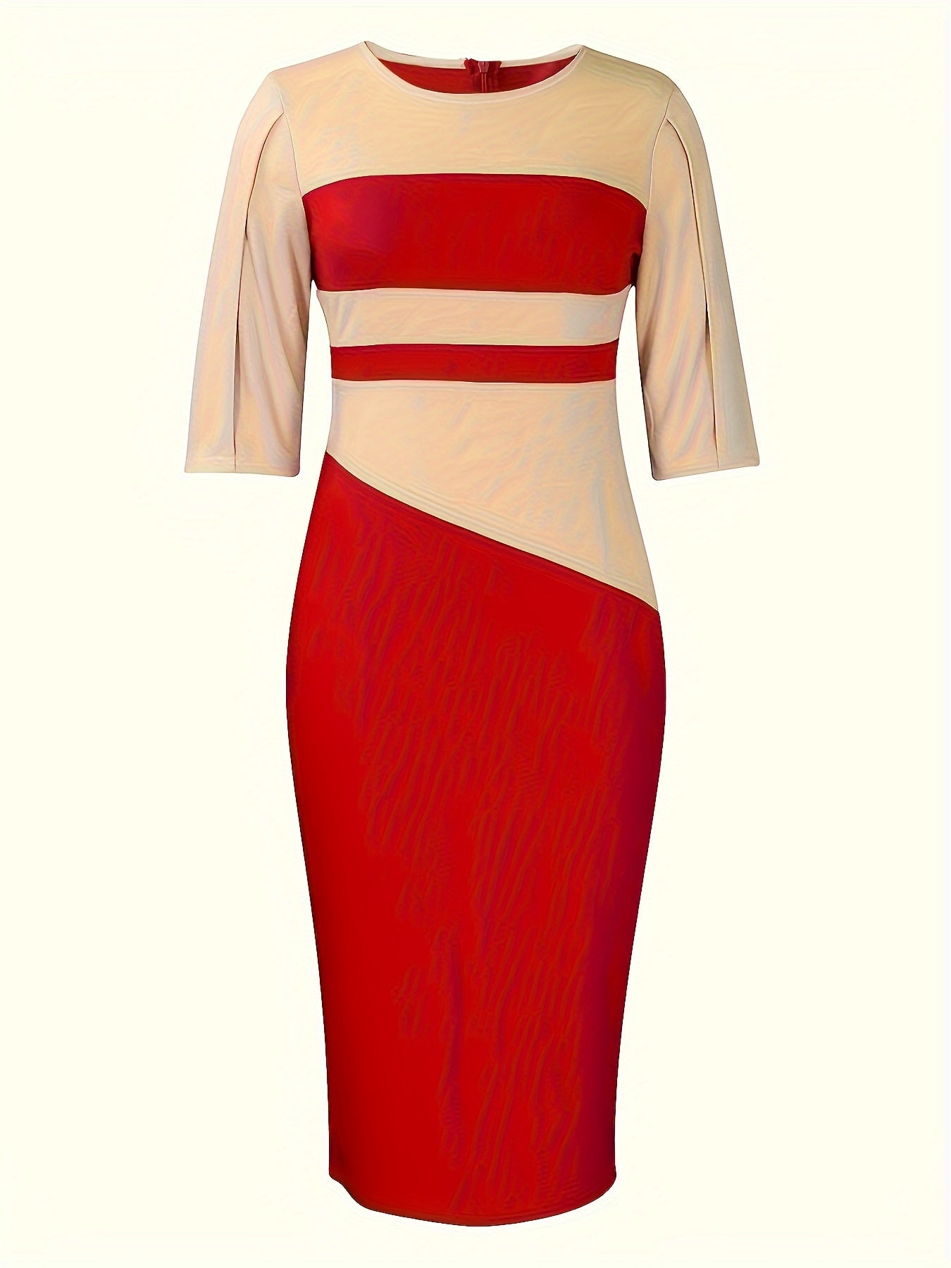 Fashion-Forward Color Block Midi Dress - Versatile Crew Neck Bodycon Style - Perfect for Modern Womens Wardrobe