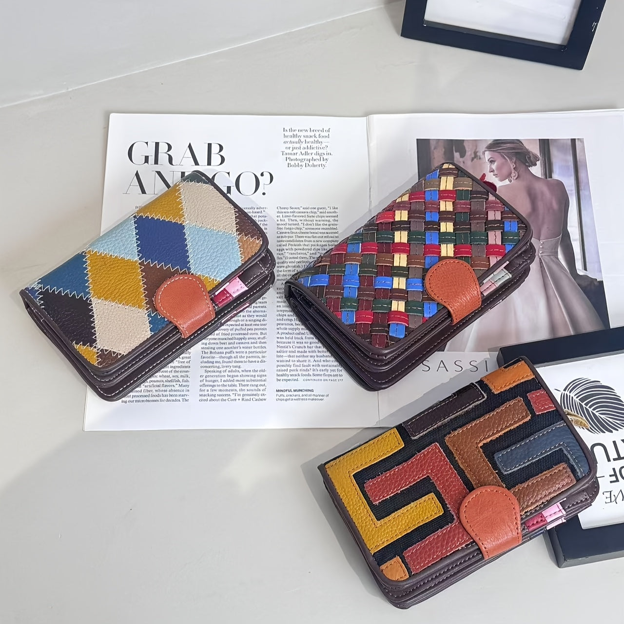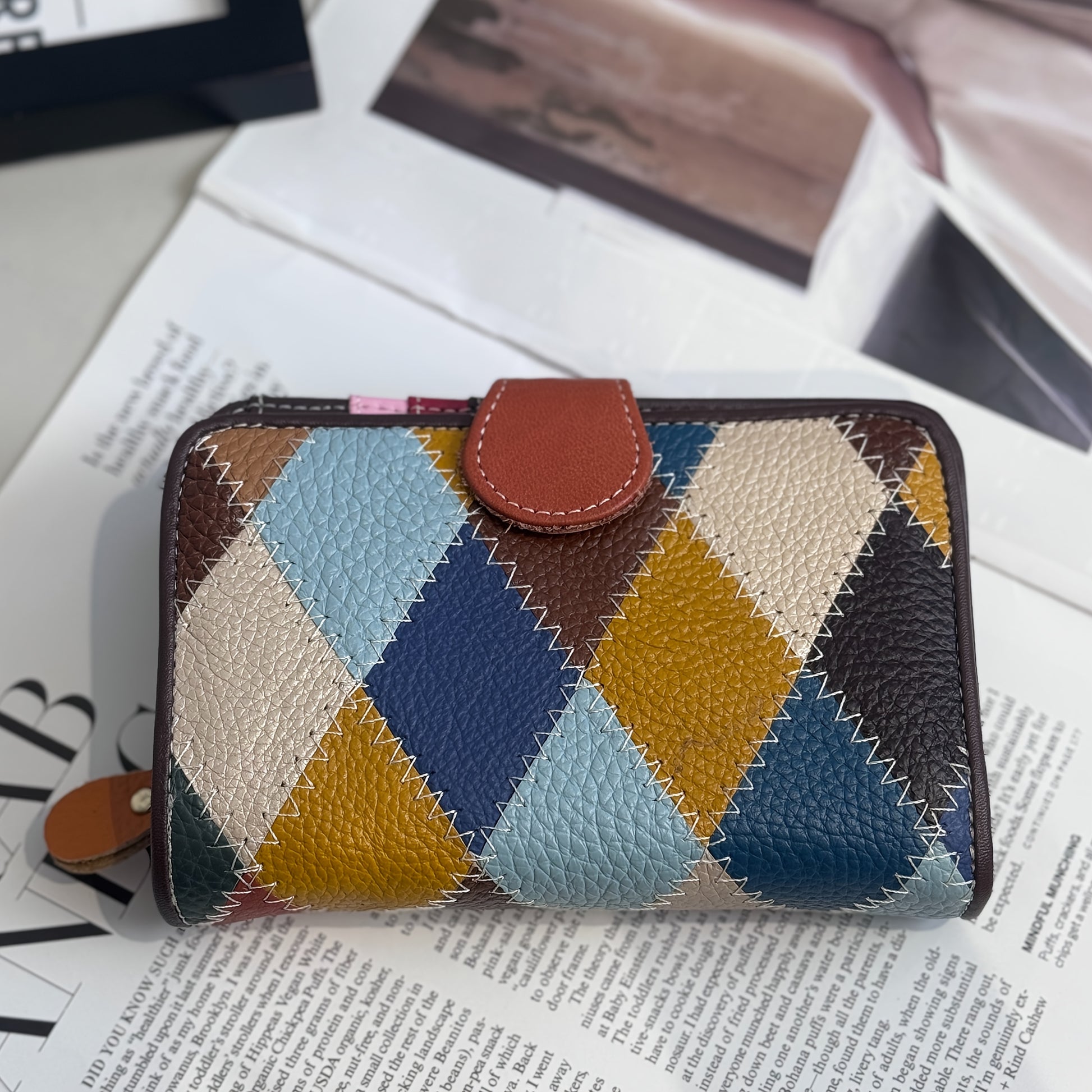 Fashion Leather Short Purse Purse Women'S Bag Head Layer Cowhide Color Splicing Multi-card Purse Certificate Bag