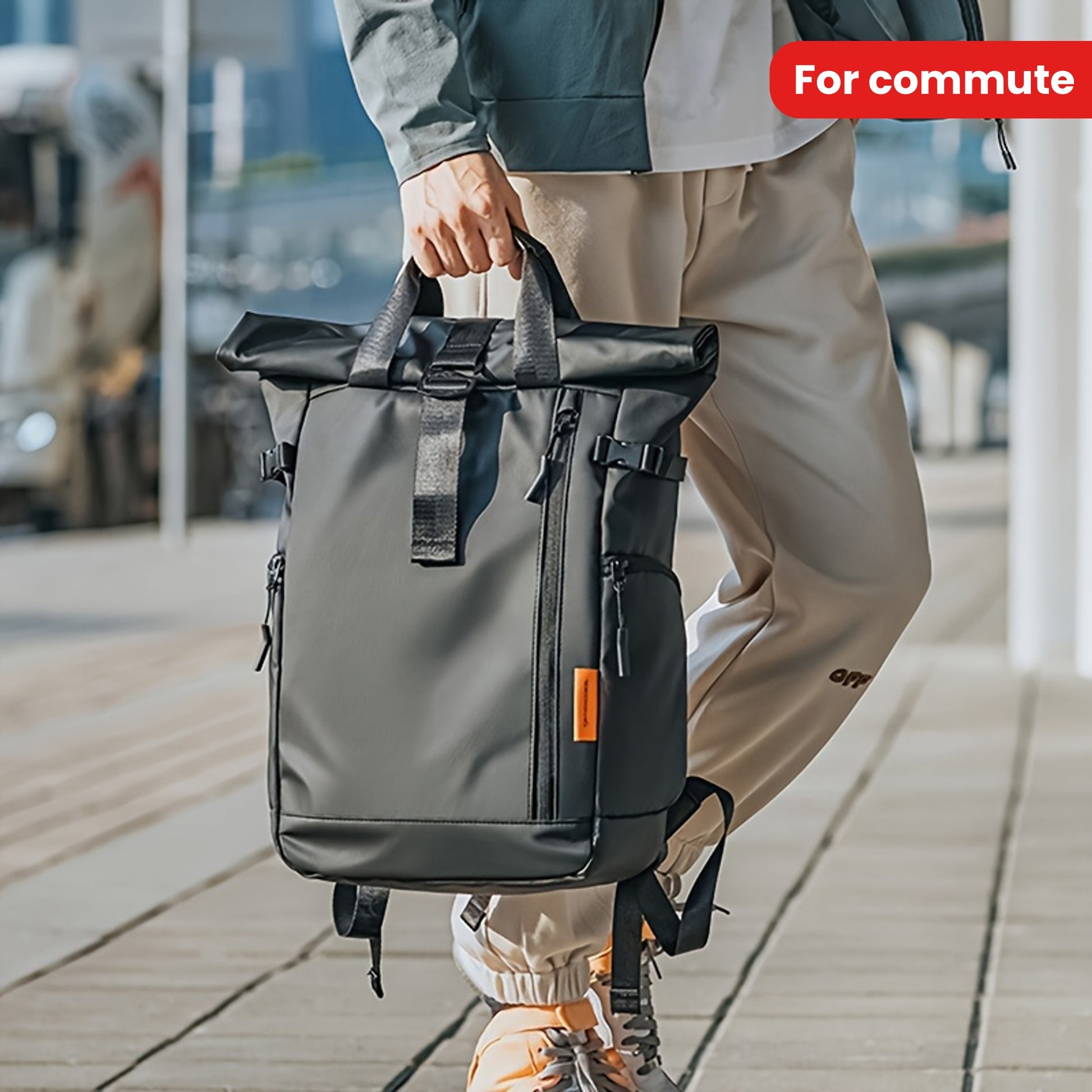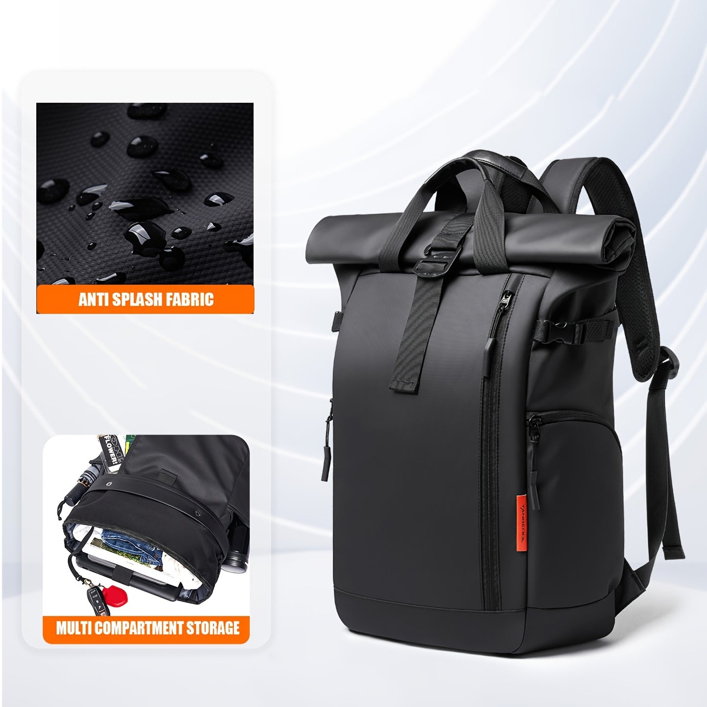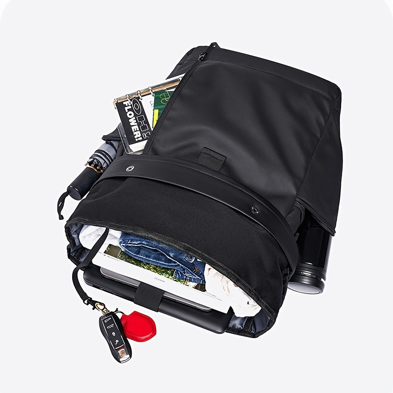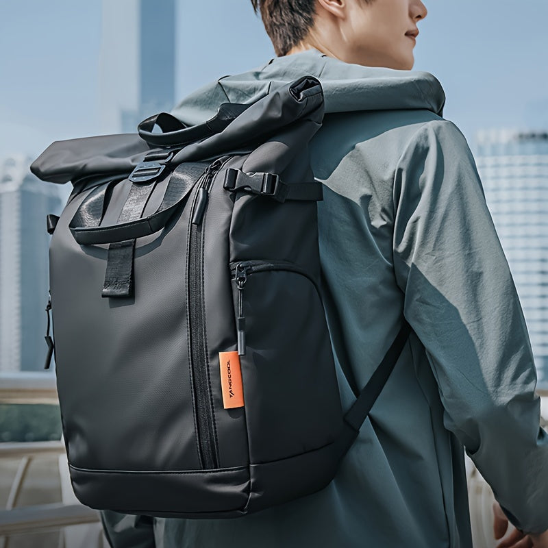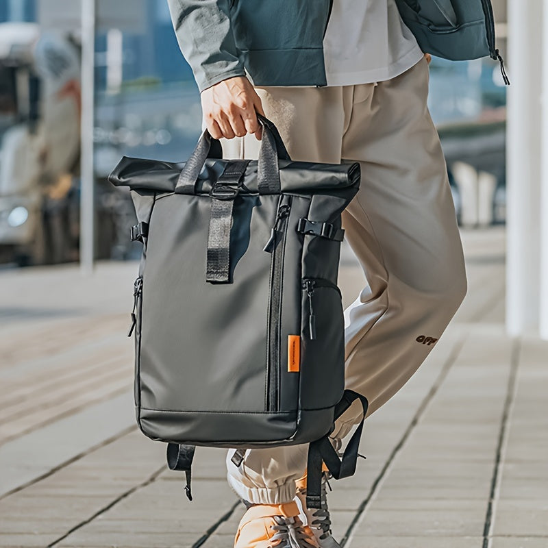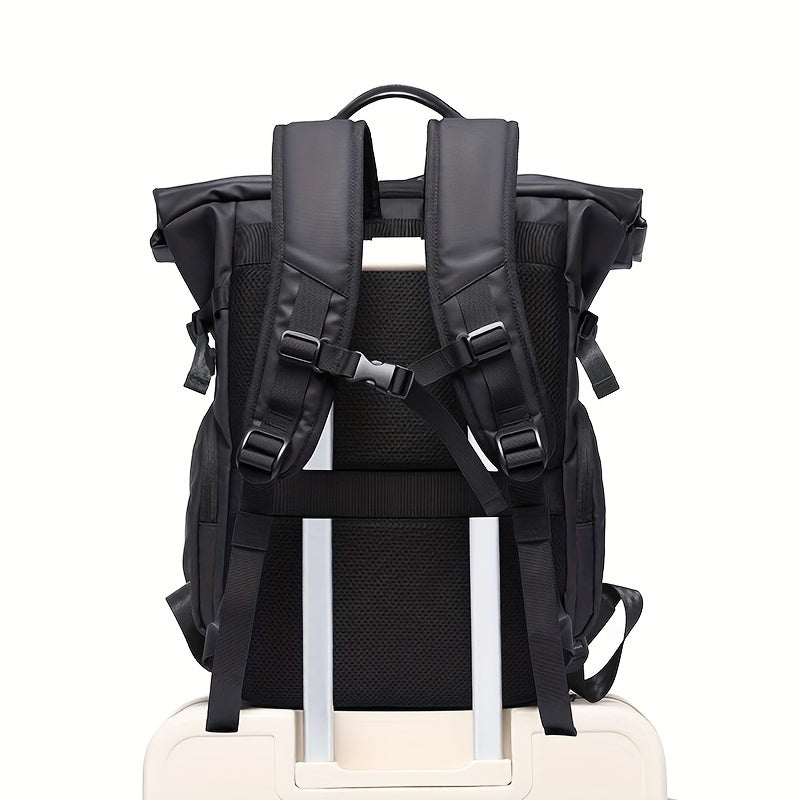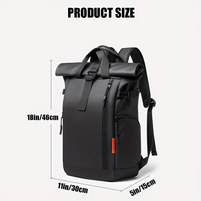 Fashionable Business Backpack With Rolling Top Design, Outdoor Commuter Bag For Men, Casual Daypack For Going Out & Leisure Travel, Waterproof 15.6-in Laptop Bag