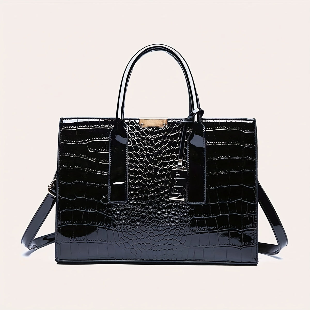 Fashionable Solid Crocodile Print Square Tote Bag - Timeless Style for Womens Daily Commute - Durable, Textured, Trendy Shoulder Bag