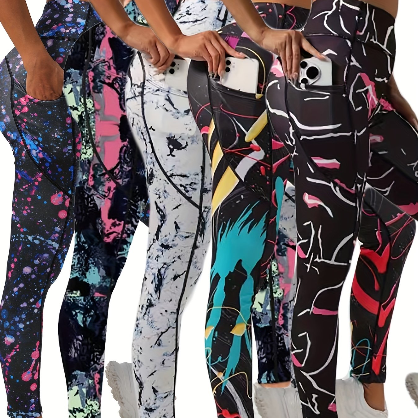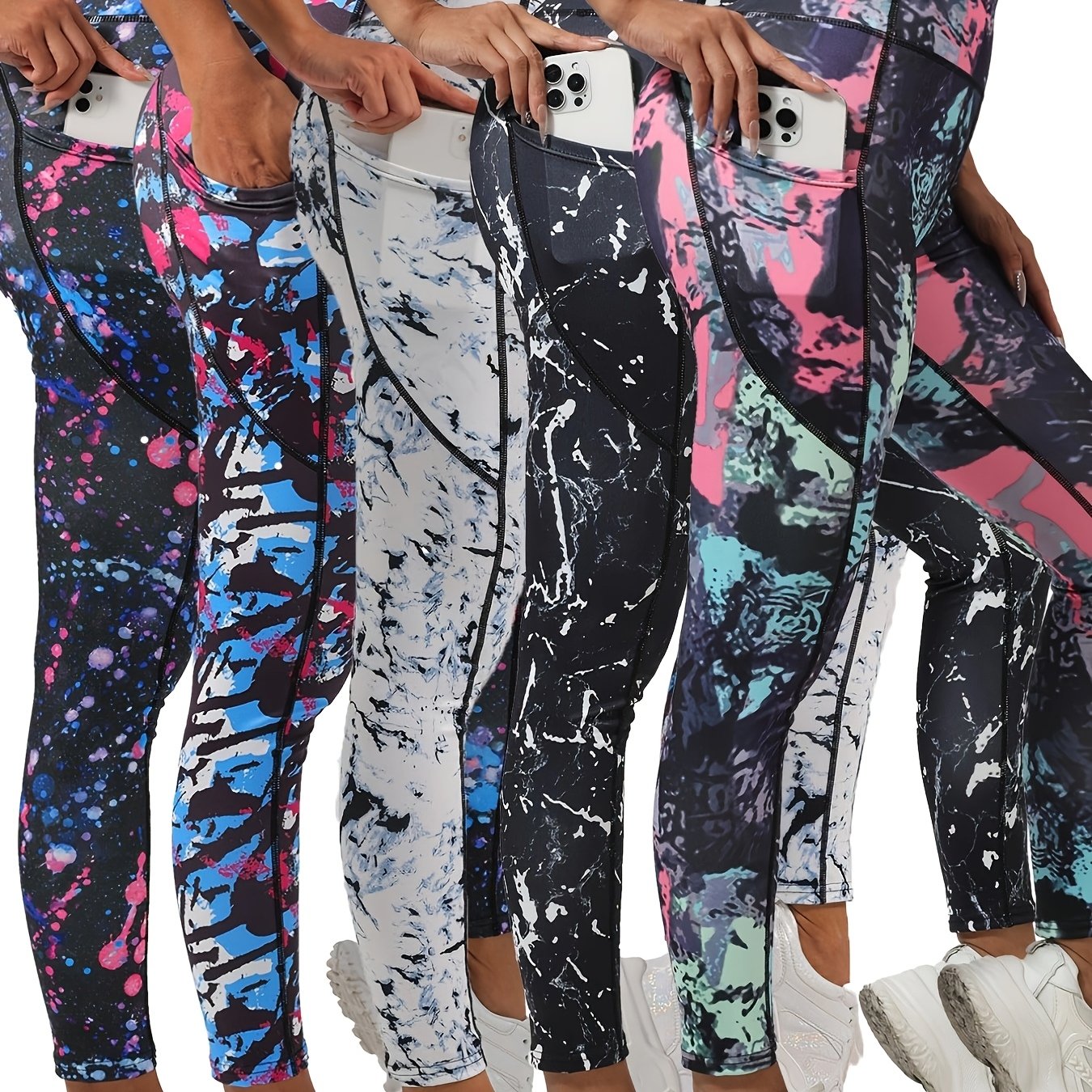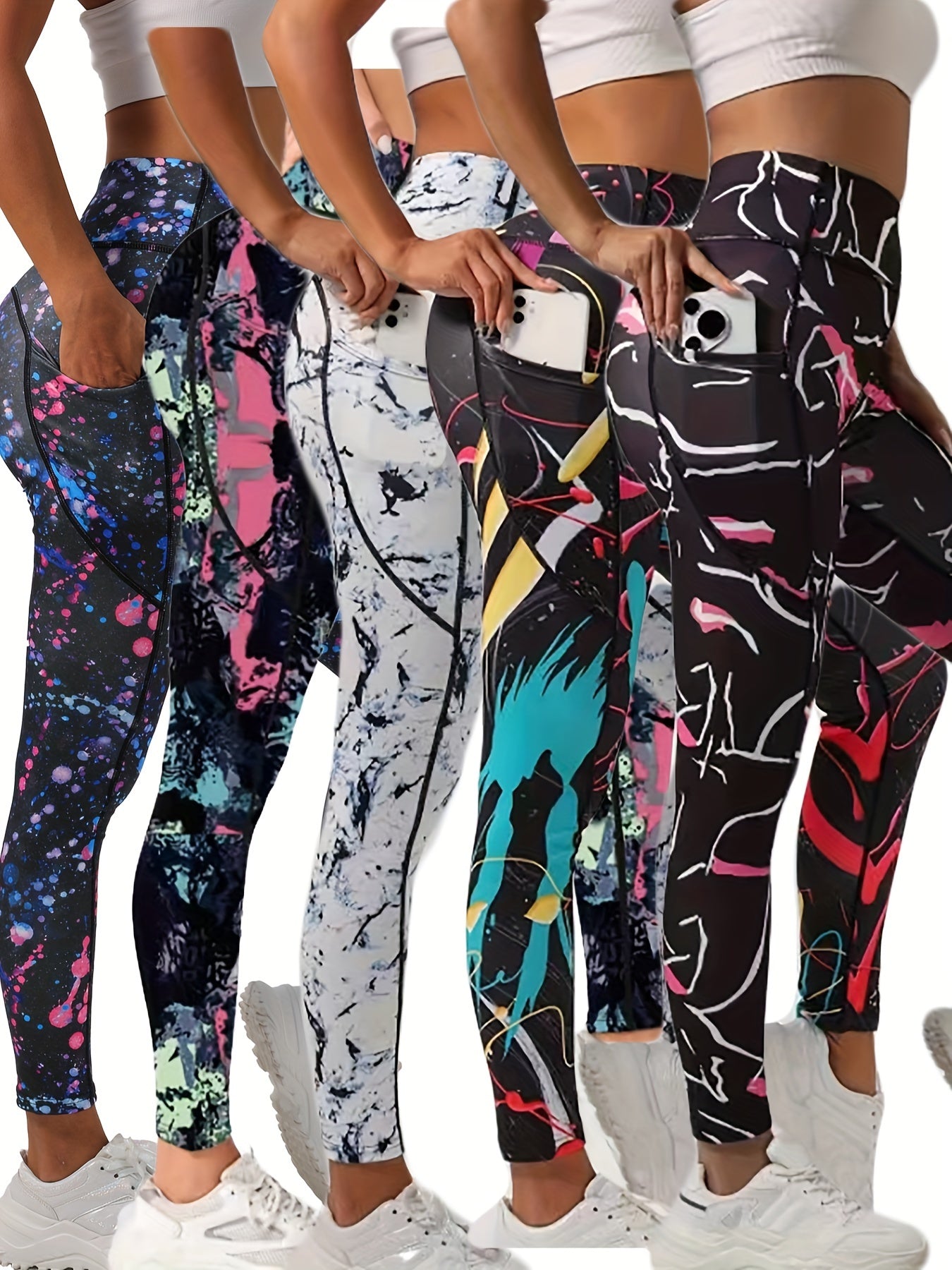Five-piece set of Women's high-waisted butt-lifting quick-drying, close-fitting, breathable, non-transparent fitness daily printed yoga pants for dating, outings, parties, and Valentine's Day gifts