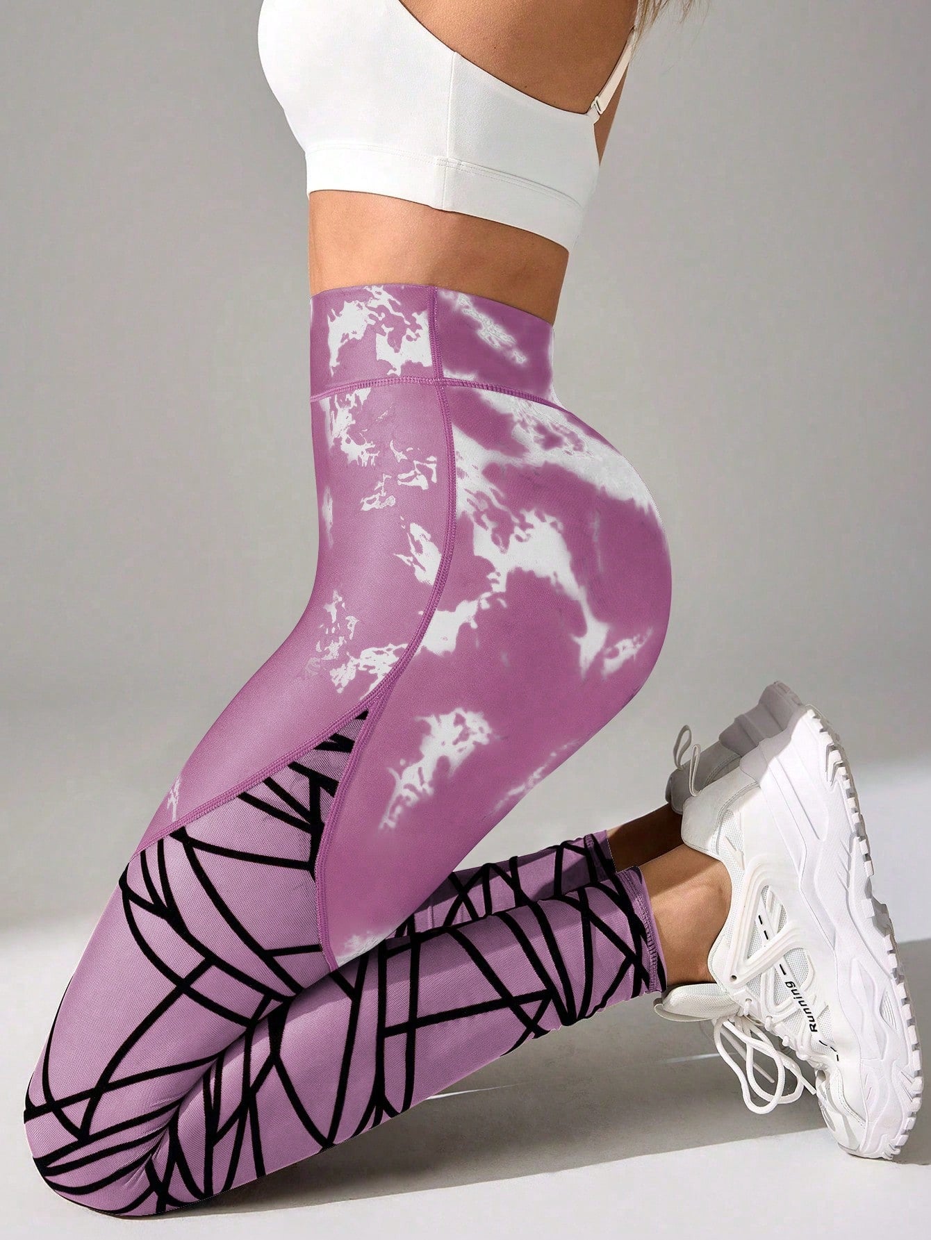Flocked And Mesh Contrast Sports Leggings