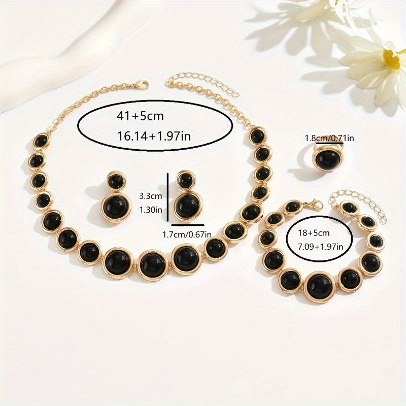 Four-piece Women's black rhinestone gradual change necklace, earrings and bracelet - stylish classic design for Casual Attire dinner occasions