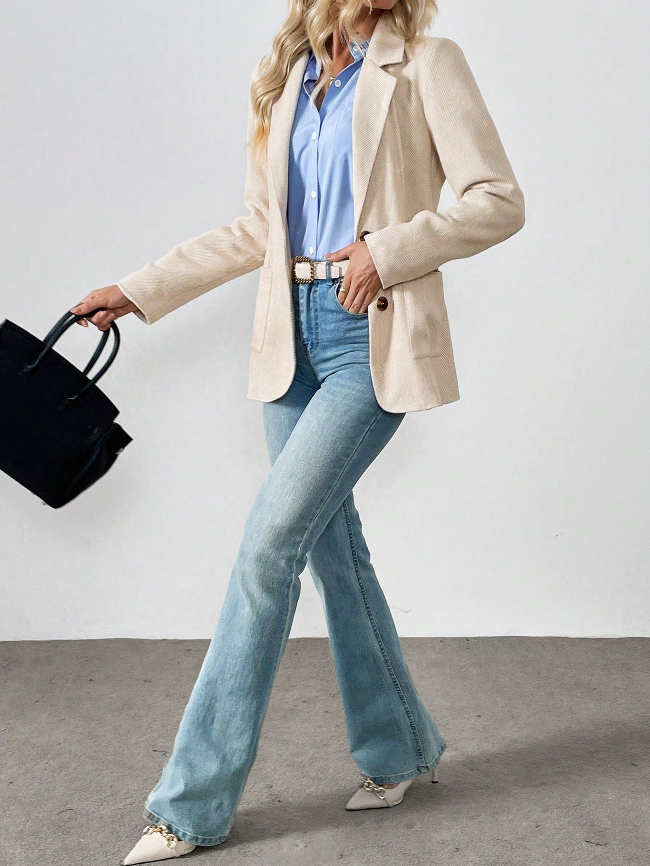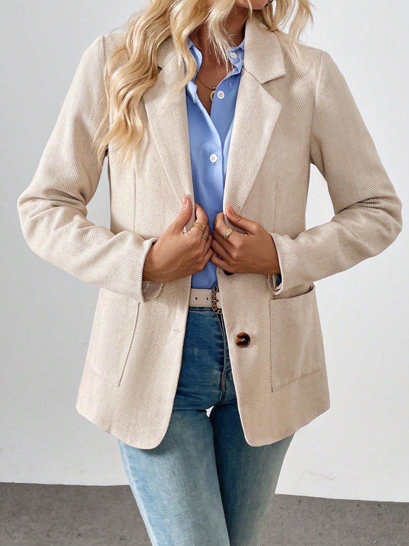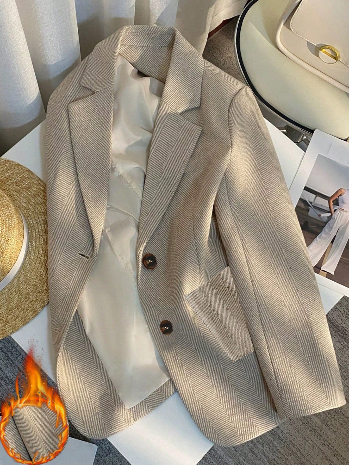 Franclia Classic Old Money Style Women's Jacket, Herringbone Tan Wool Lining, High-Quality Lady's Suit Coat For Autumn/Winter