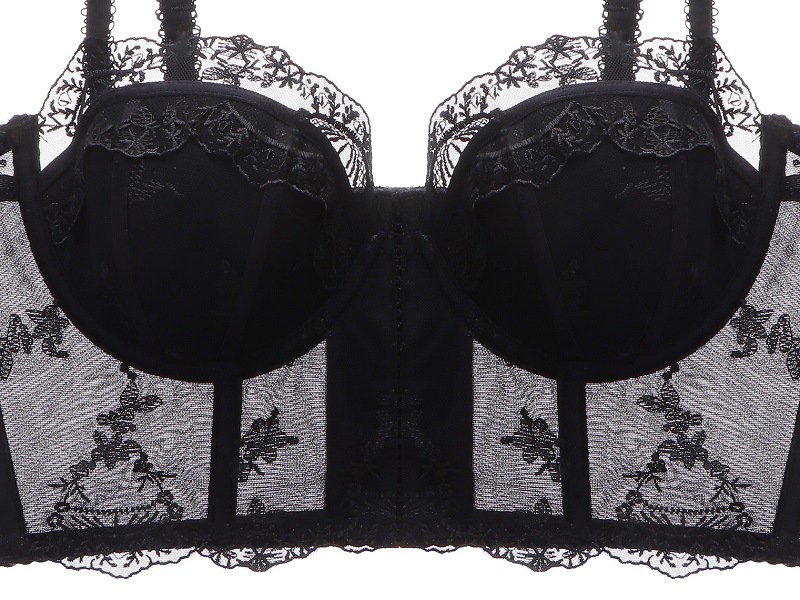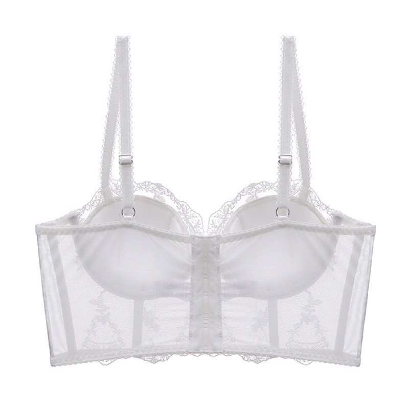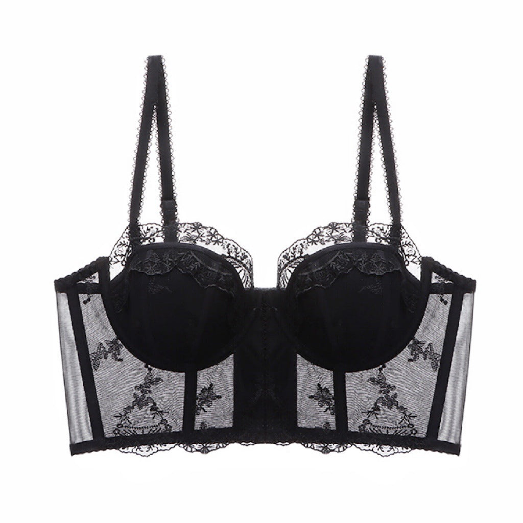 French Sexy Embroidery Lace Long Underwear Women Thin Cup Soft Steel Ring Boning Corset Body Shaping Push up Bra