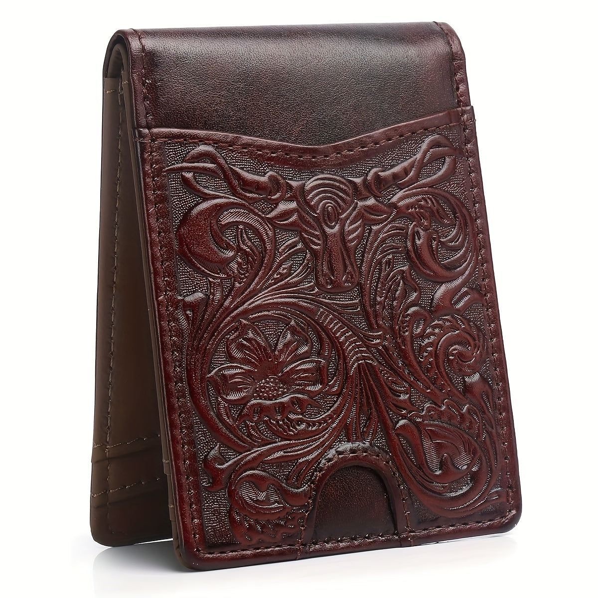 Full Grain Leather Wallets for Men Western Cowhide Leather Bifold Short Wallets for Men with 11 Slot Credit Card Holders Slim Minimalist Wallet, Gifts for Men
