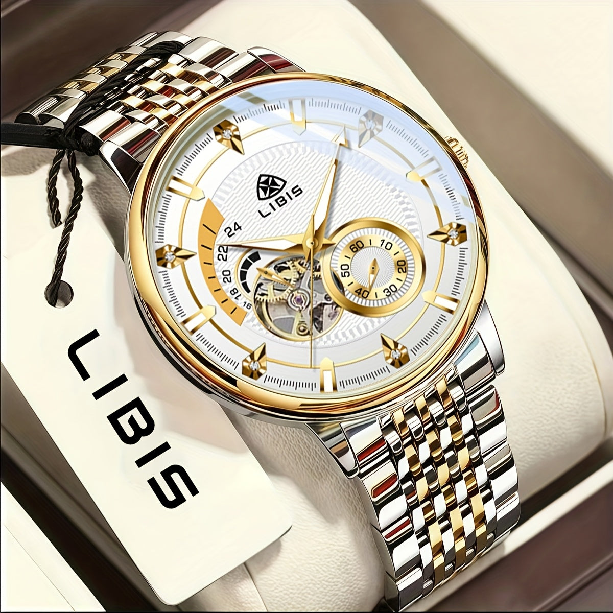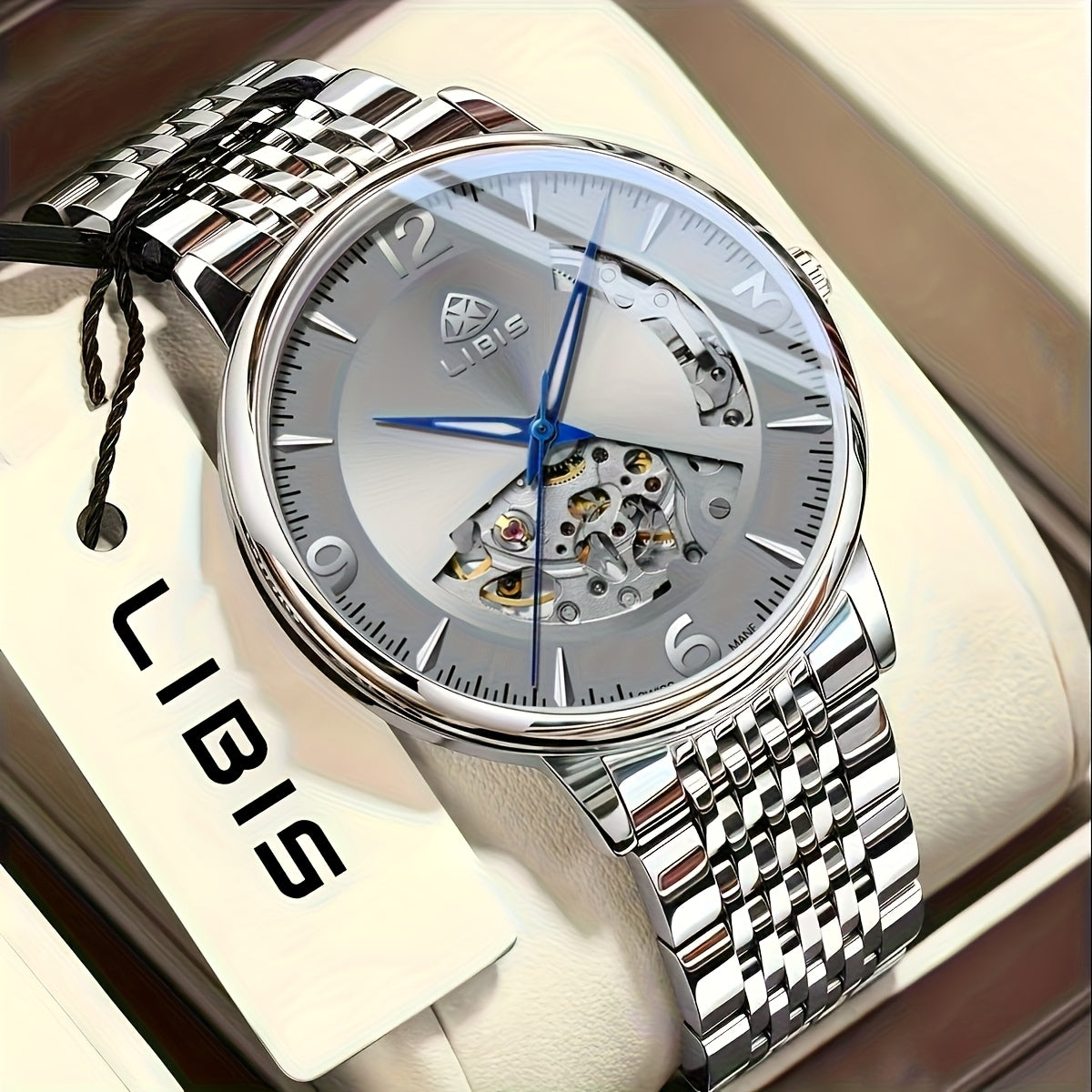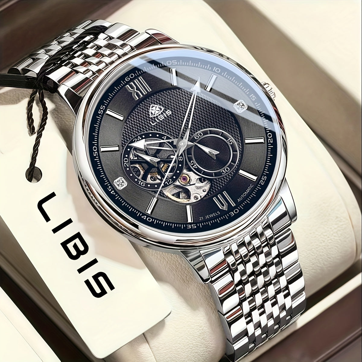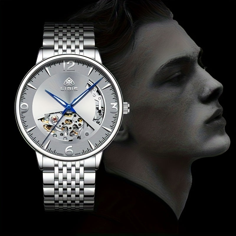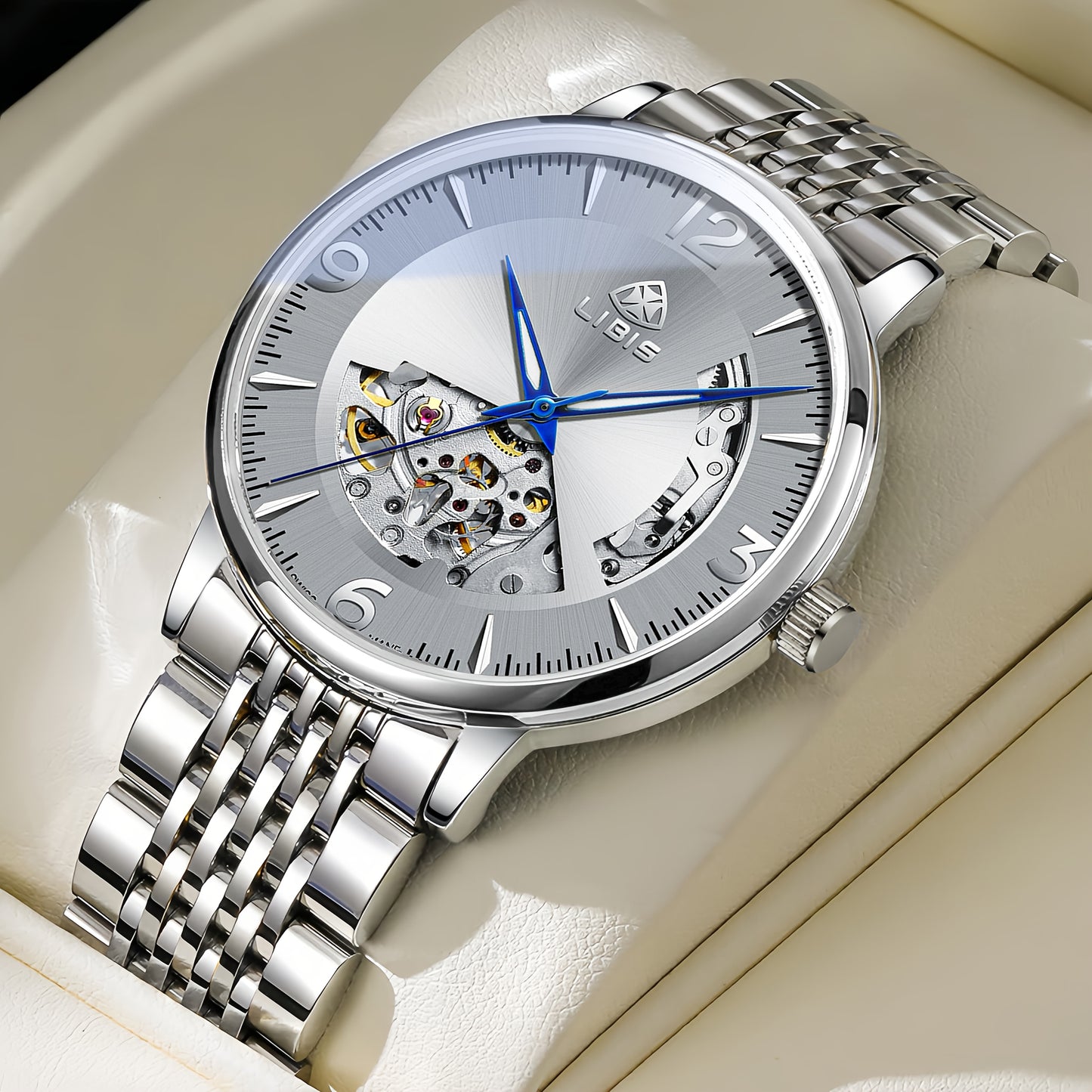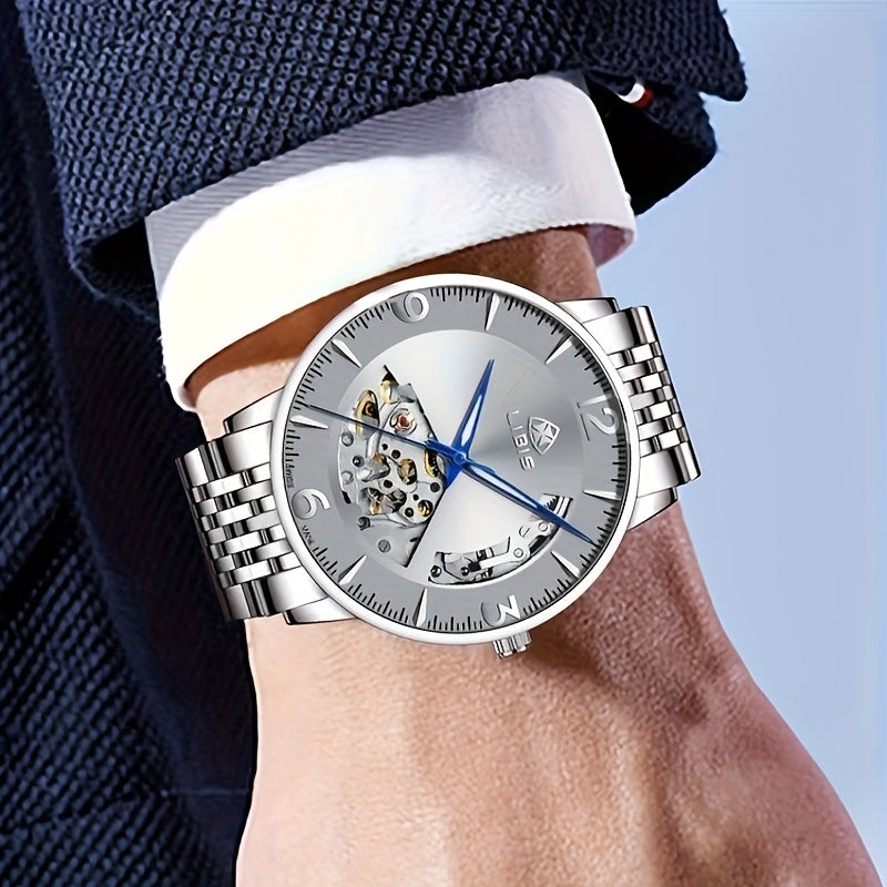 Fully Automatic Men's Watch In Stainless Steel, Perfect for Business And Sports with A Minimalist Hollow Design, A Must-have Gift for Graduation Season And Christmas (comes with A Gift Box And A Steel Wire Adjuster).