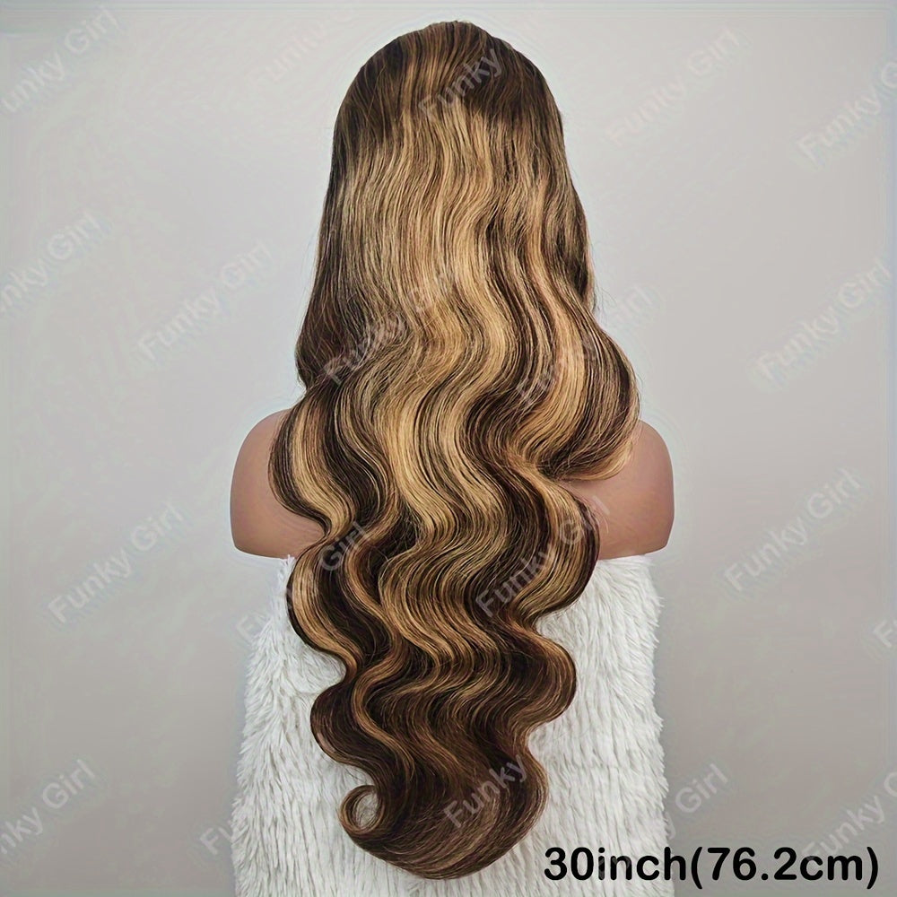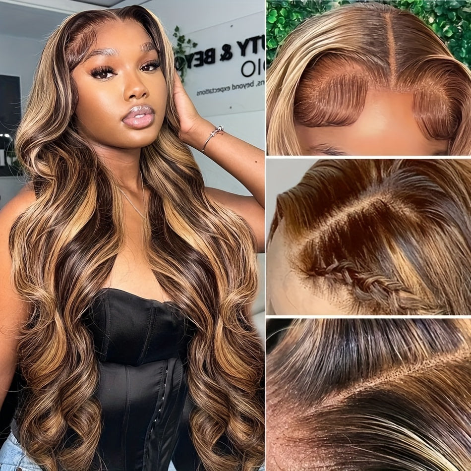 FunkyGirl 180% Density Body Wave Lace Front Wig - P4/27 Ombre Honey Blonde, 13x4 Human Hair, Versatile for All Women, BW