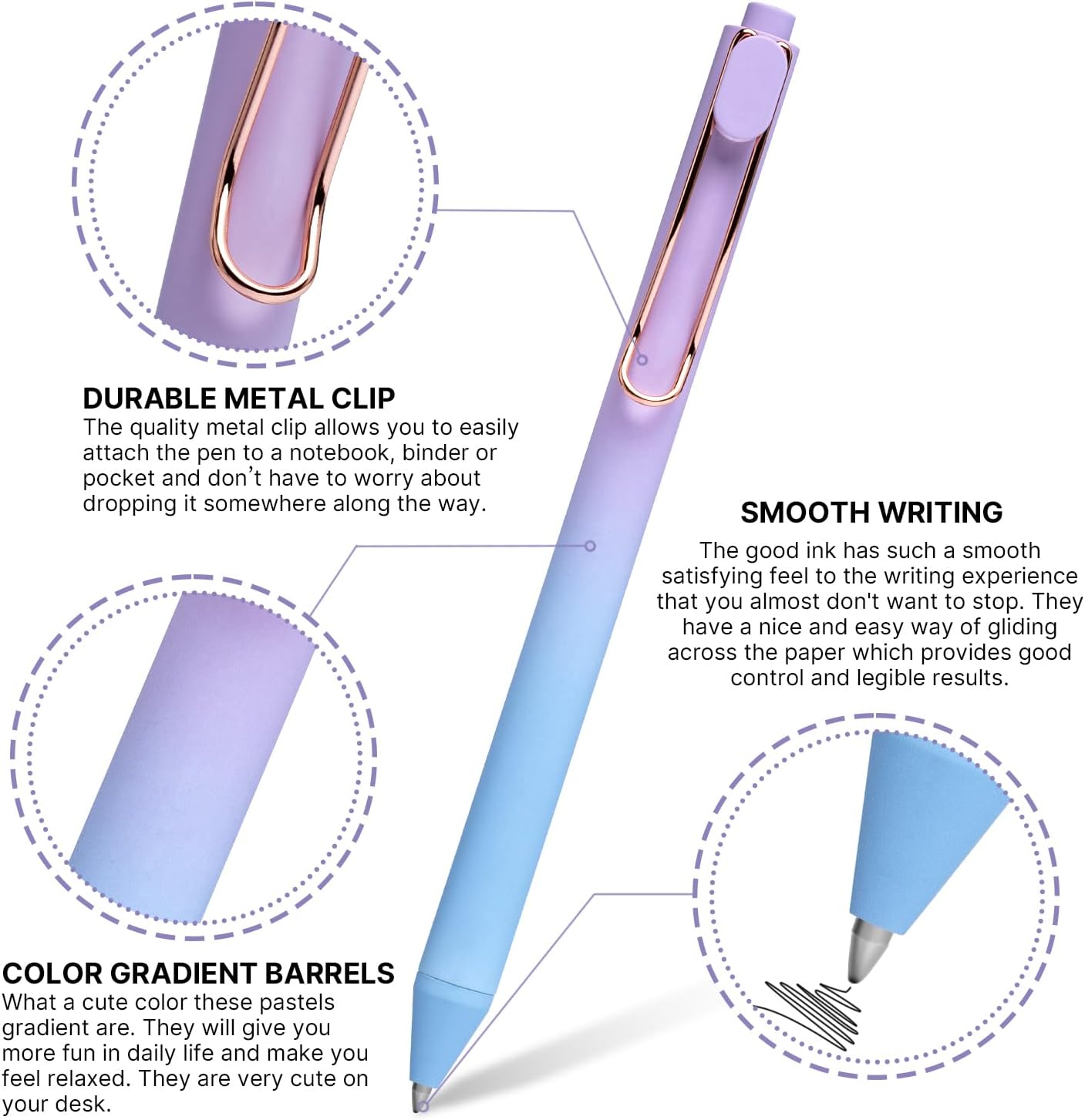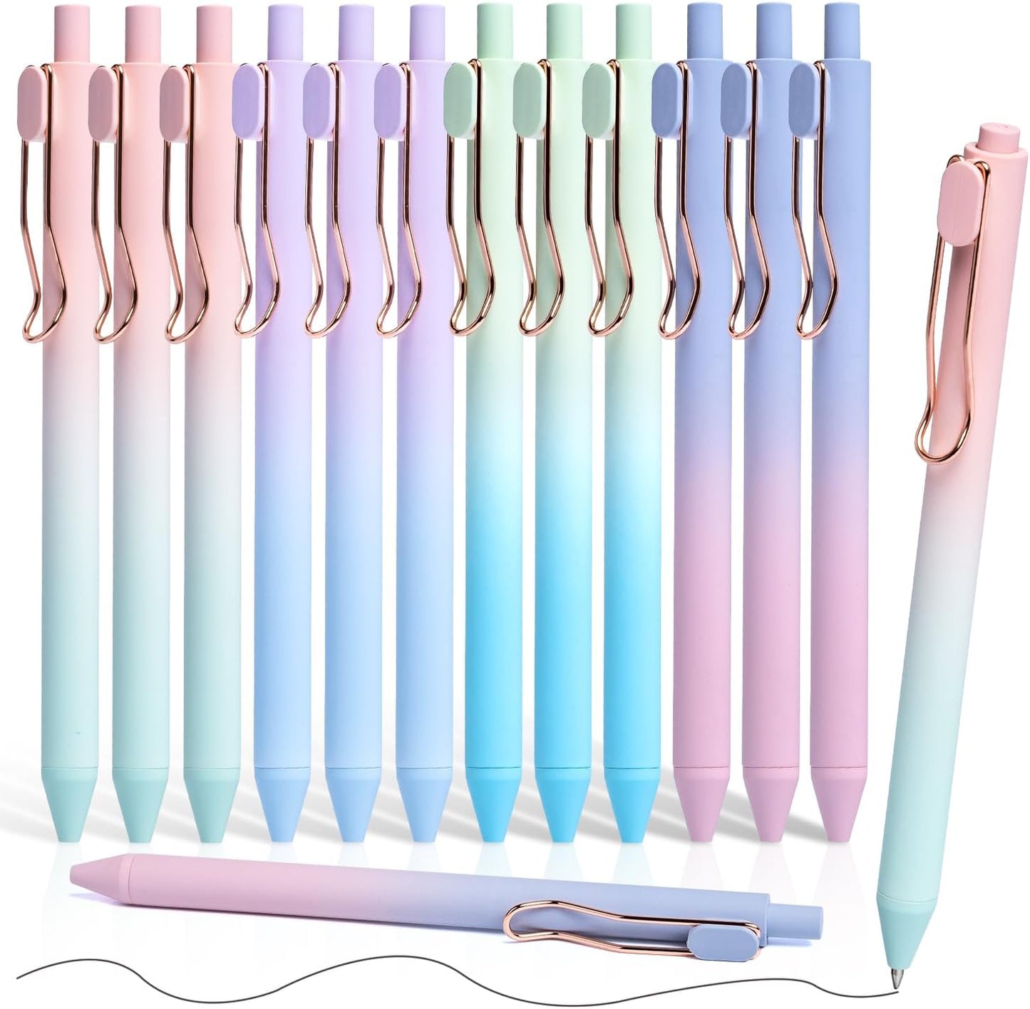 【Unique Gradient Colors】: 4 Gradient colors gorgeous pen barrel, and each gradient color have 3 pcs gel pens. These are such cute colors. Wow, this is the kind of pen people will want to borrow from you