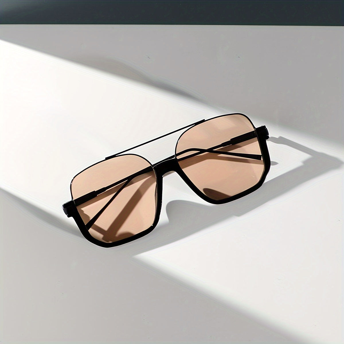 GENUIN MOMENT Women's Stylish Square Fashion Glasses with Metal Frame & Anti-Reflective PC Lens - Large Double Bridge Design, Gradient Brown to Orange-Red Transition, Perfect for Hiking, Vacations, College Parties & Travel