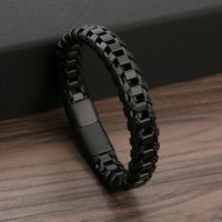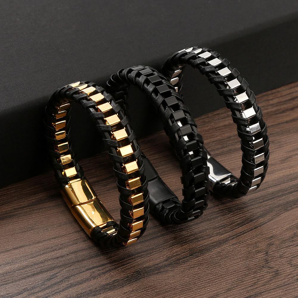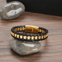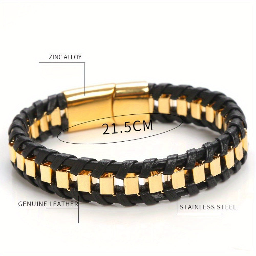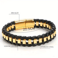 Genuine Leather Chain Bracelet for Men Stainless Steel Clasp In Plated Golden Jewellery Gift