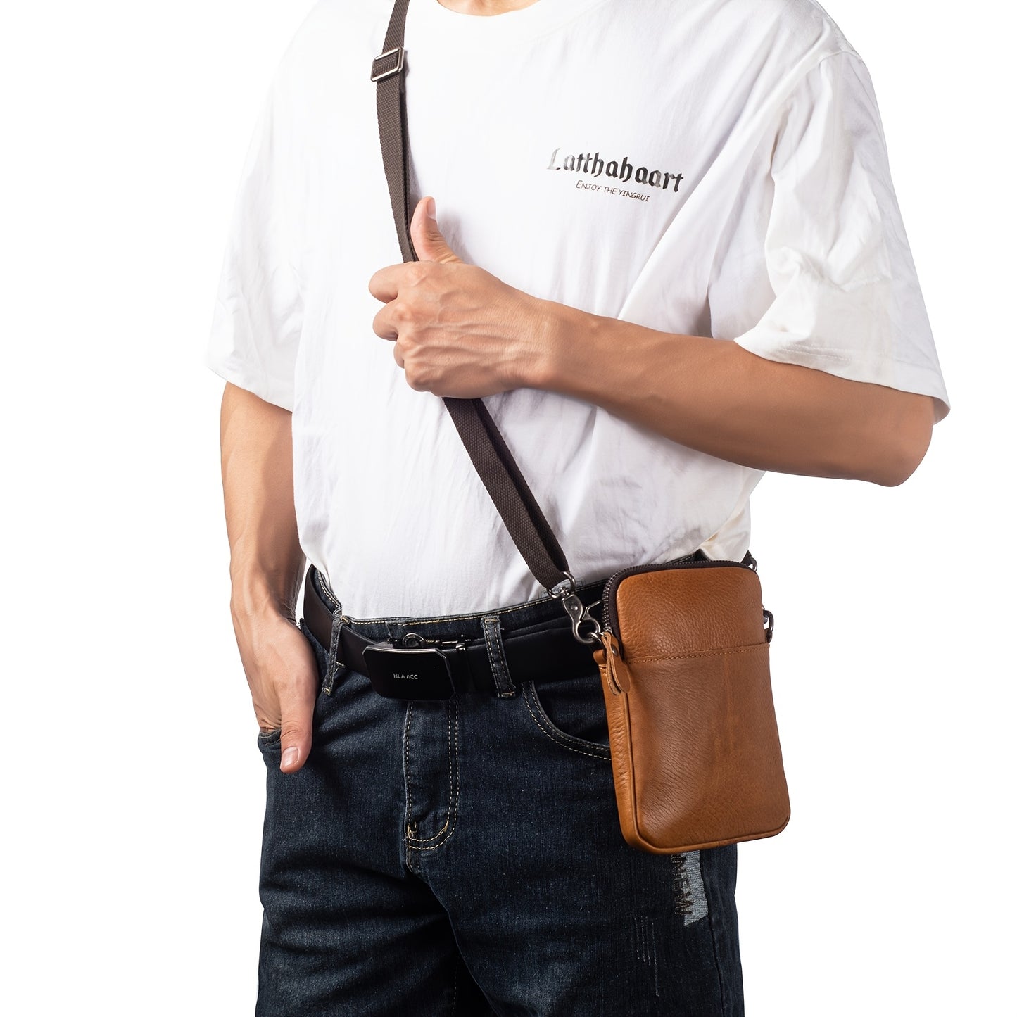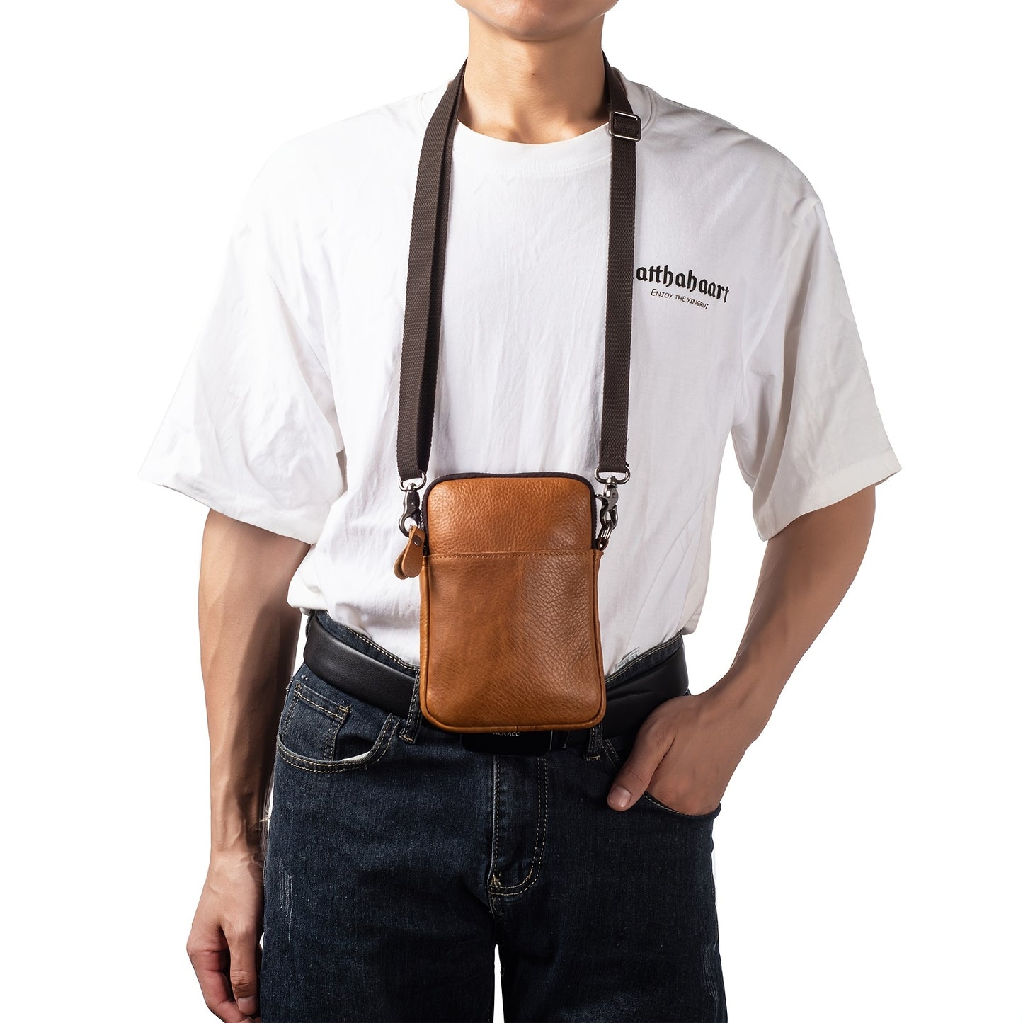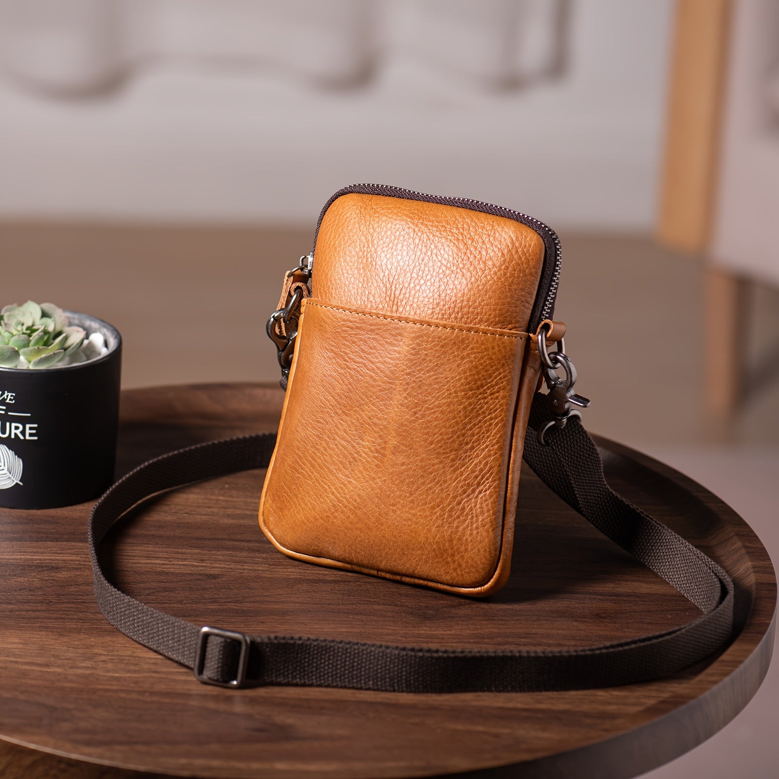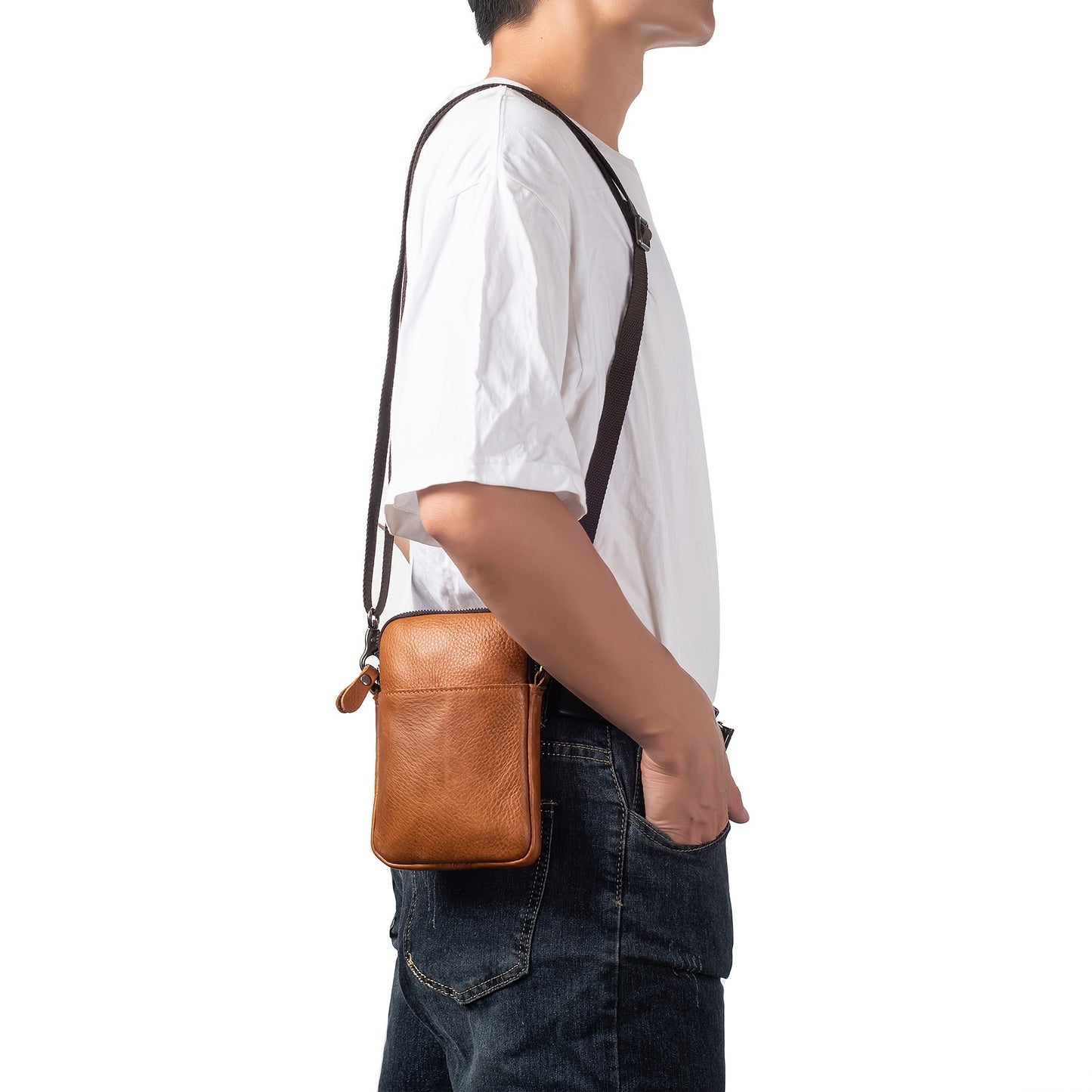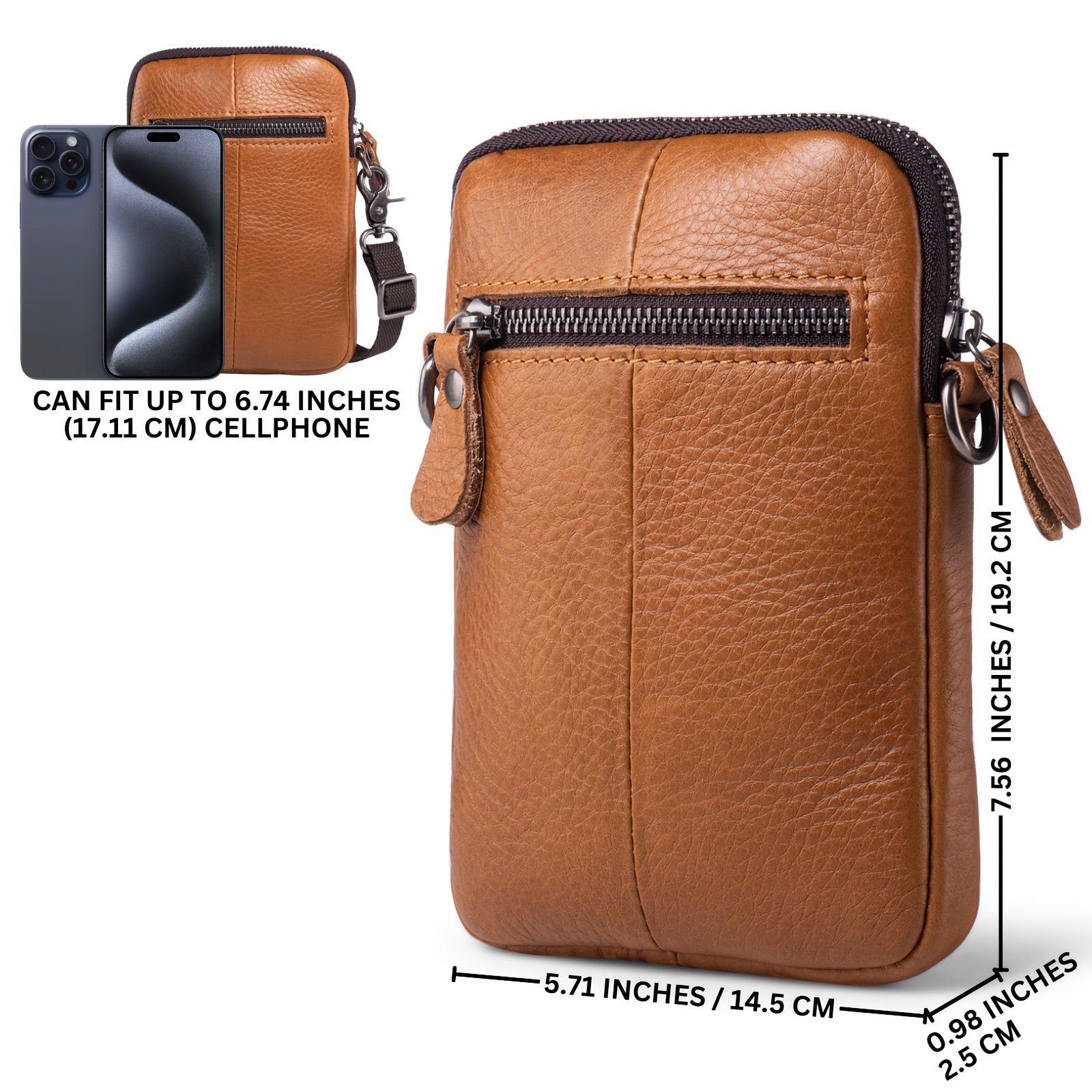 Genuine Leather Crossbody Bag, Small Leather Sling Shoulder Purse Bag Messenger Pack For Men Women Outdoor Travel Business, Cell Phone Pouch Bag Fits For IPhone 16 Pro Max 15 Pro Max 14 Pro Max Samsung Galaxy S24 Ultra S23 Ultra Etc