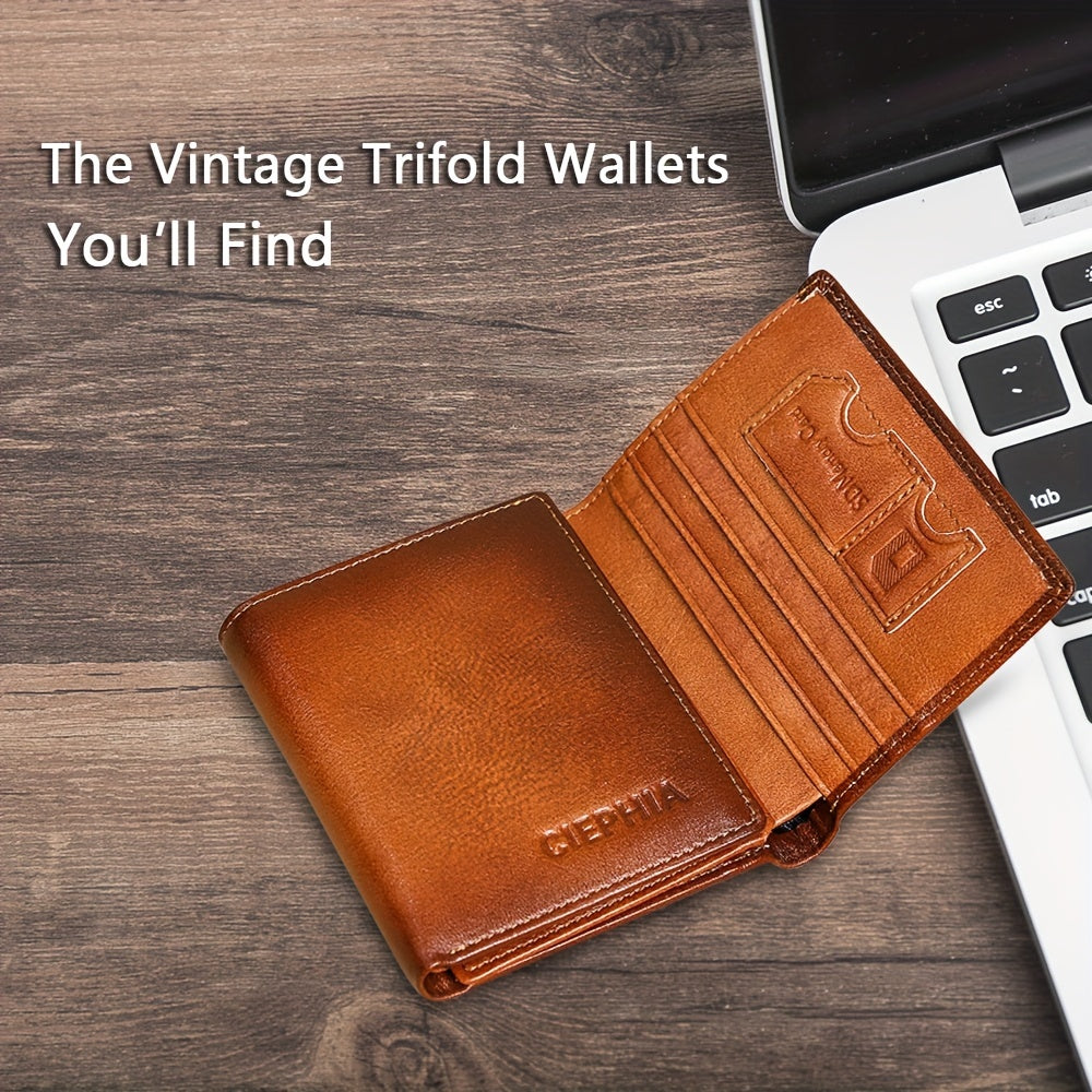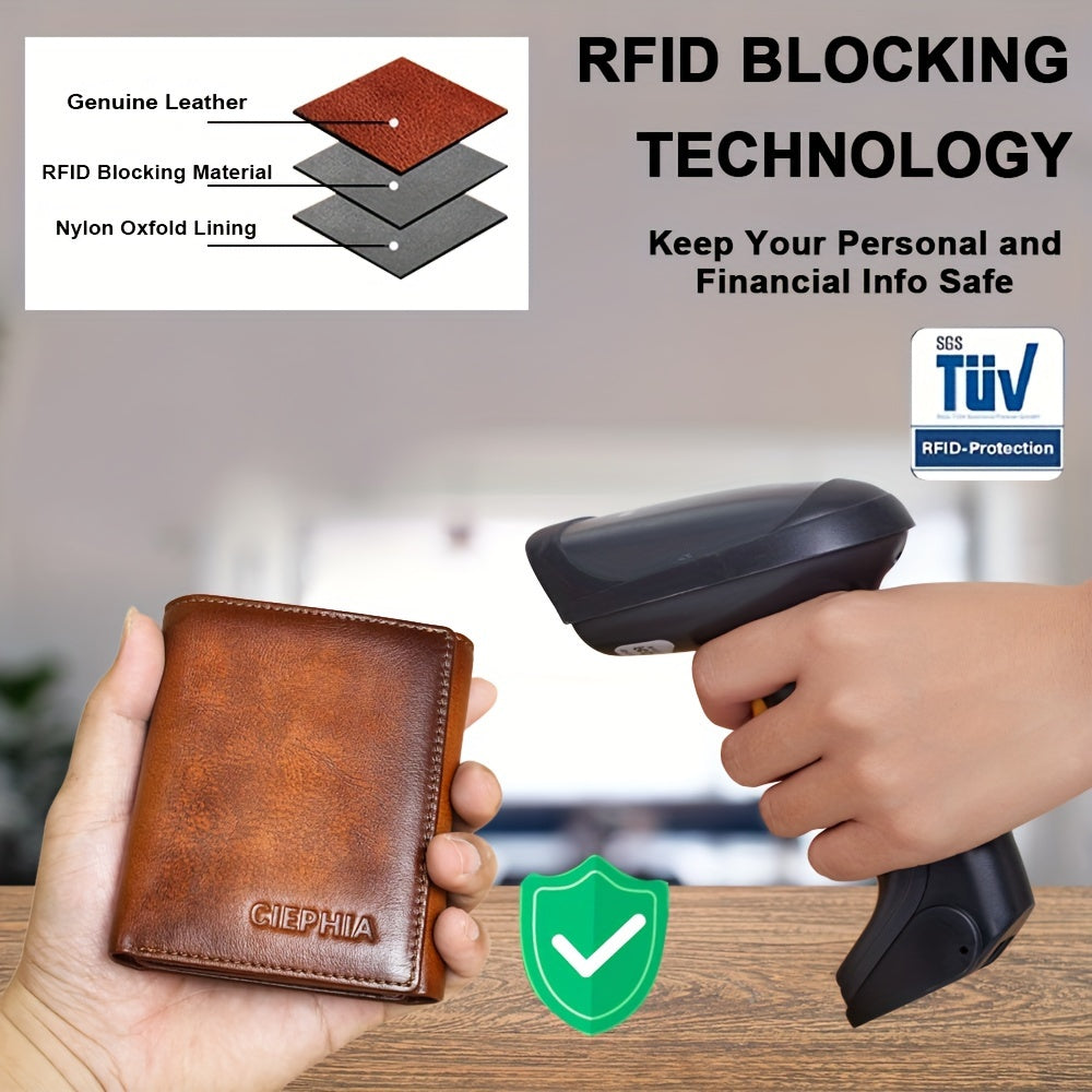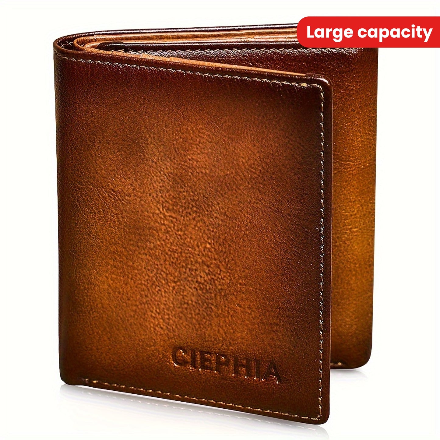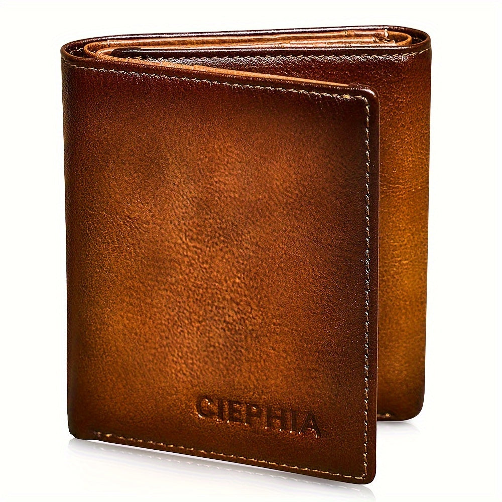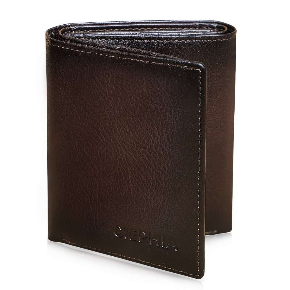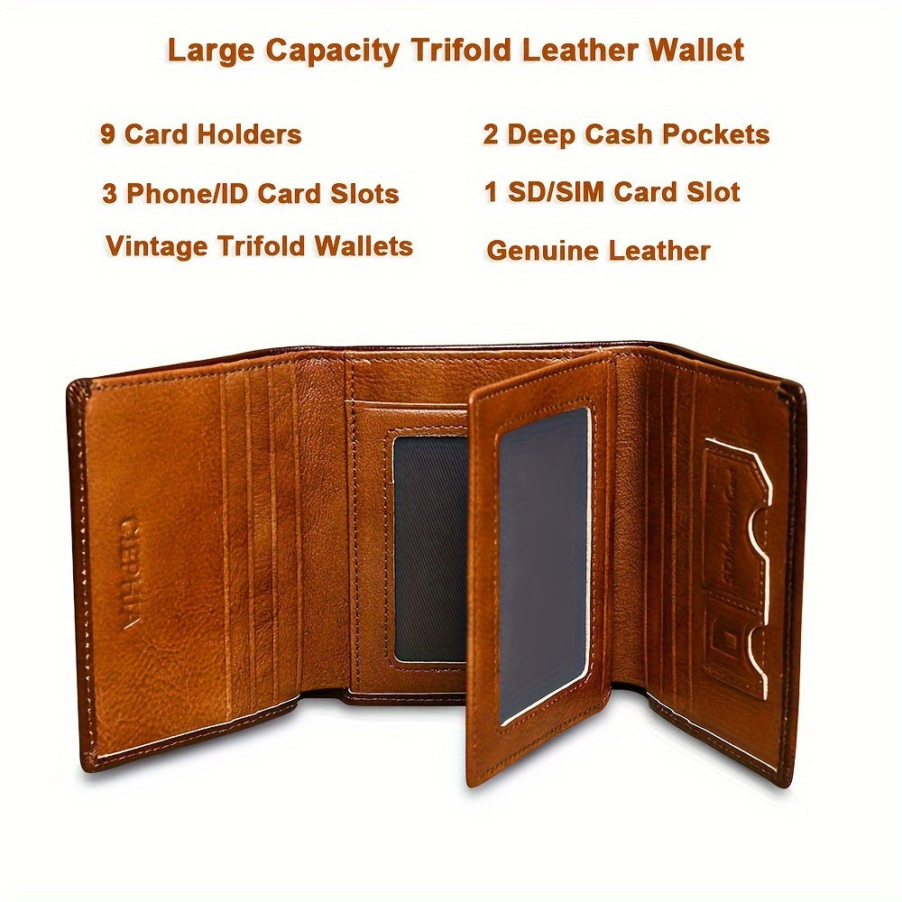 Genuine Leather RFID Blocking Men's Trifold Wallet - Large Capacity with Flip Out ID Holder and ID Window