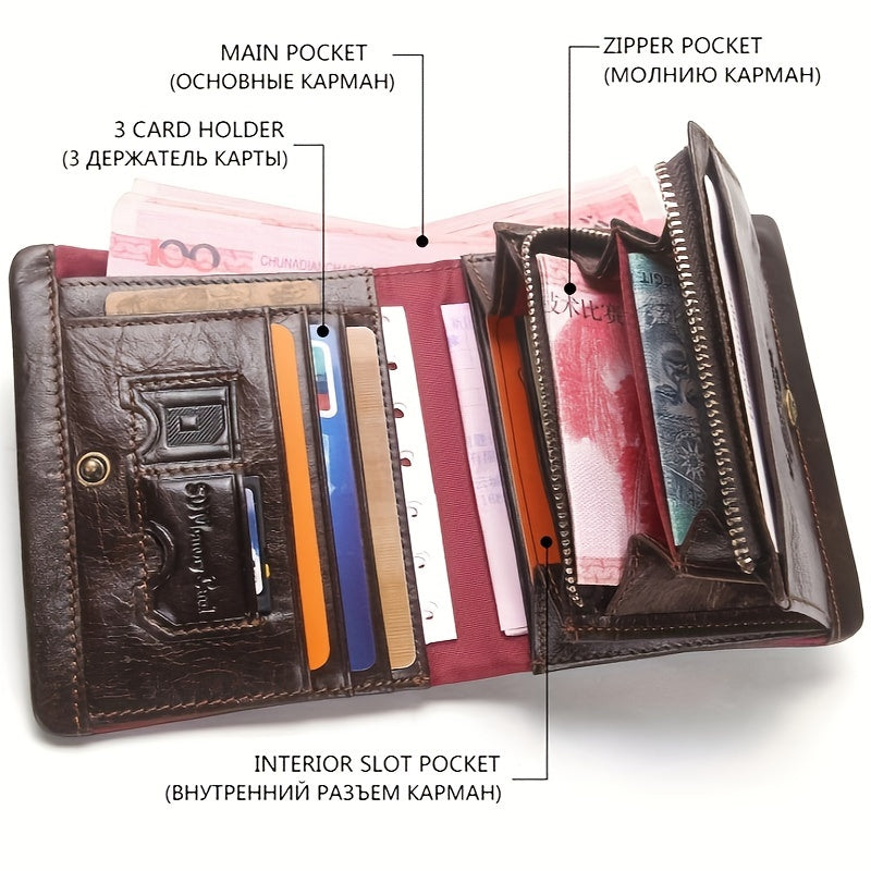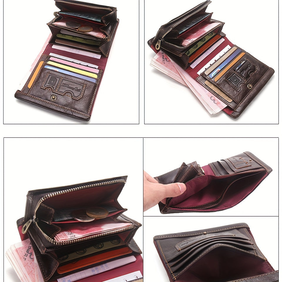 Genuine Leather US Stock Men Male Wallet with Credit Card Holder, Pocket, SIM SD Slot