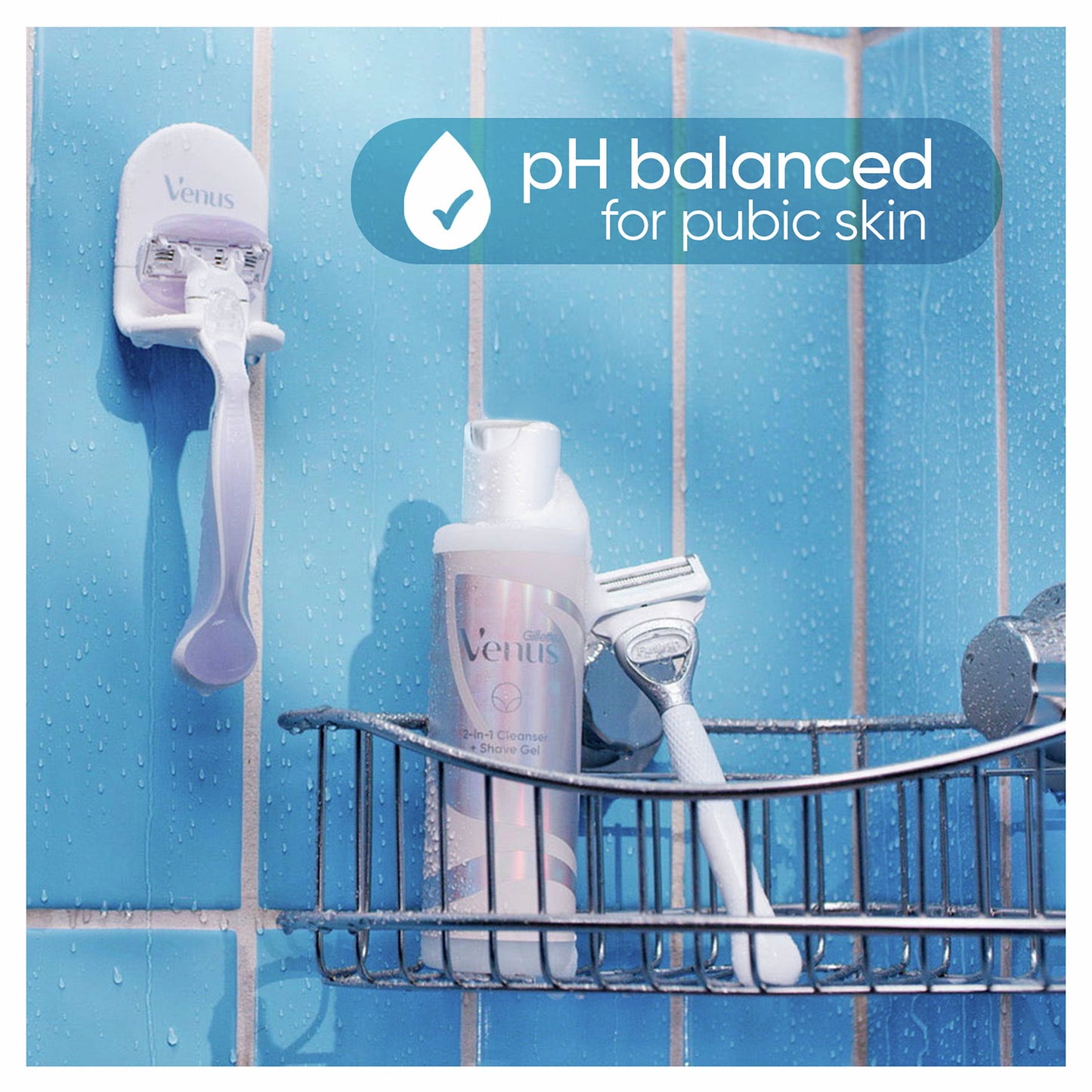 Venus's 2-in-1 Cleanser Shave Gel can be used during the shave to provide a protective layer of glide to help prevent shaving irritation, or daily as a gentle cleanser. Dermatologist- and gynecologist-tested. pH Balanced. Made without parabens, dyes, fragrance and silicones. For great results, use the entire Venus for Pubic Hair and Skin lineup to help prepare, help protect pubic hair from shave irritation, and maintain your pubic hair & skin. All Female Skin Types