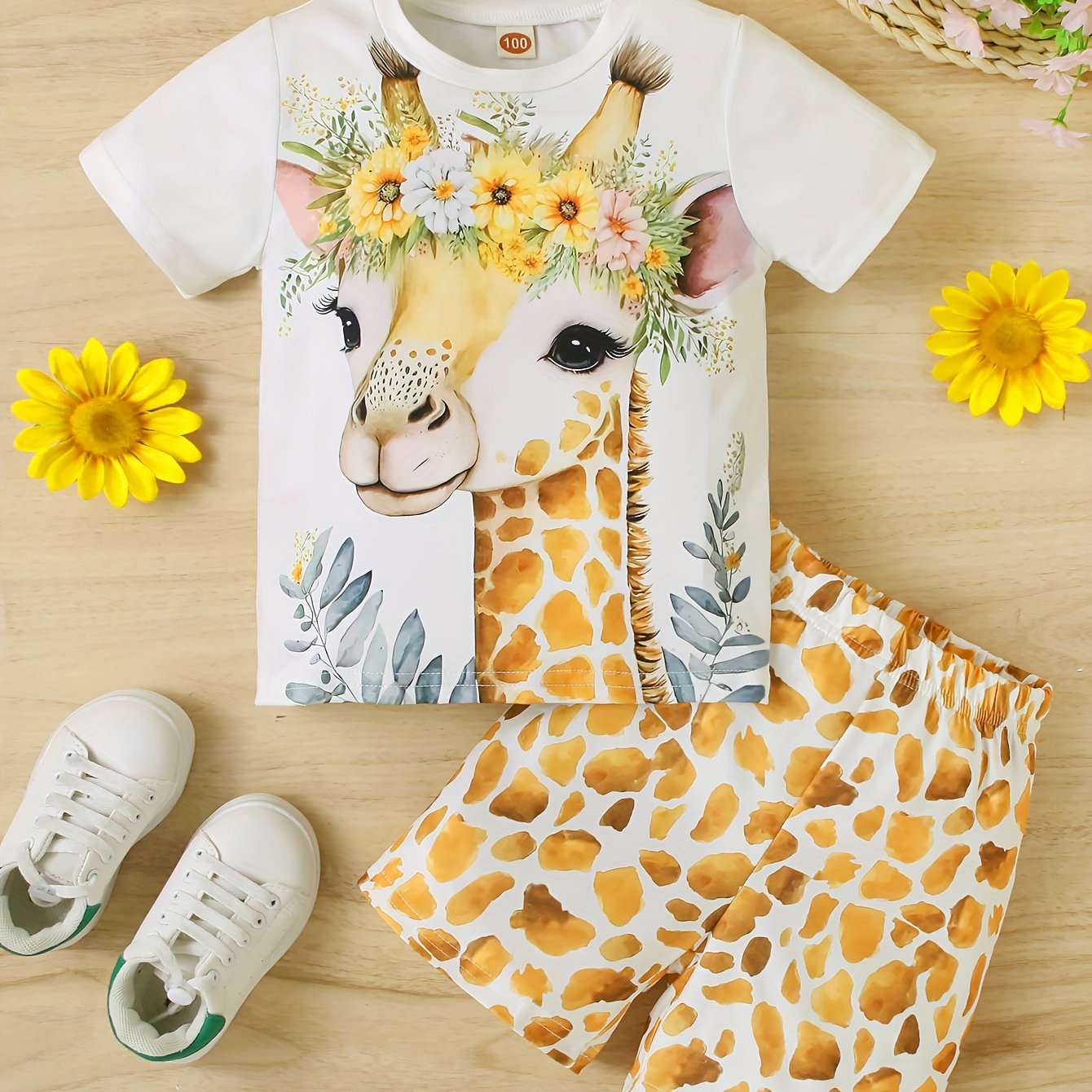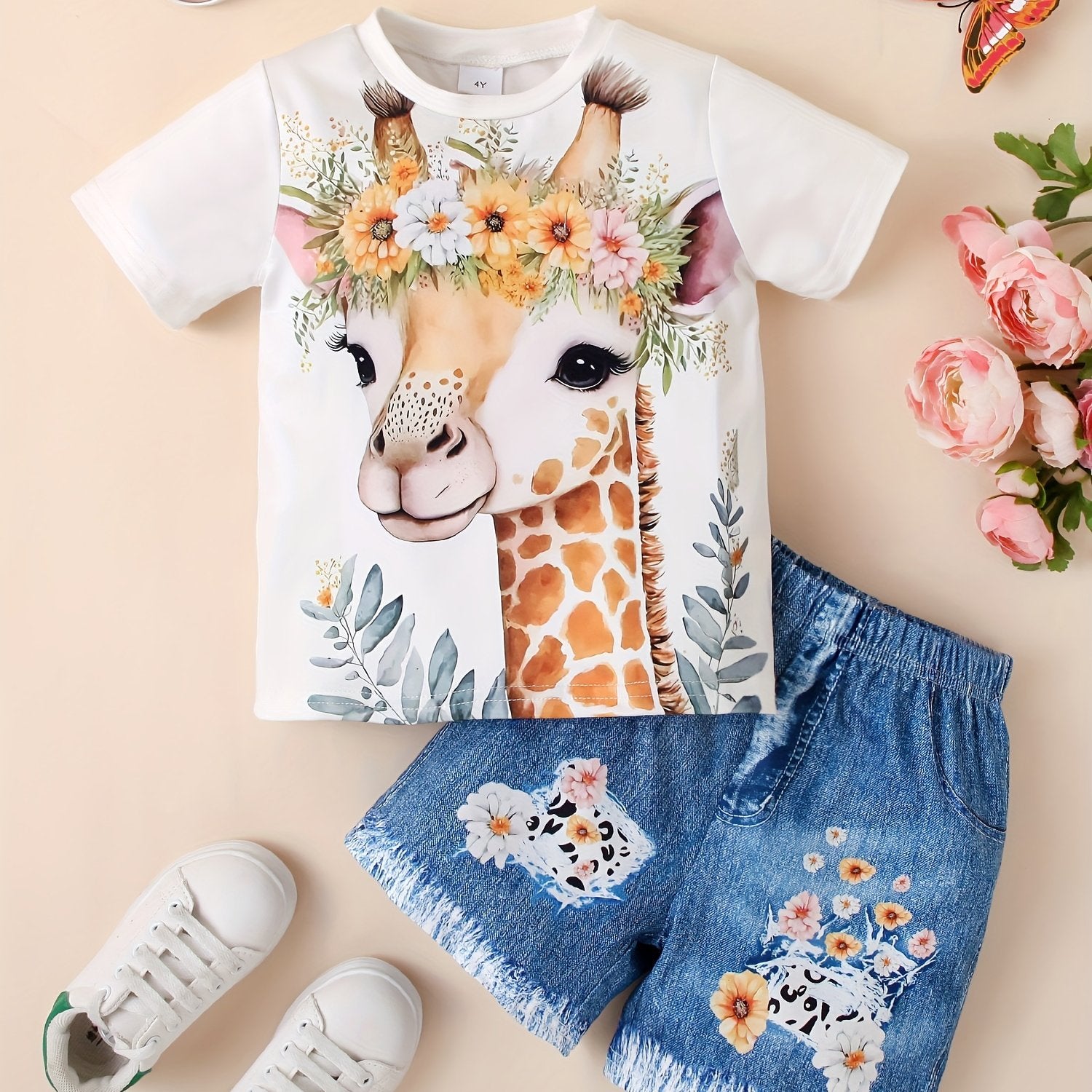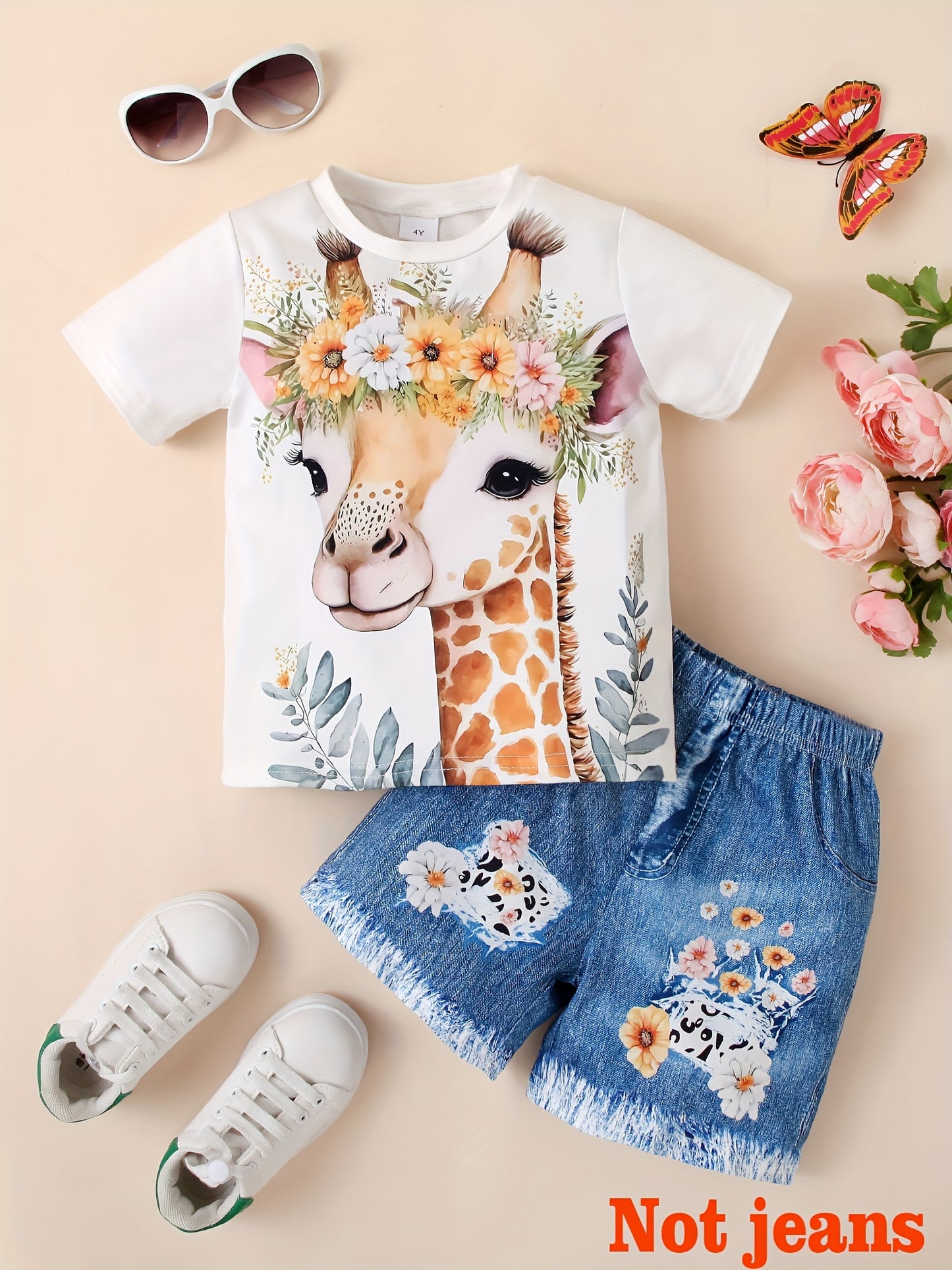 Girls 3D Deer Short Sleeve Shorts Two Piece Set
