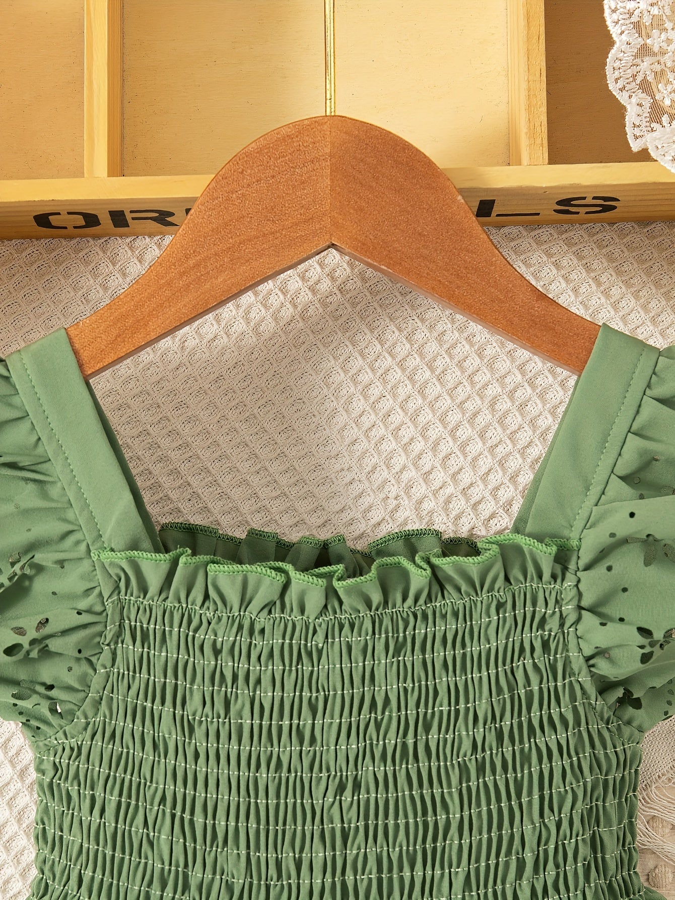 Girls Comfy Solid Ruffle Sleeve Square Neck Dress, Casual Dresses For Summer Holiday Party Gift
