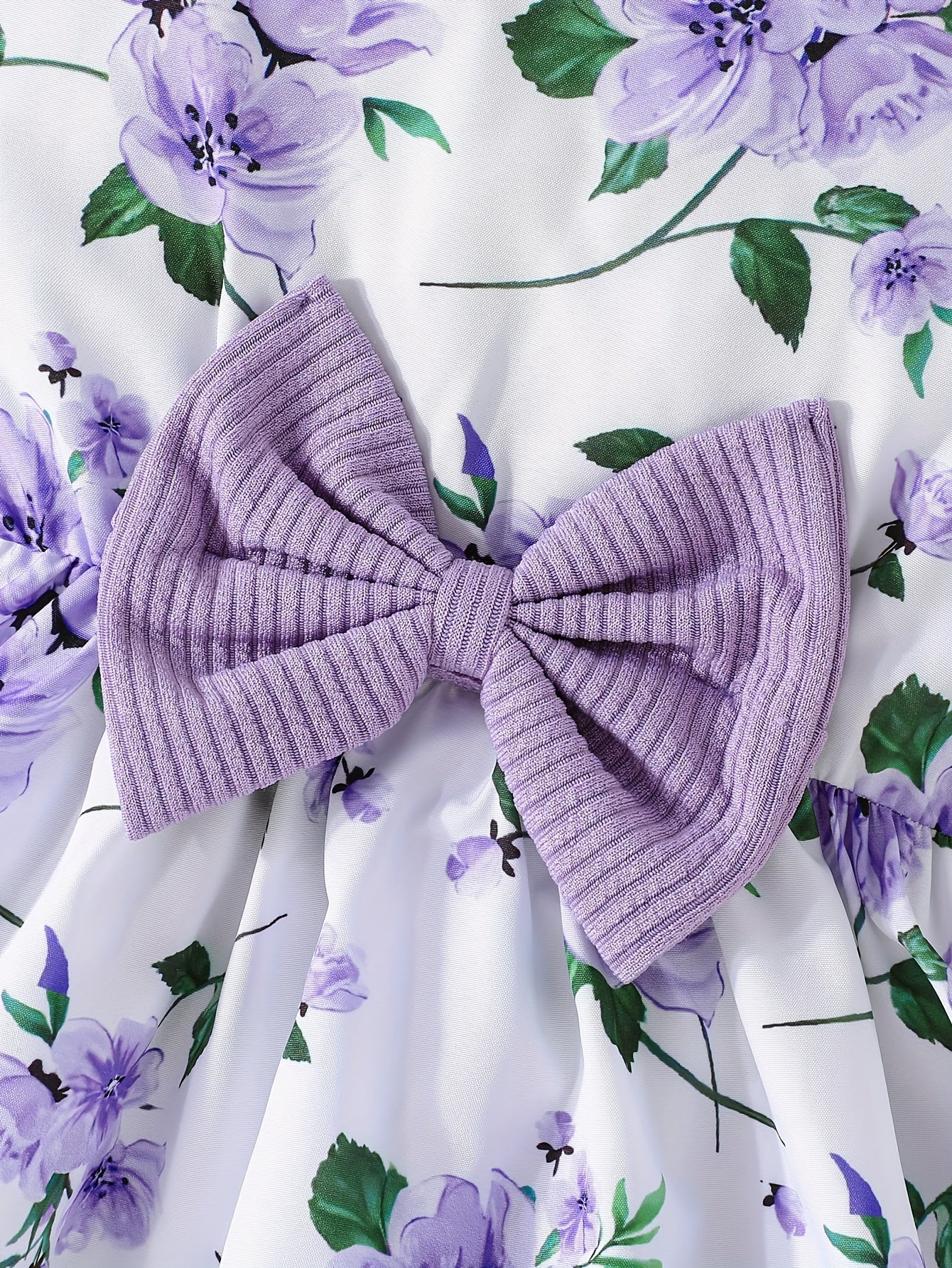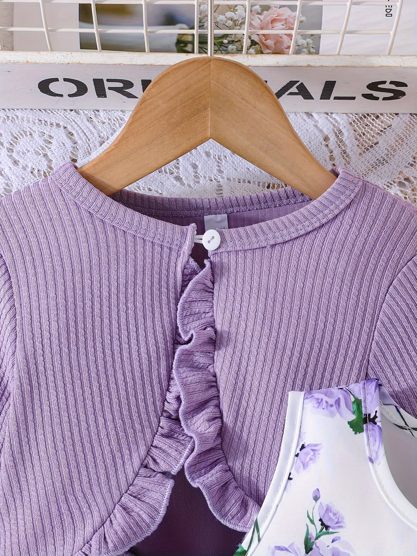 Girls' Flower Print Casual Vest Dress with Chest Measurement by Pulling + Solid Color Long Sleeve Jacket