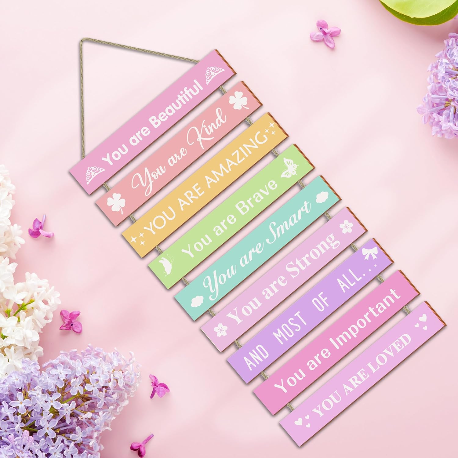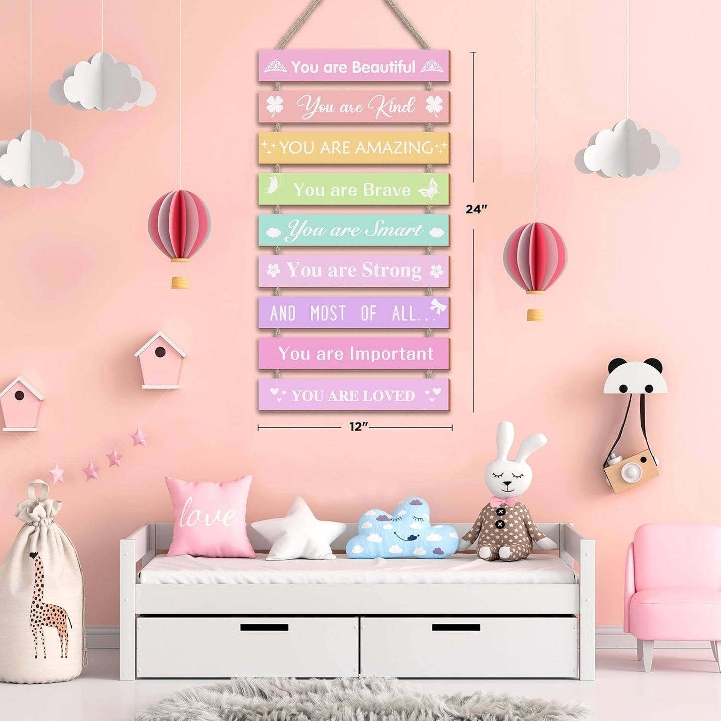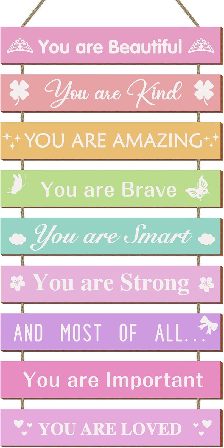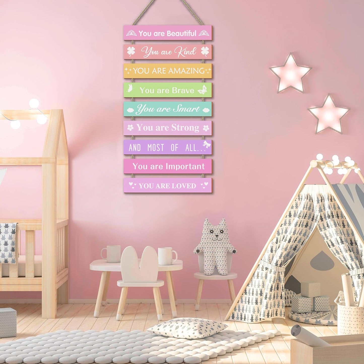 - Inspirational and Motivational: Each plaque in our Girls Room Wall Decor set features carefully chosen motivational and inspirational text. These uplifting messages are designed to nurture your child's self-confidence, encourage positive thinking, and inspire her to reach for her dreams.
