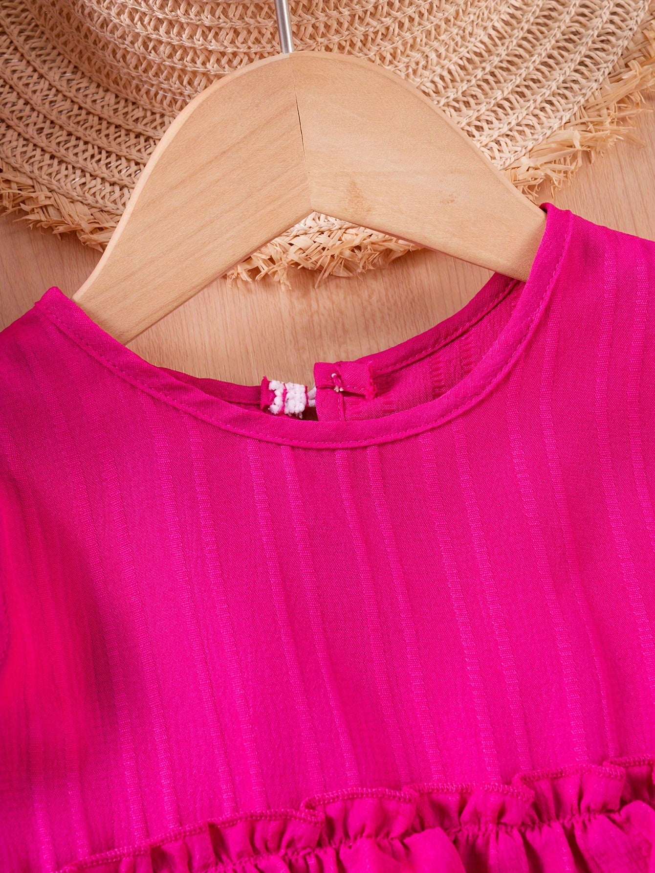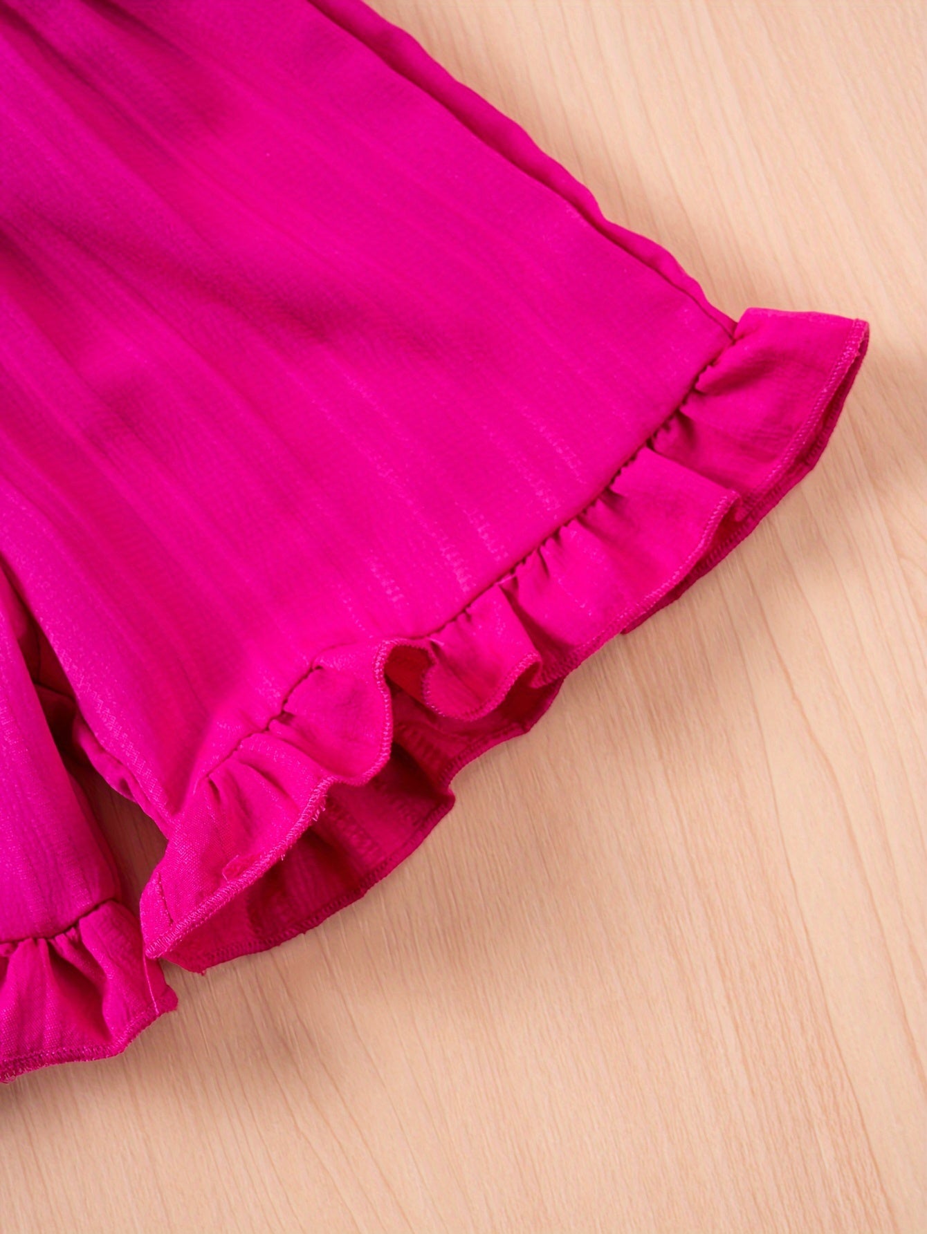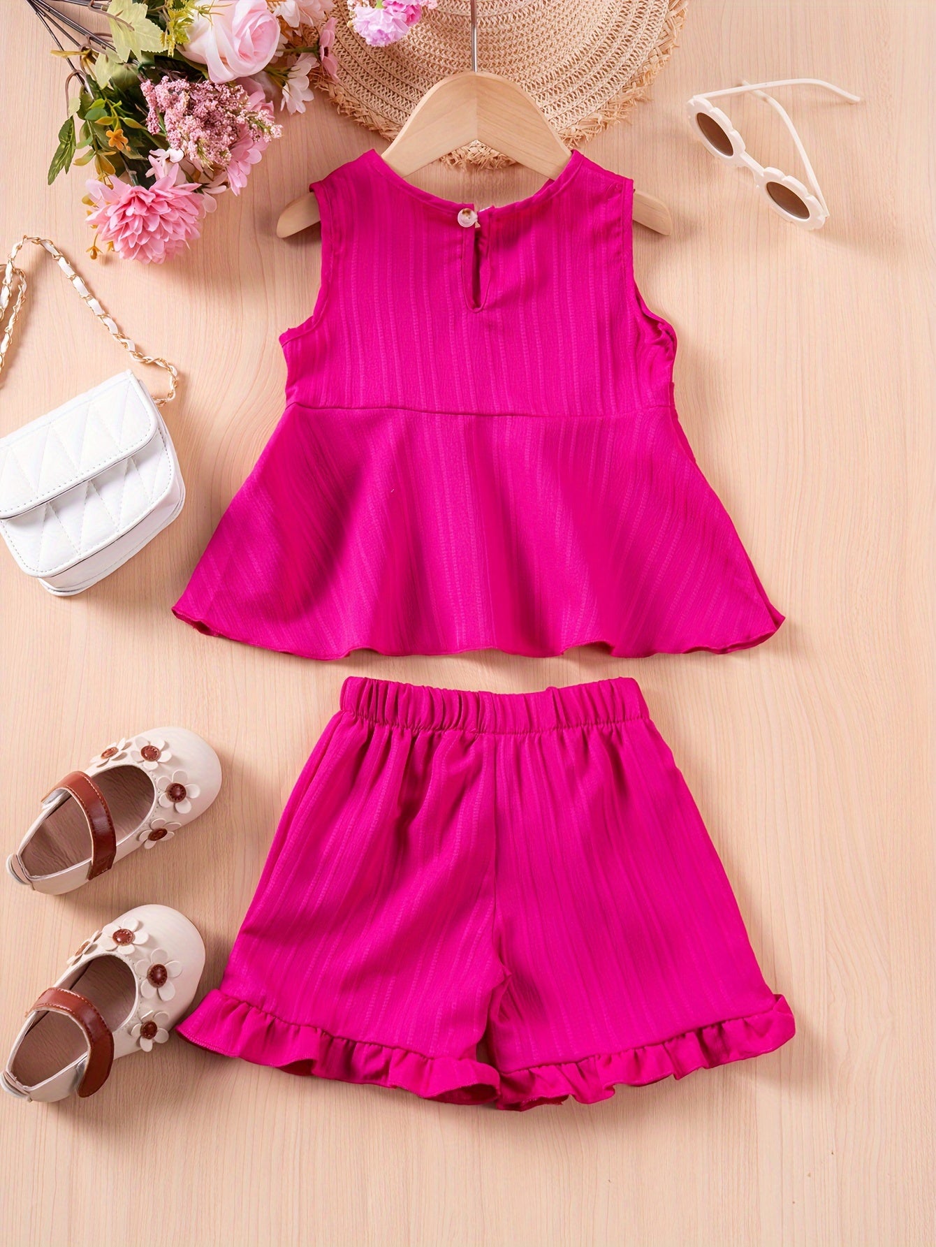 Girls' Solid Color Sleeveless Ruffle Top + Shorts Two-Piece Casual Cute Set HN02