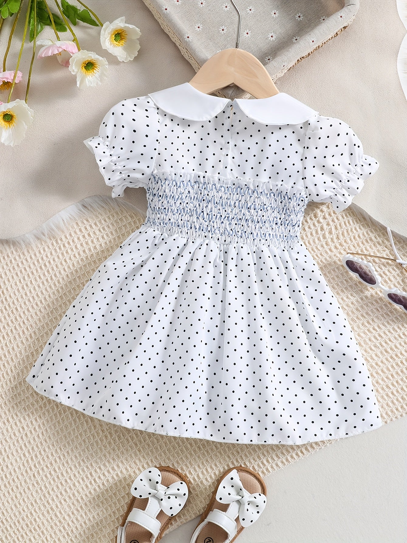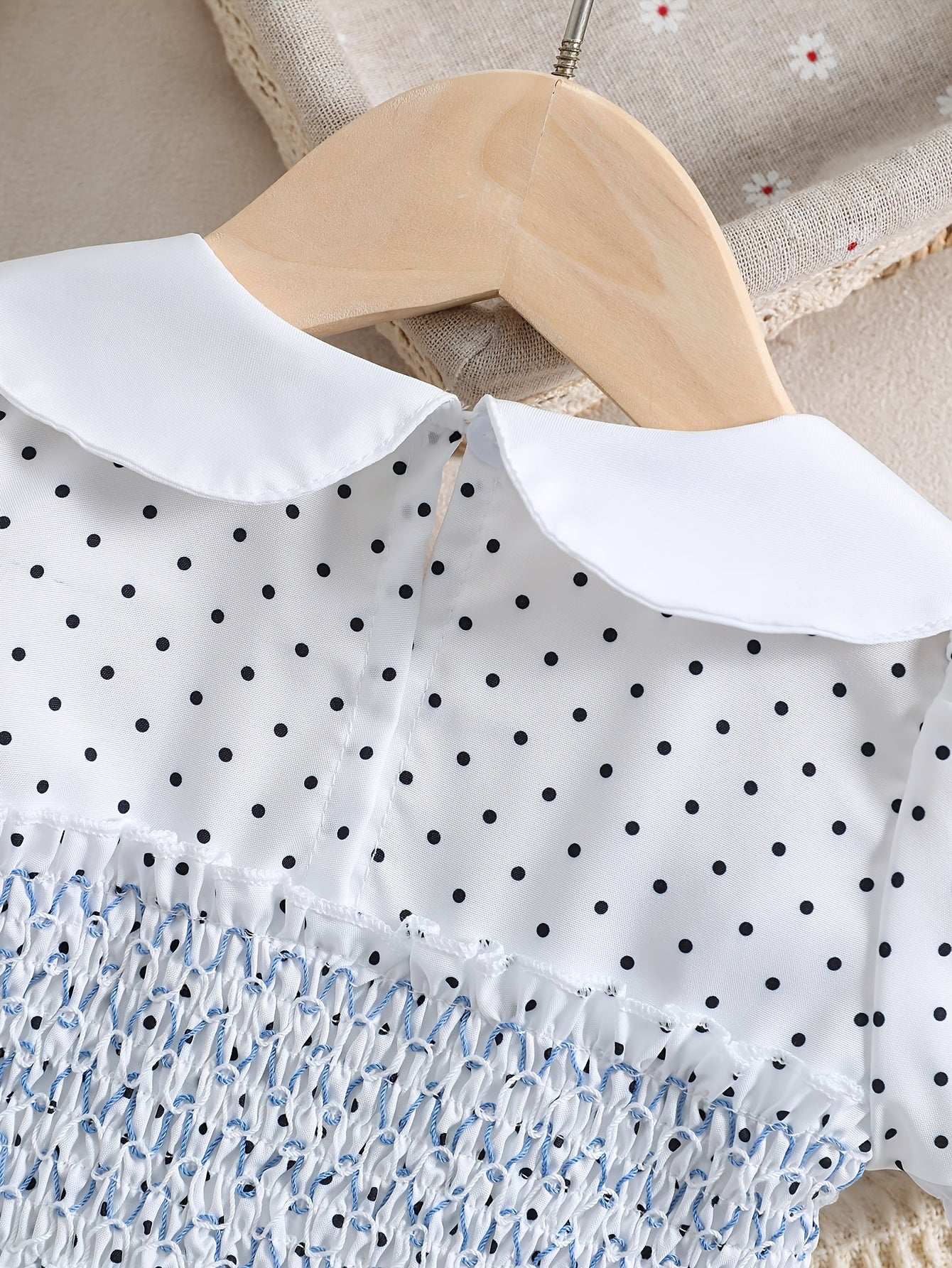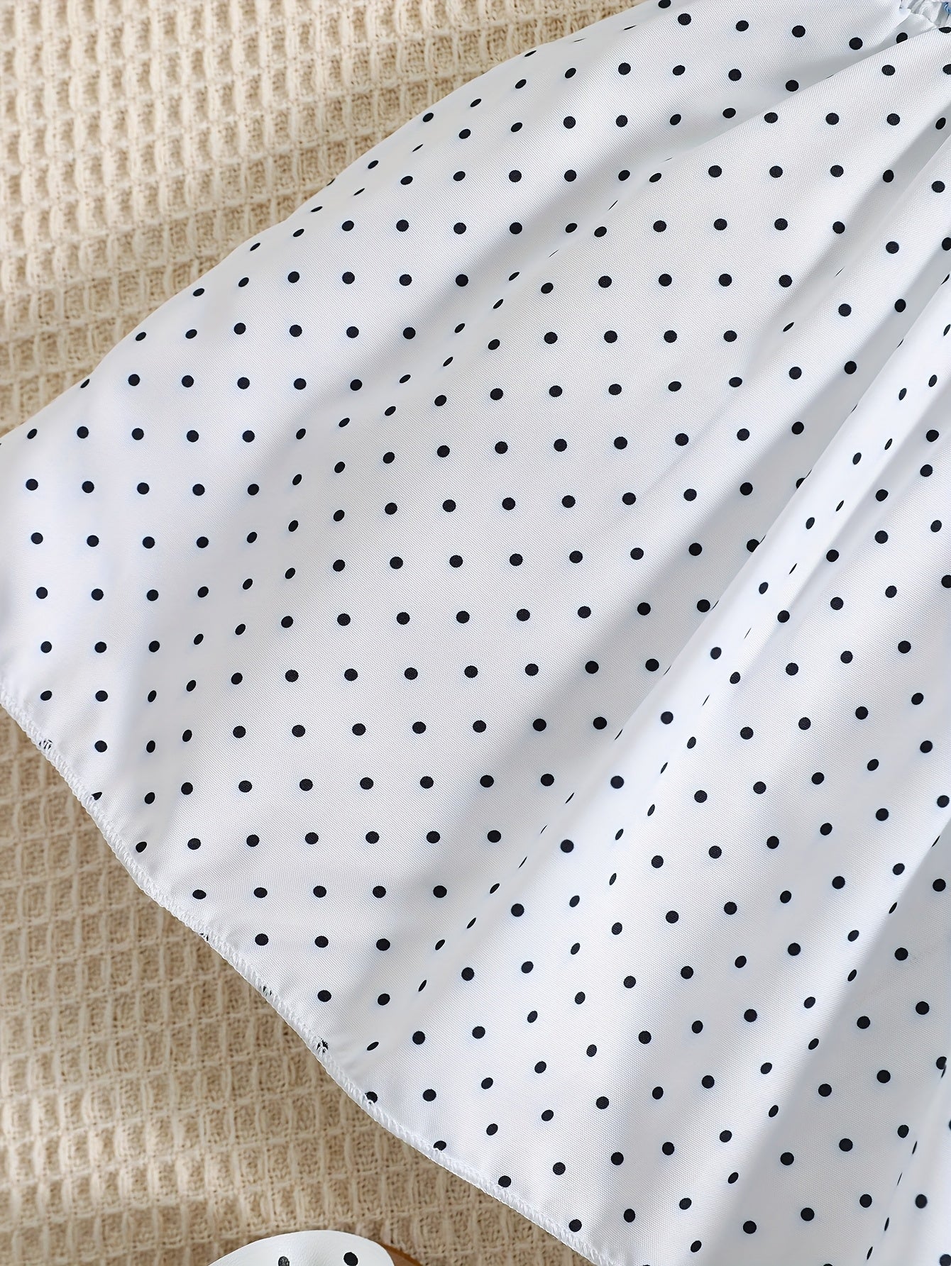 Girls' Summer Polka Dot Dress with Lapel Collar, Casual Style, Woven Polyester 95% Spandex 5%, Regular Fit, Birthday & Hundred-Day Celebration Princess Gown, Dresses for Girls