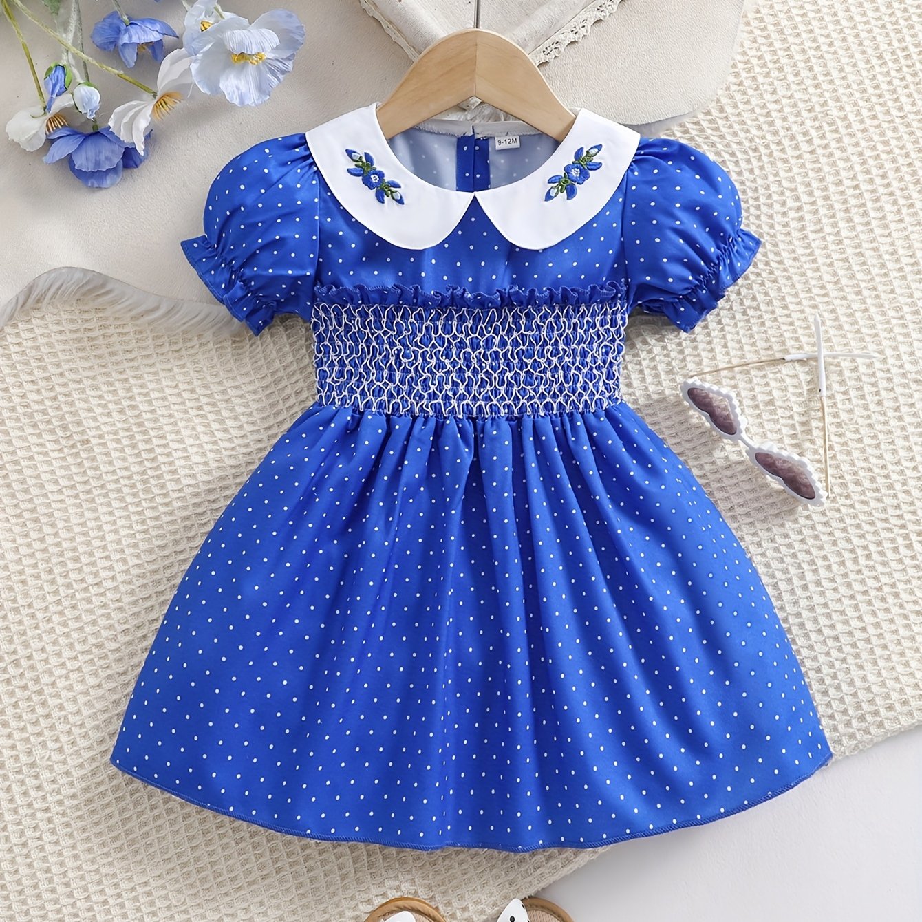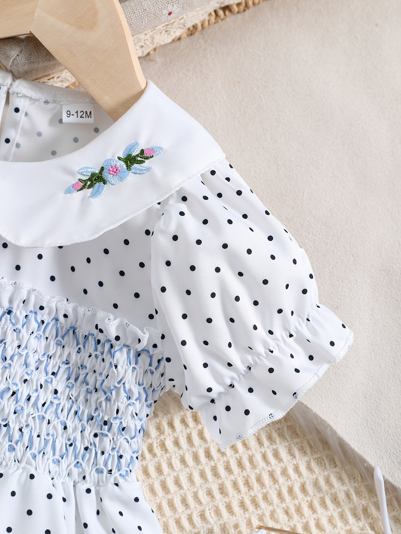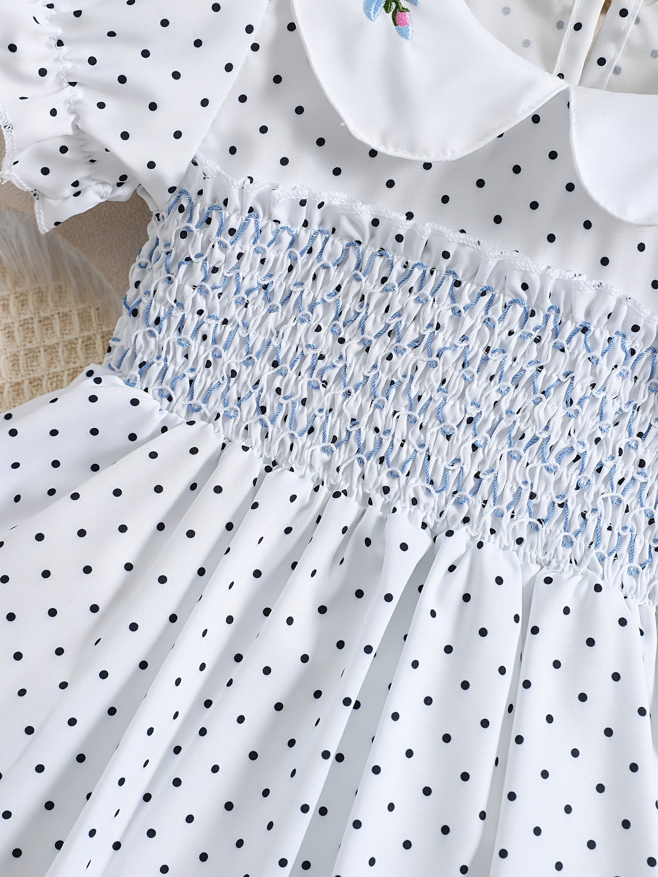 Girls' Summer Polka Dot Dress with Lapel Collar, Casual Style, Woven Polyester 95% Spandex 5%, Regular Fit, Birthday & Hundred-Day Celebration Princess Gown, Dresses for Girls