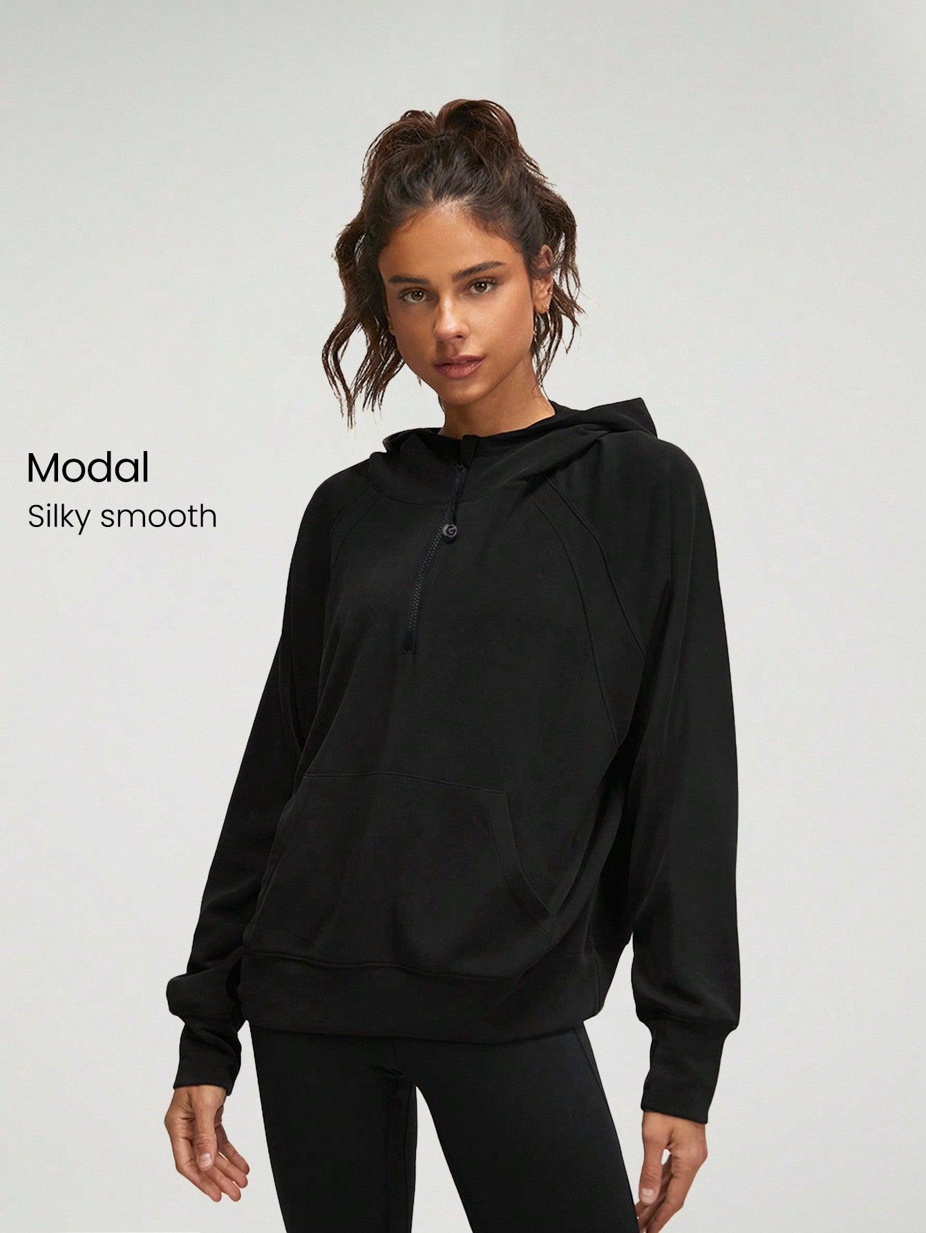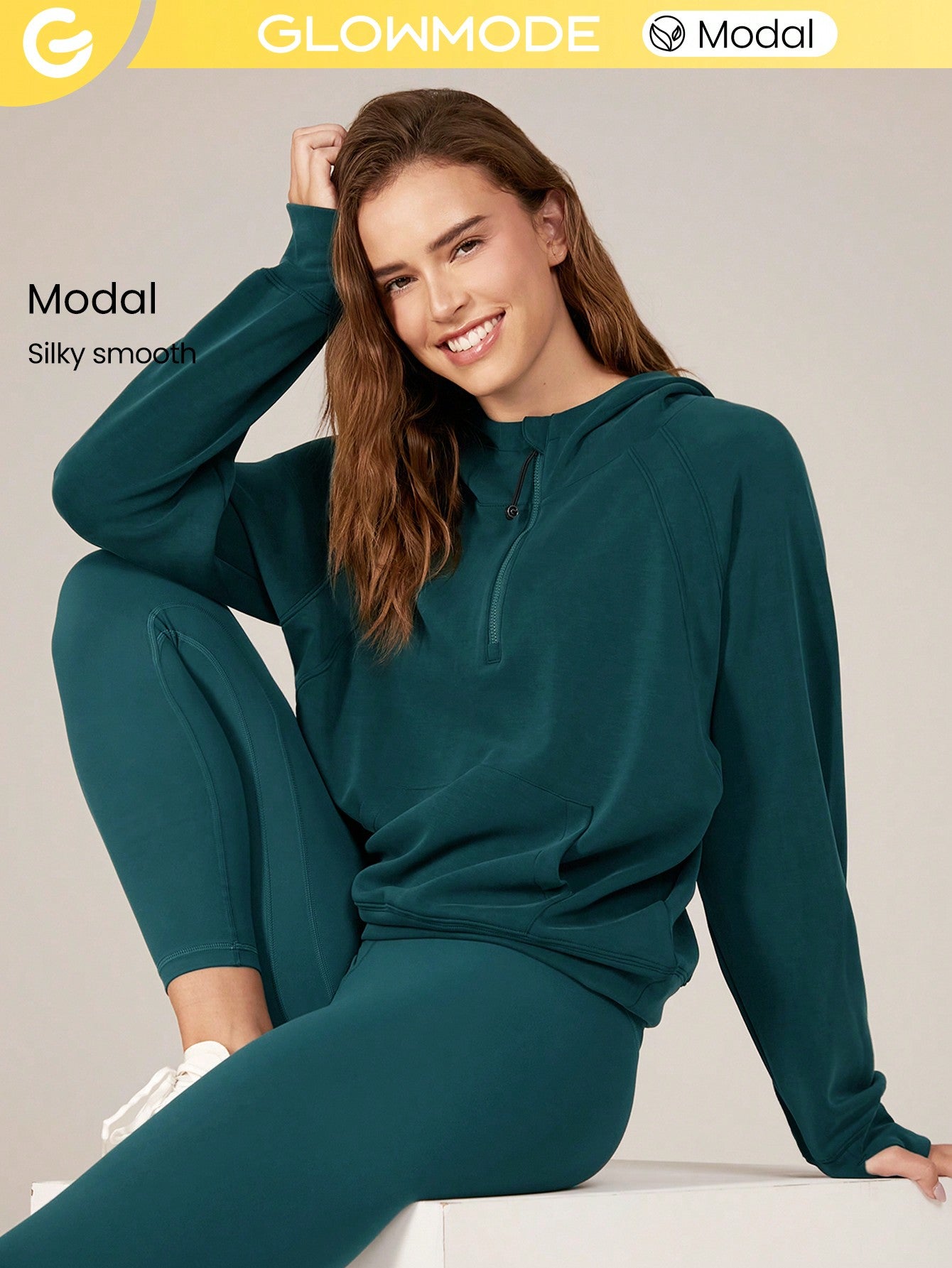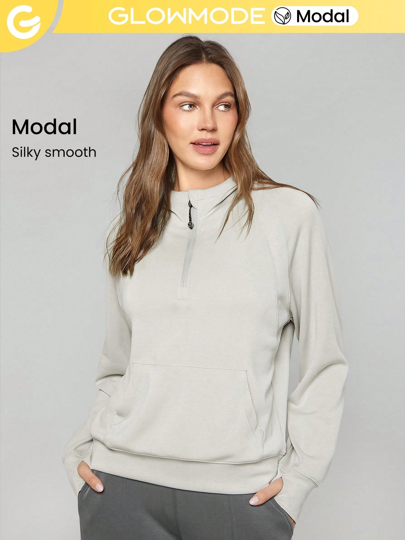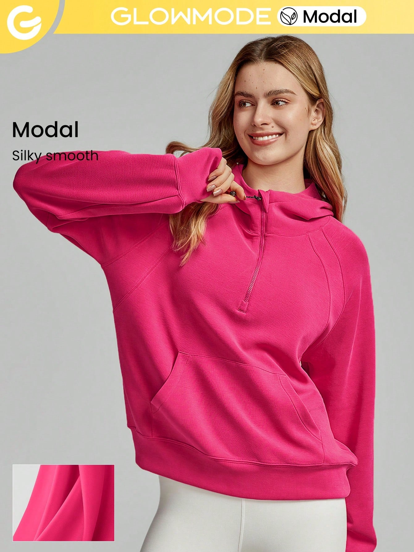 GLOWMODE Modal Silk Touch Oversized Long Sleeve Half-Zip Hoodie Fall