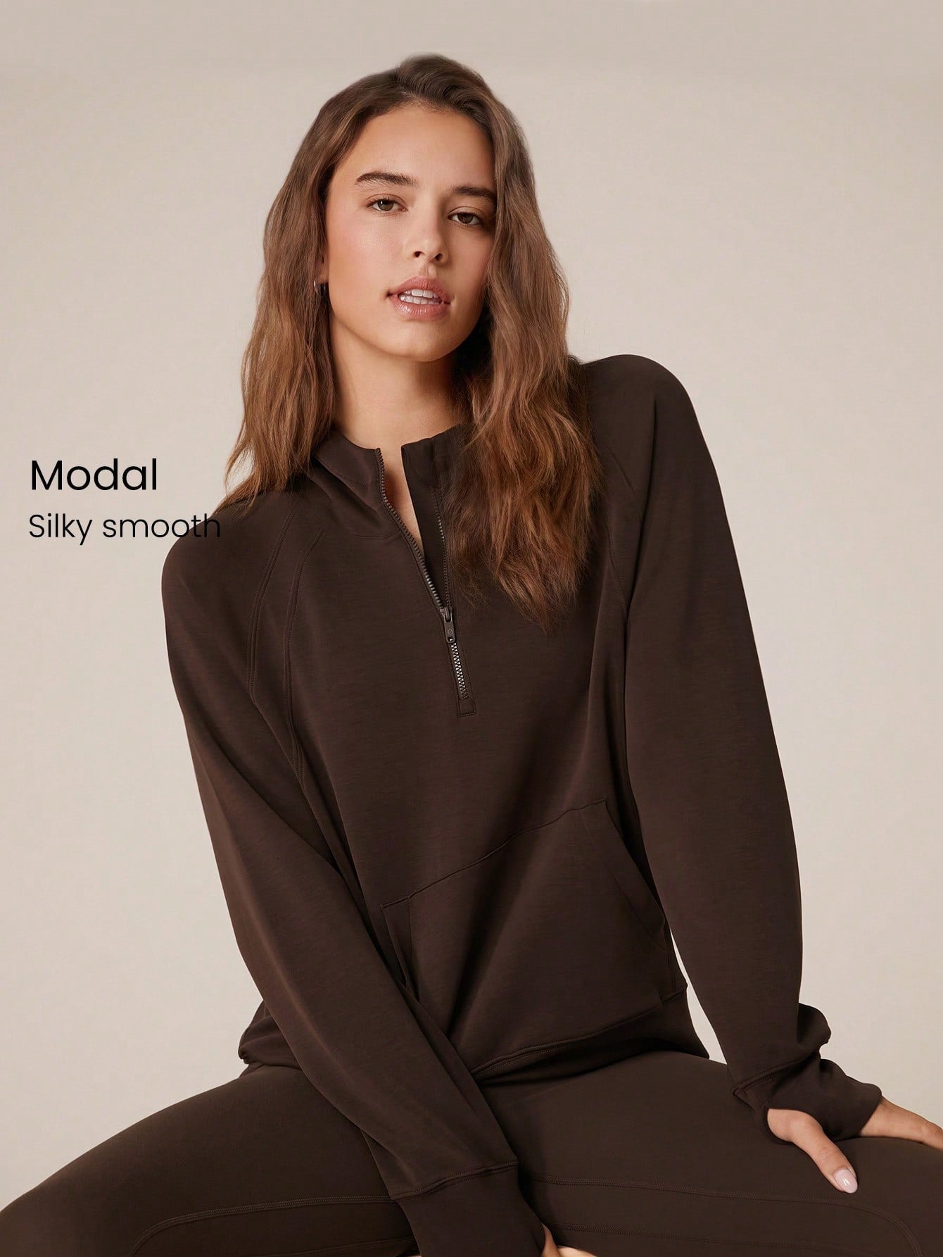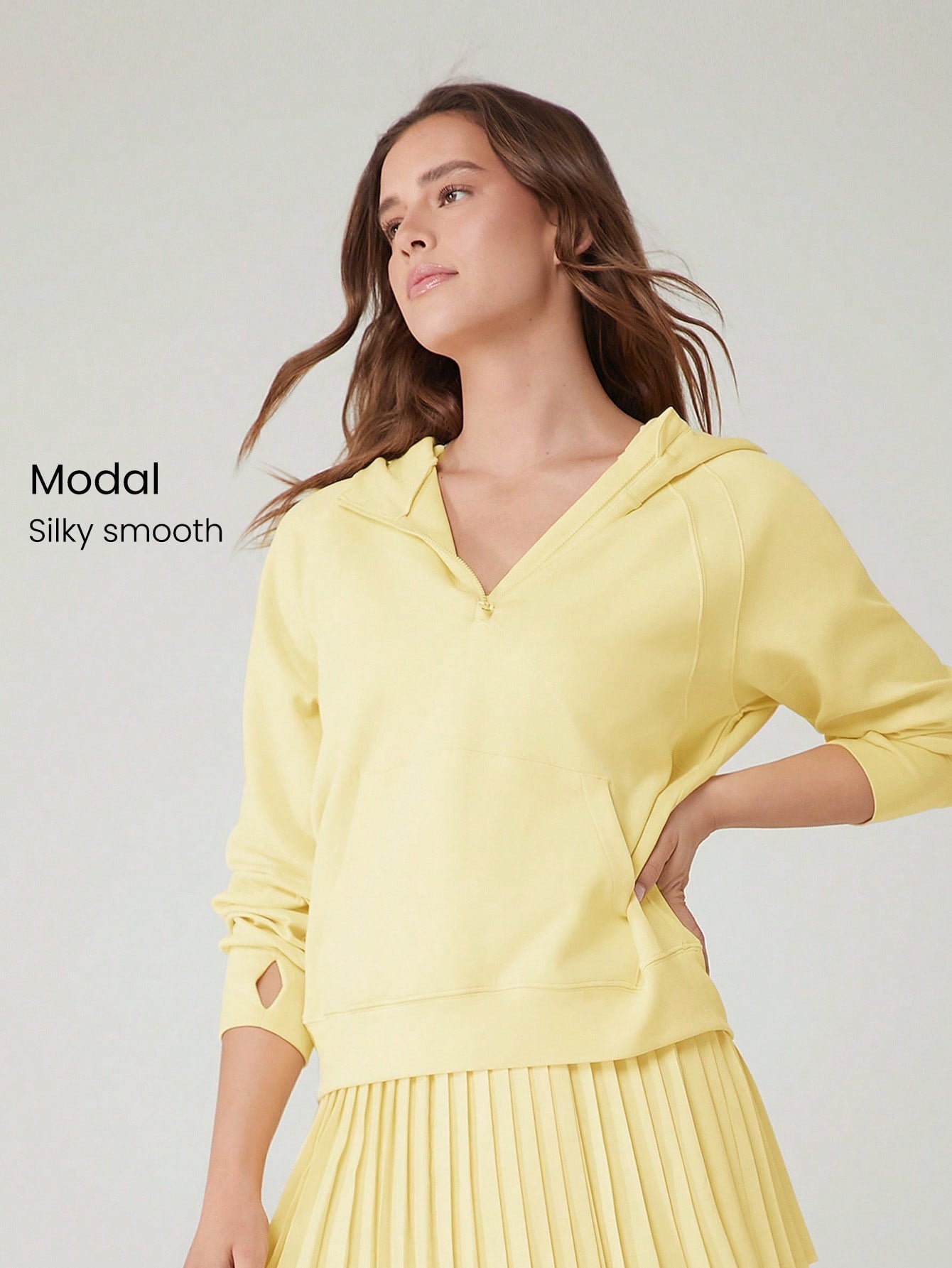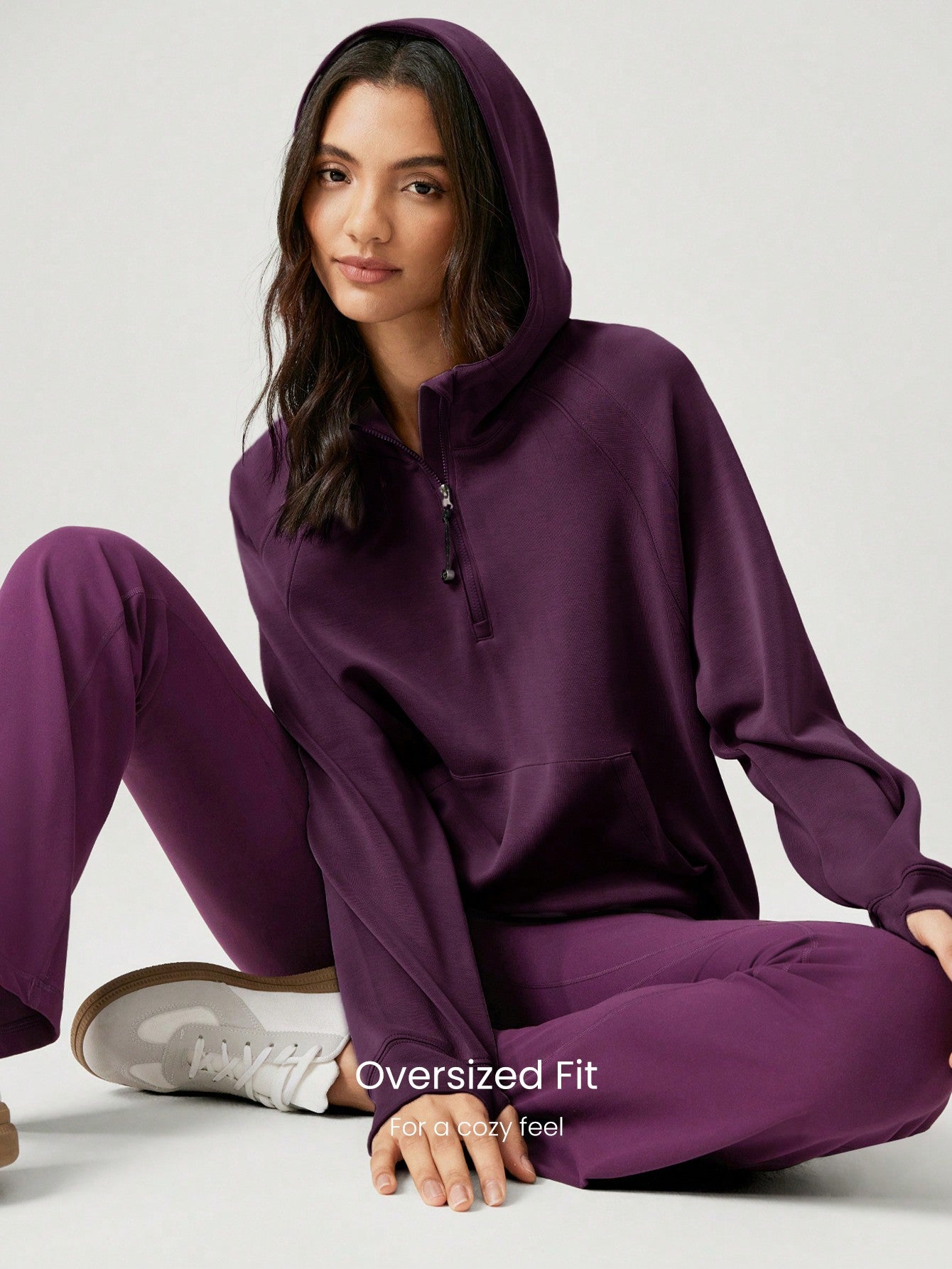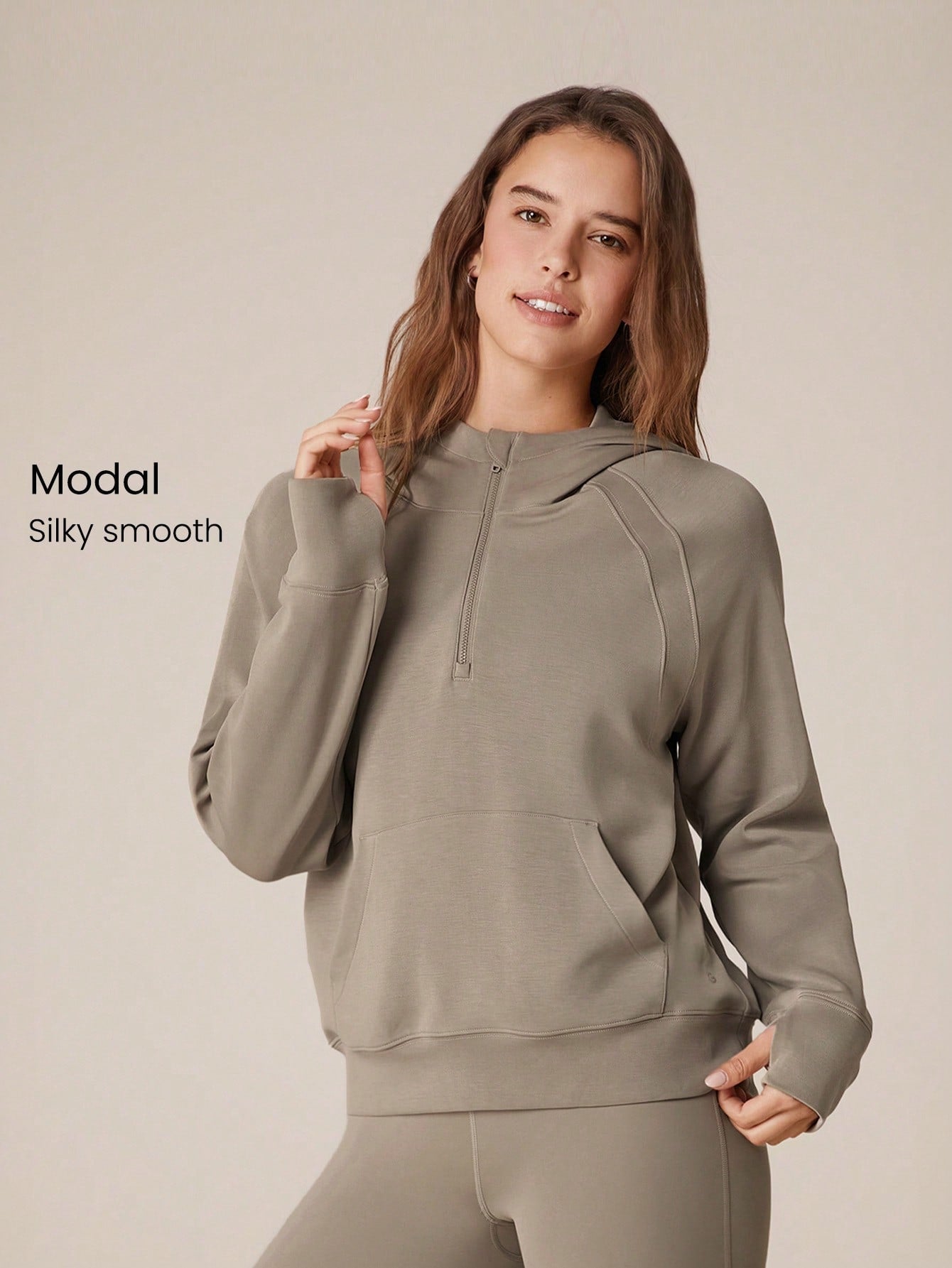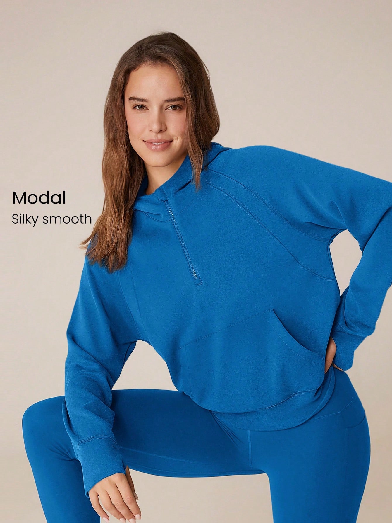 GLOWMODE Modal Silk Touch Oversized Long Sleeve Half-Zip Hoodie Fall