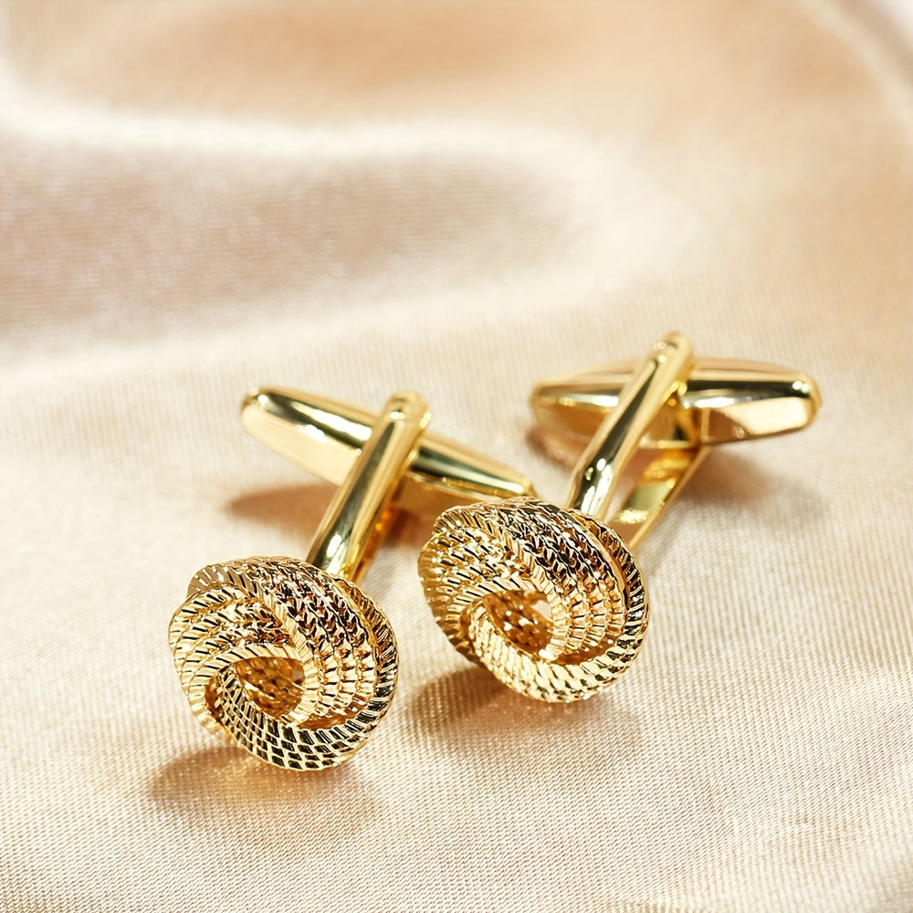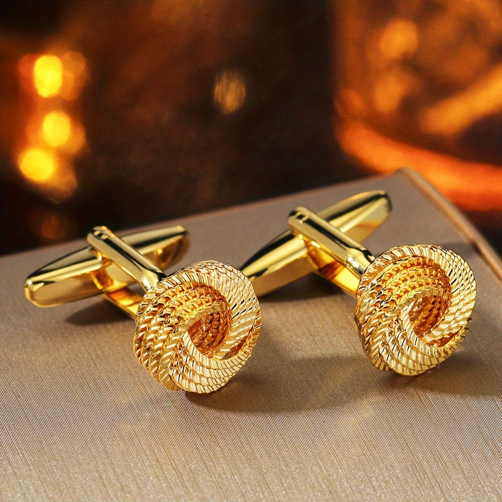 Golden High-end Personality Fashion Twist Weaving French Men's Sleeve Button Business Elegant Banquet Shirt Ornament Sleeve Buckle