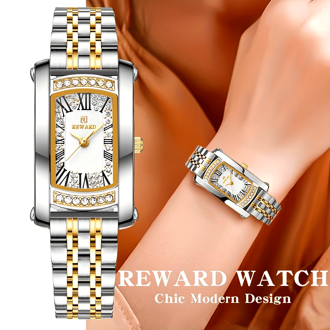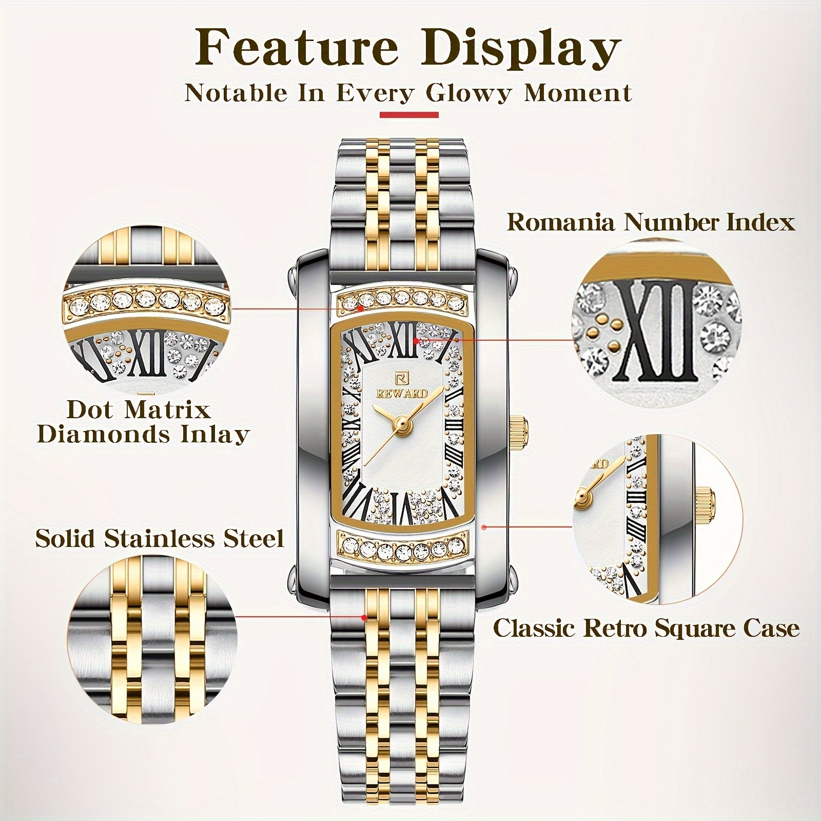 [Golden Luxury Watch] Luxury Retro Golden Rectangle Watch - Stainless Steel Female Wrist Watch for Ladies