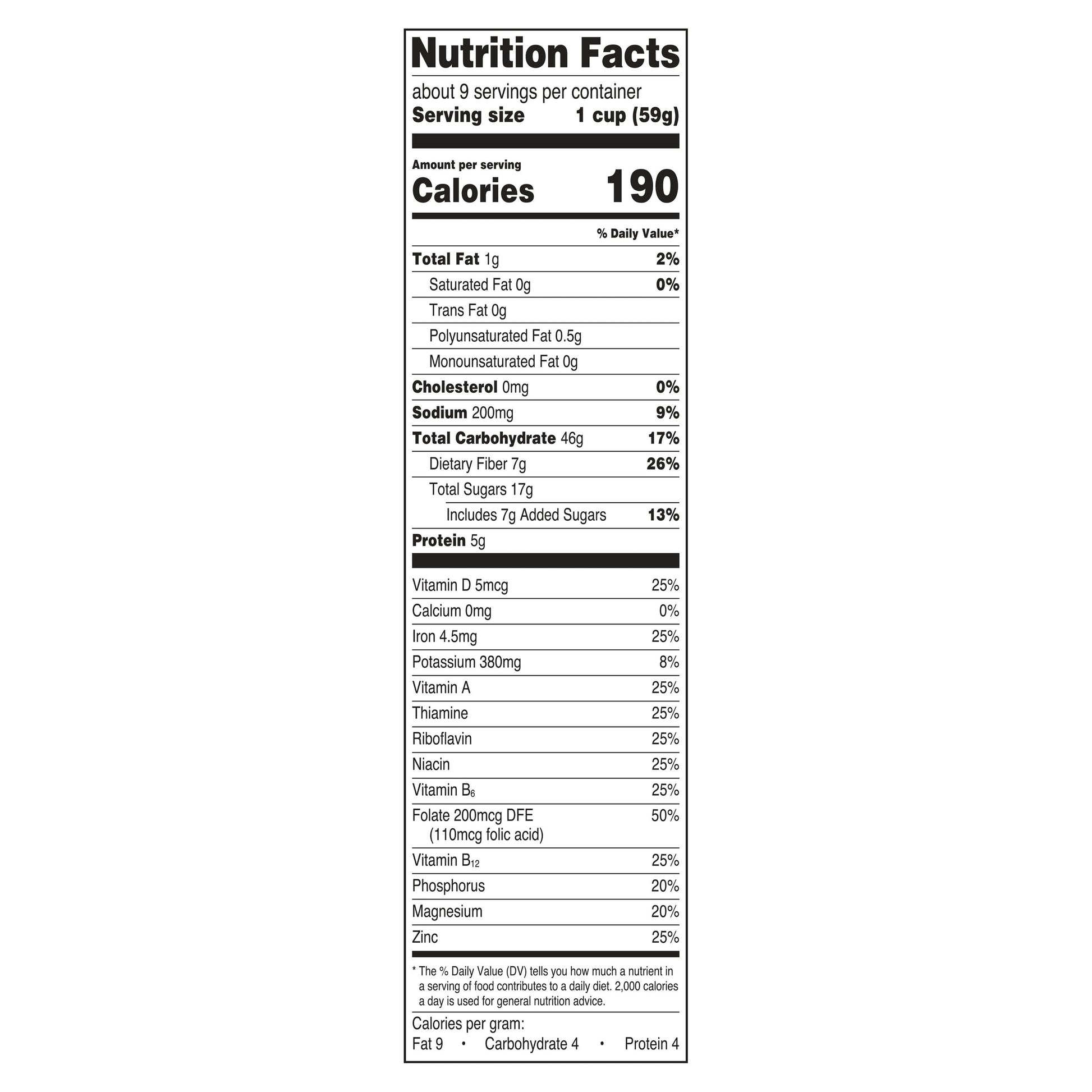 Great Value Raisin Bran Cereal is a great choice for the entire family. One serving of our raisin bran is an excellent source of fiber. It's delicious on its own and a special morning treat when topped with fresh strawberries, sliced bananas, or blueberries. Try the cereal in a baggie for a quick snack on-the-go, or stir some into some yogurt for a crunchy, sweet treat. Great Value Raisin Bran Cereal is a tasty breakfast offering that parents and children alike will love.