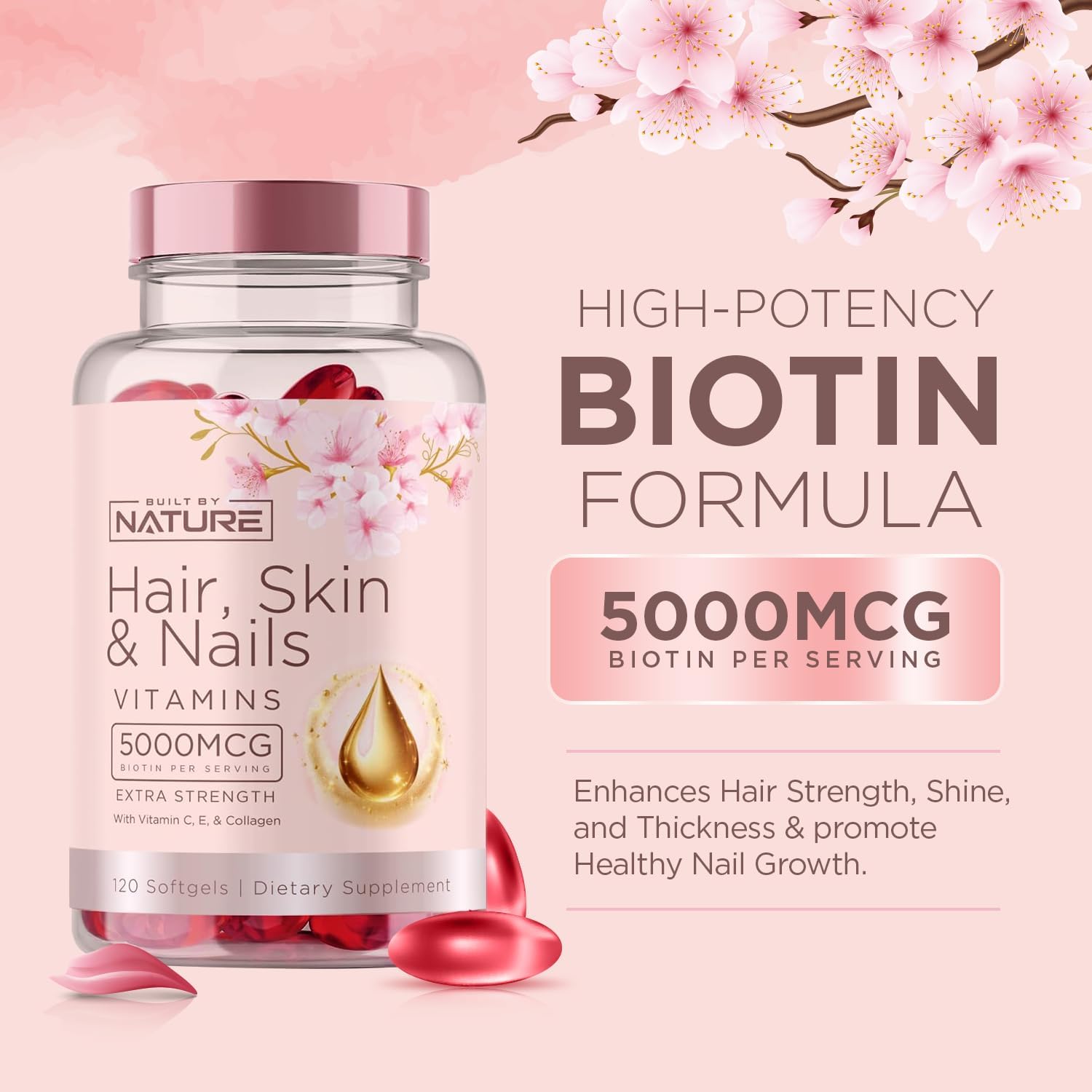 High-Potency Biotin Formula: 5000mcg Biotin, to enhance hair strength, shine, and thickness, and promote healthy nail growth.