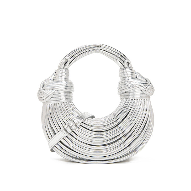 Hand Woven Faux Leather Portable Crescent Women Bag Knotted Noodles Bag Hand Carrying Cloud Underarm Bag