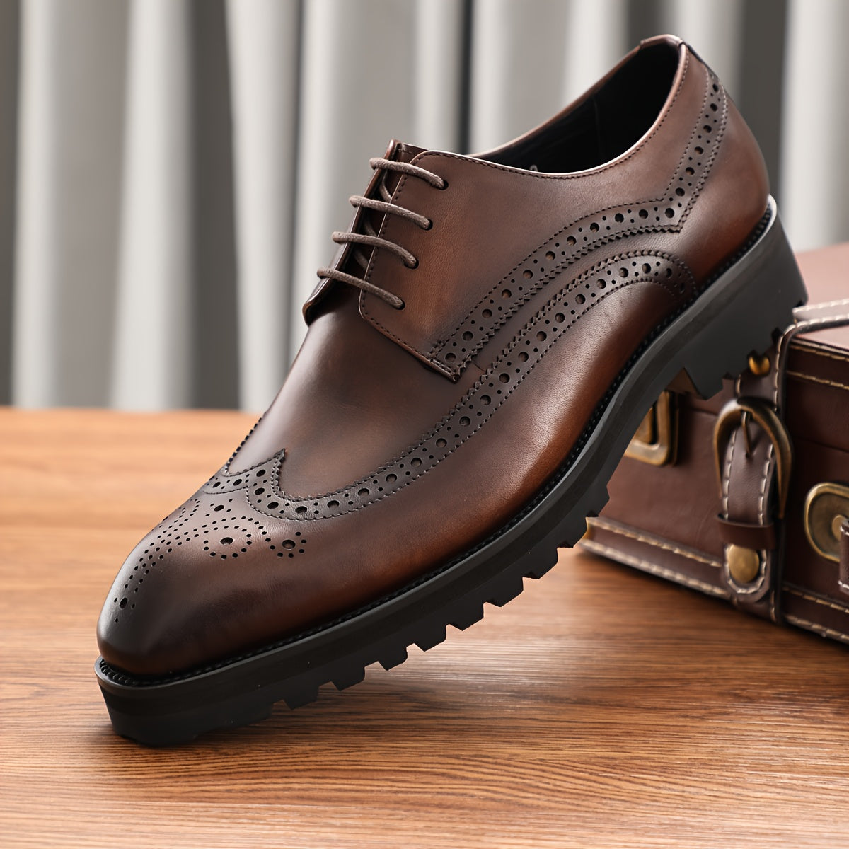 Handcrafted Breathable Men's Premium Brogue Shoes - Thick Sole for Business and Casual Wear, Comfortable