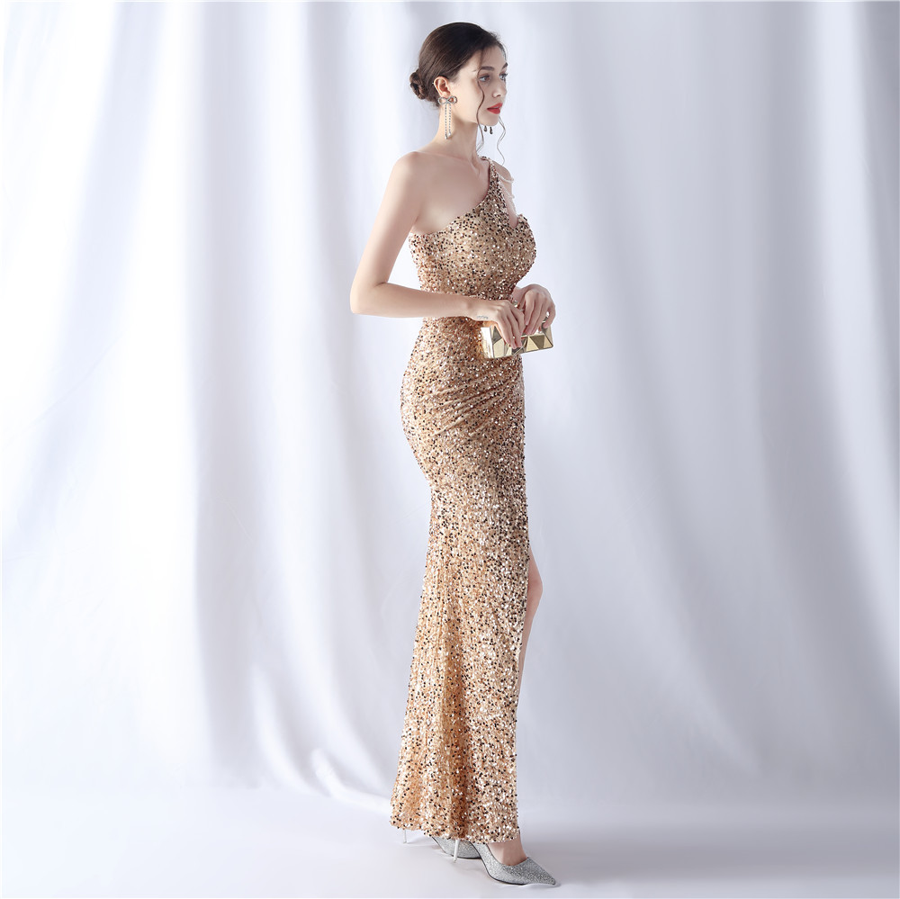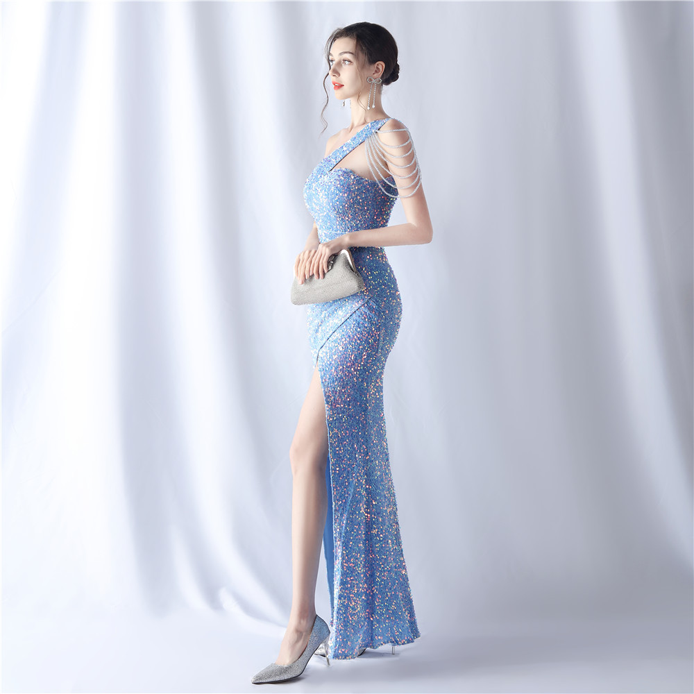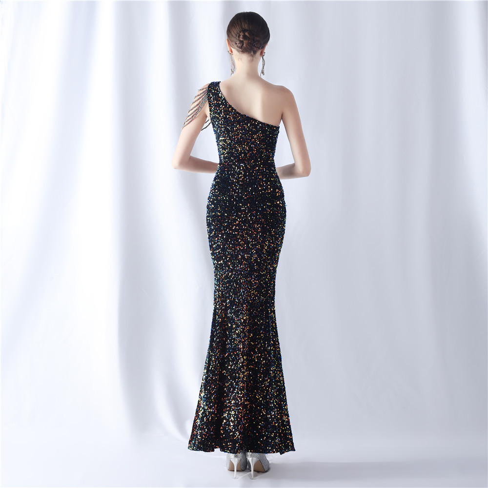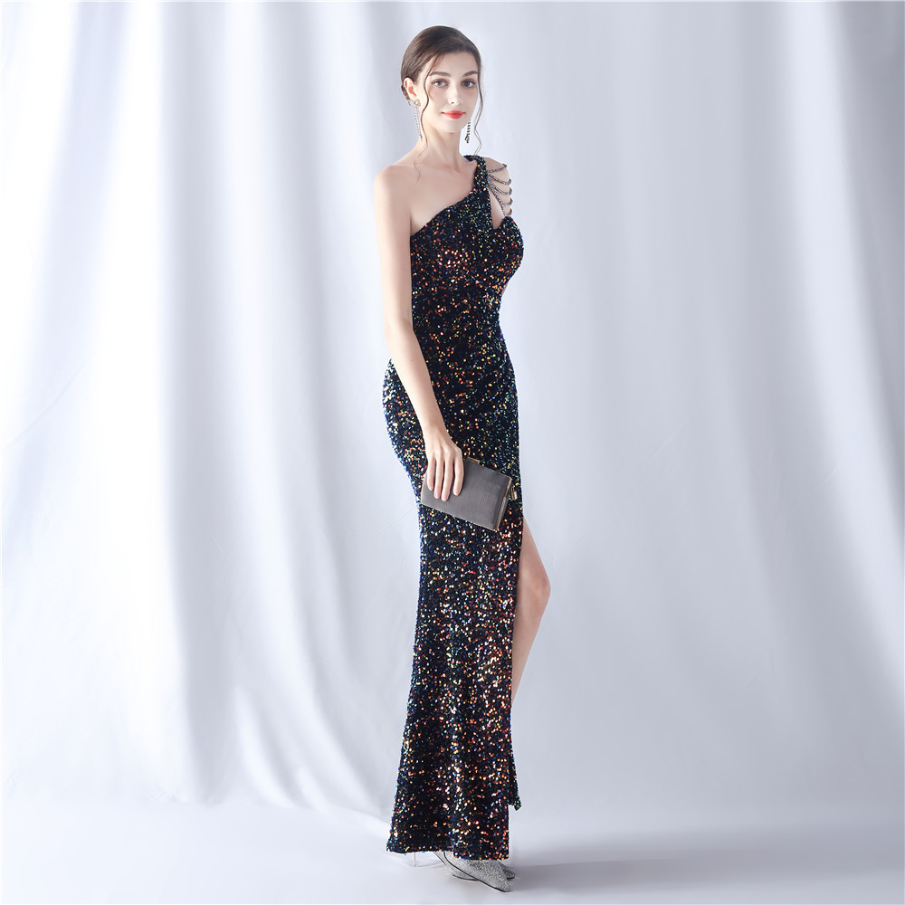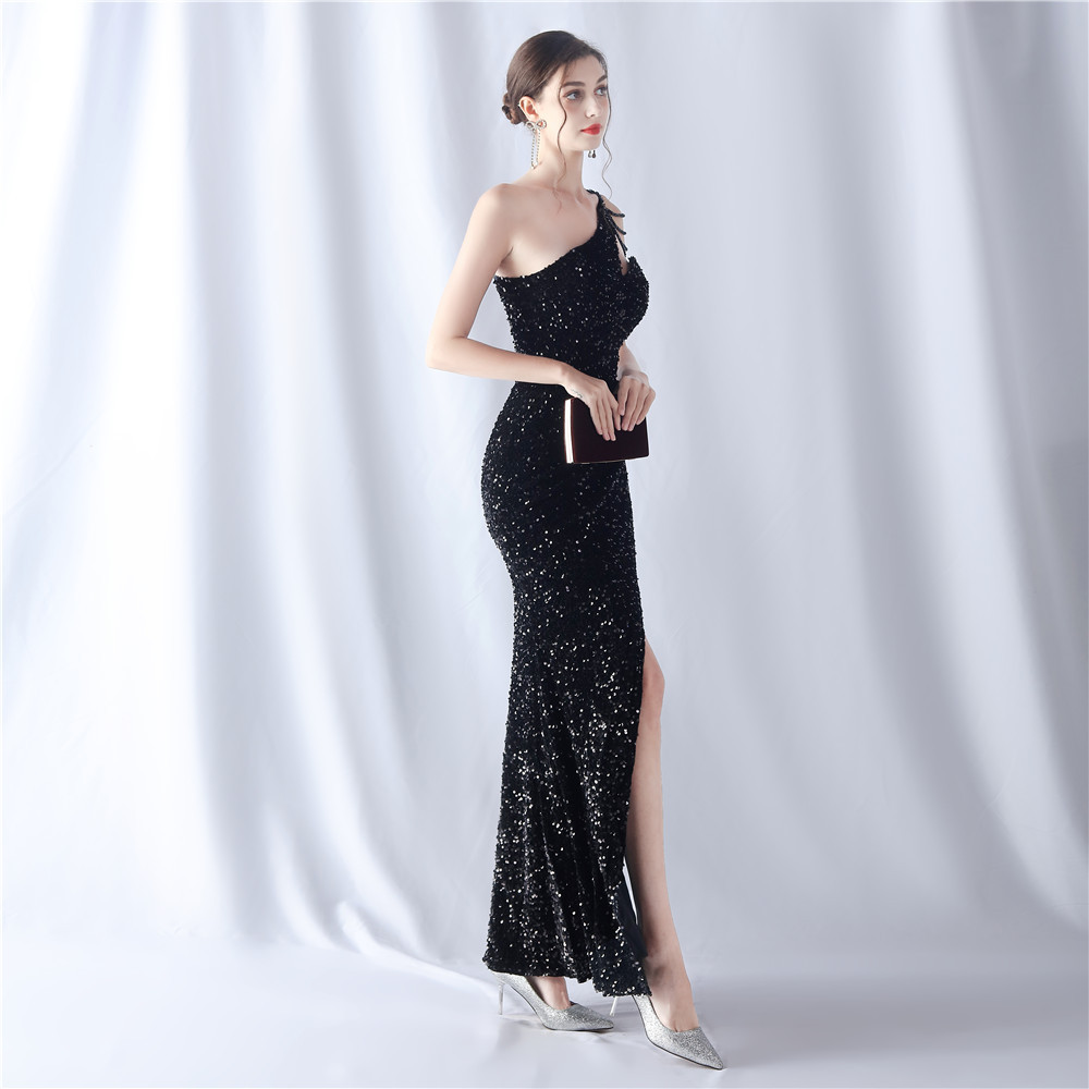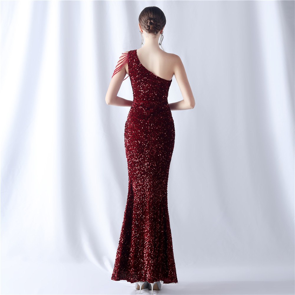 Handmade Beaded Velvet Bottom Sequin Dinner Annual Meeting Wedding Evening Dress
