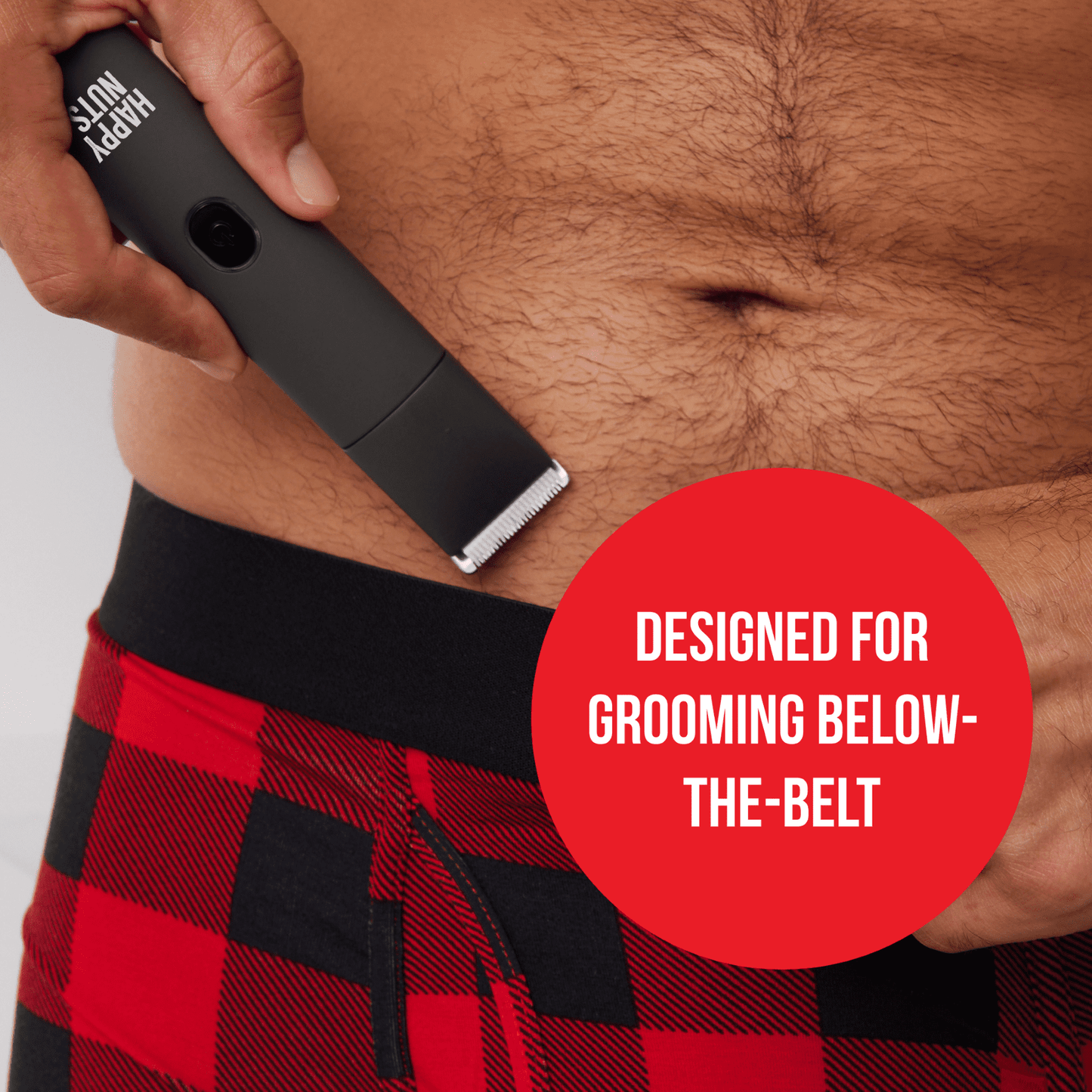 Introducing the Happy Nuts Lumberjack Electric Body Hair Trimmer for Men, the ultimate grooming tool for the modern man. This trimmer is not your average men's grooming tool. It's a high-performance, precision-engineered machine specifically designed for men's body hair trimming. The trimmer is equipped with a nut-safe blade that's engineered for the ultimate nut-keeping. Say goodbye to the uncomfortable and painful experiences of cuts, nicks, pulling, tugging, and snags. This trimmer is all about making your manscaping routine safe, easy, and efficient.