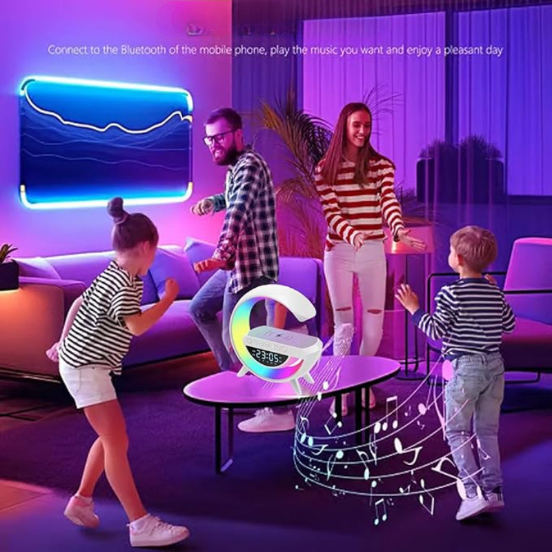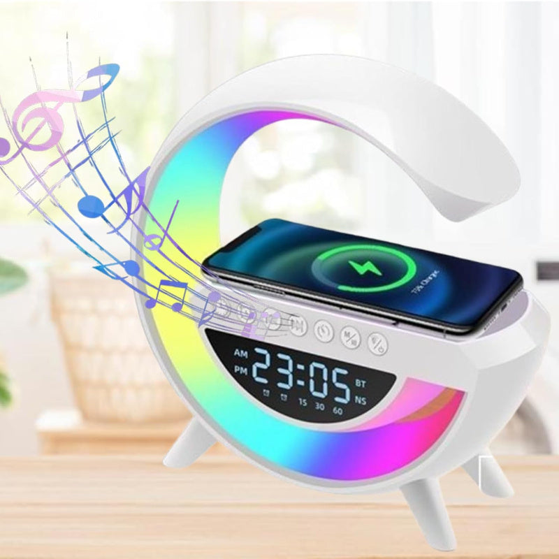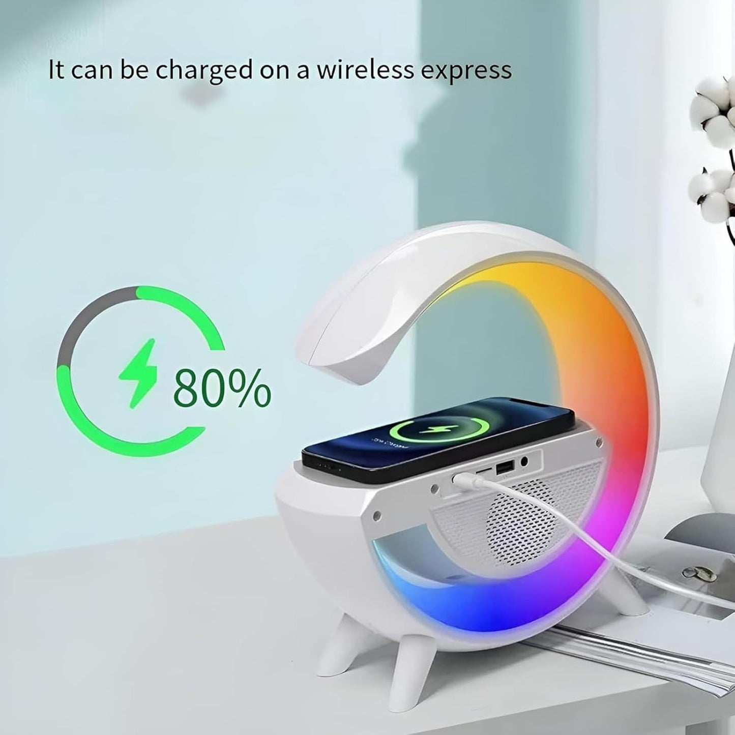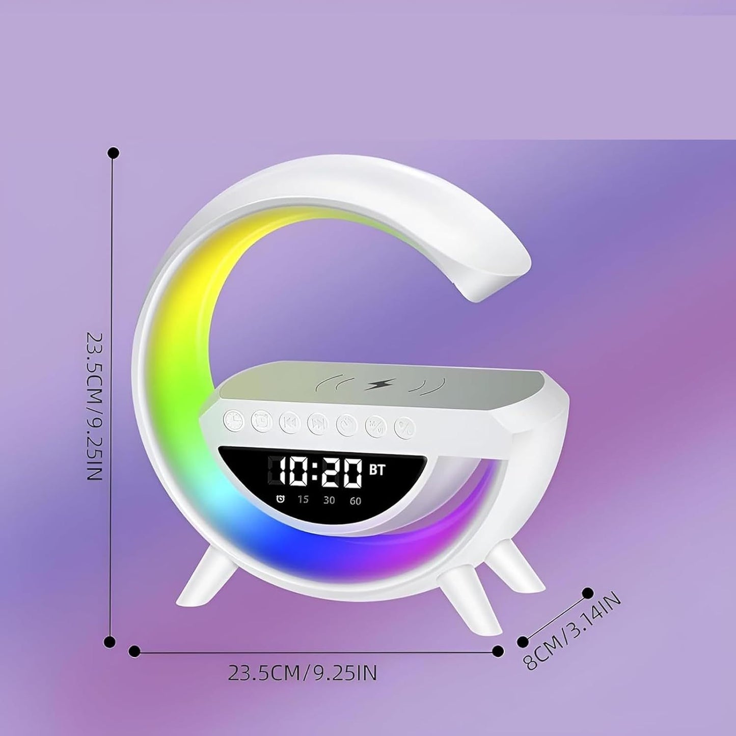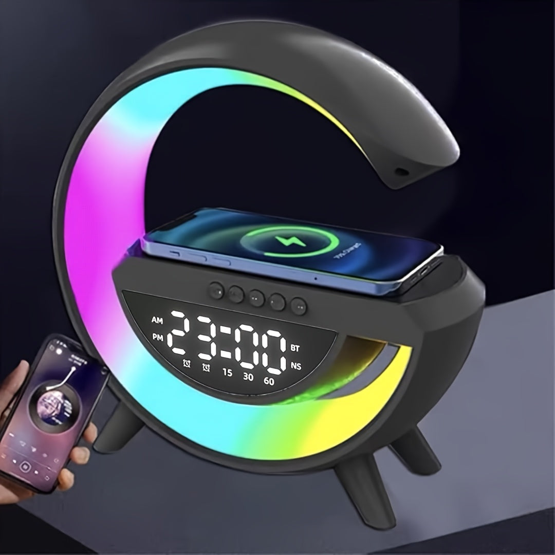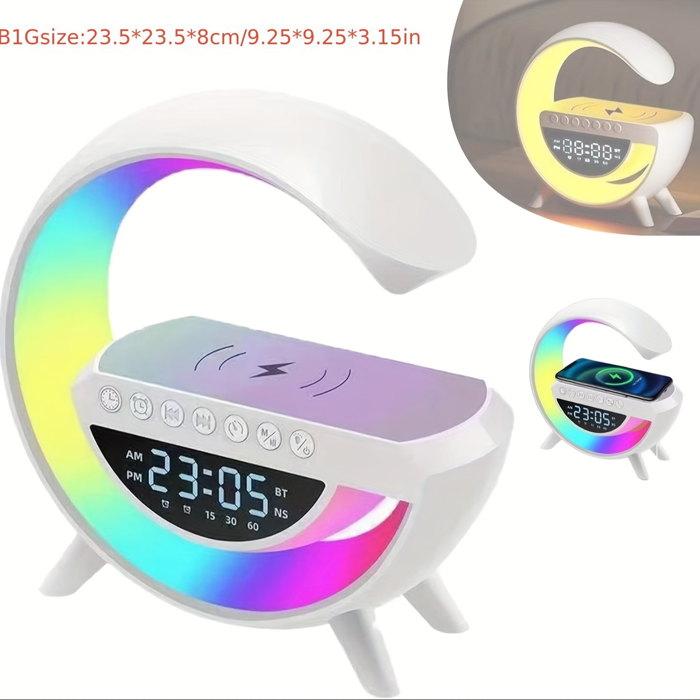 Haut-Parleur de Charge Sans Fil LED de Grande Taille, Lampe de Nuit RGB Multifonctionnelle, Chargeur Sans Fil avec Haut-Parleur, Haut-Parleur Sans Fil 4 en 1 avec Lumières RGB, Horloge (1pc)