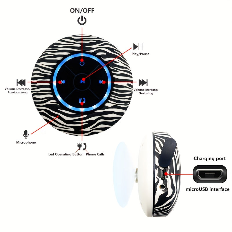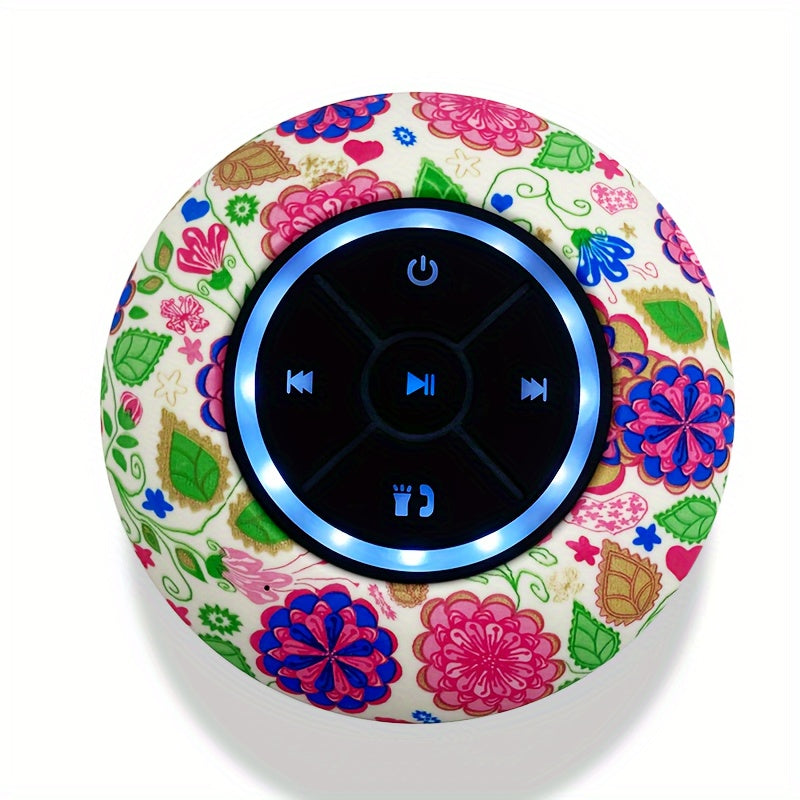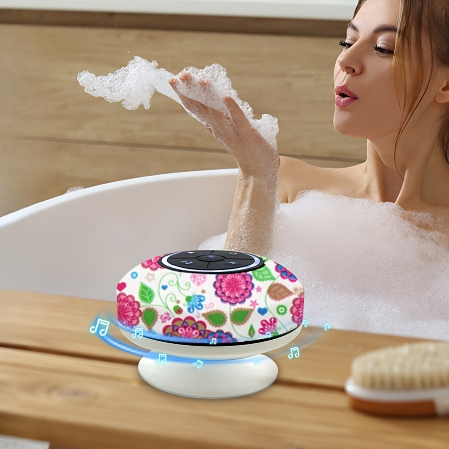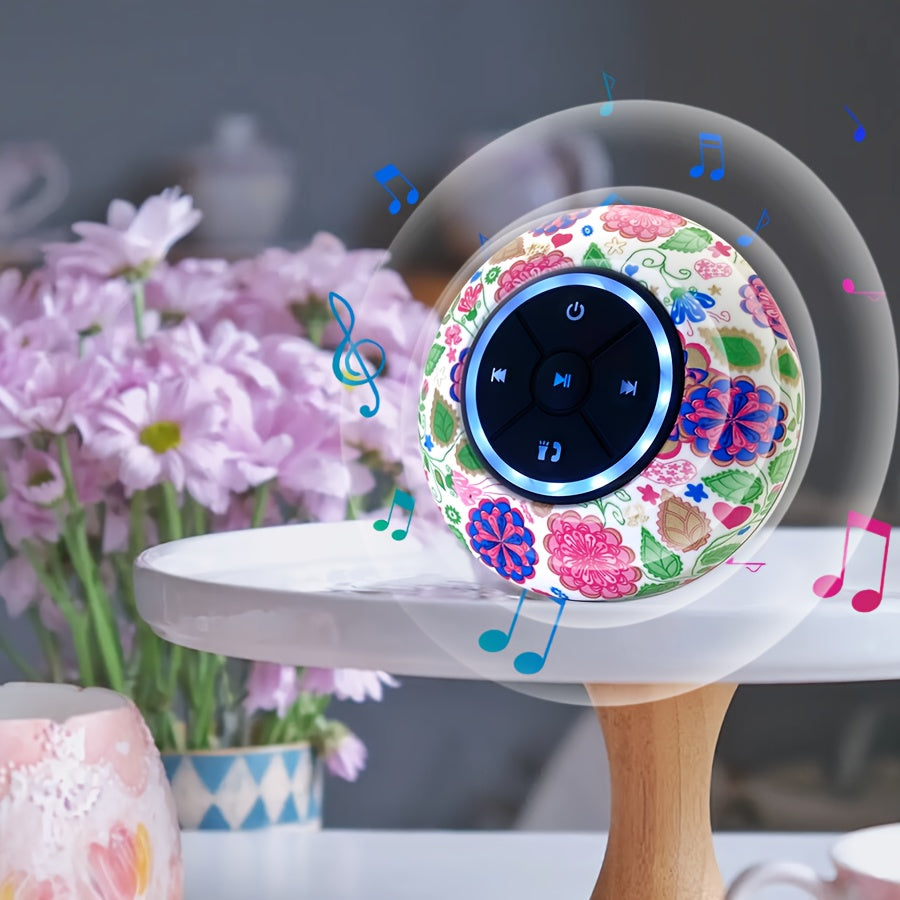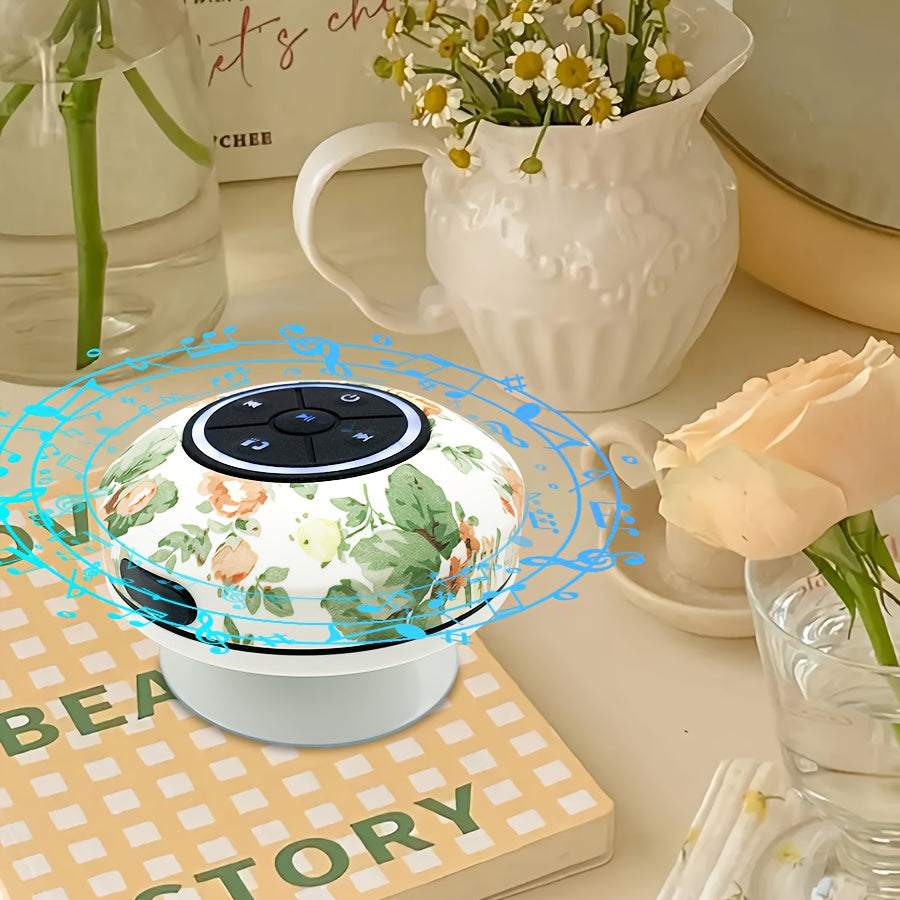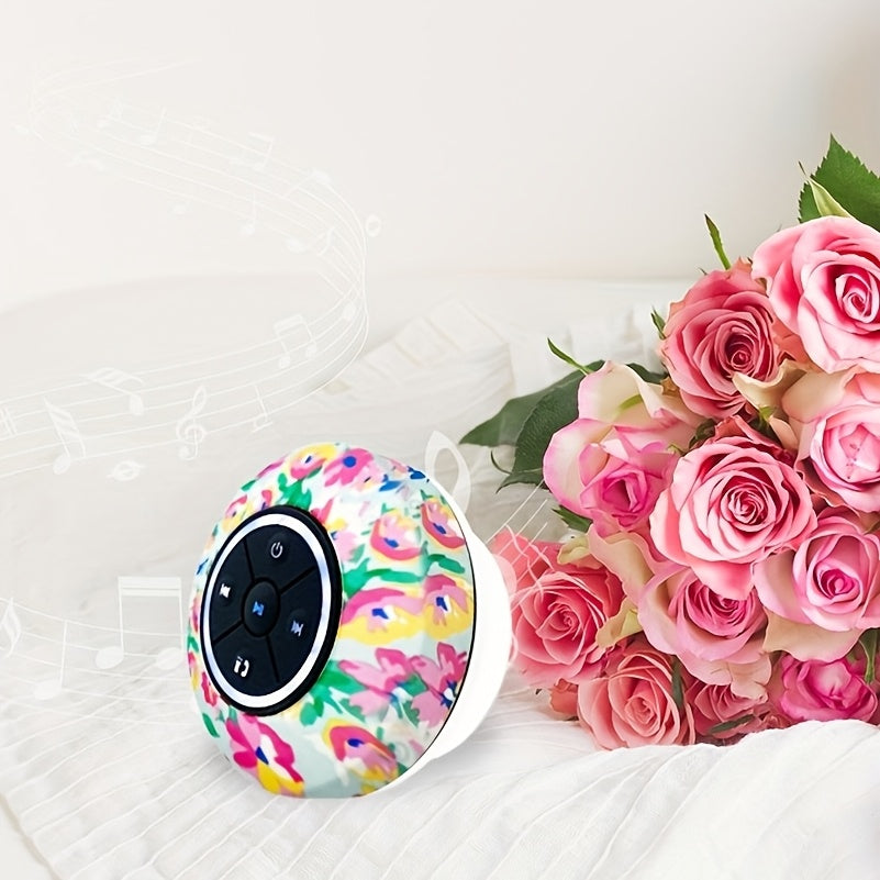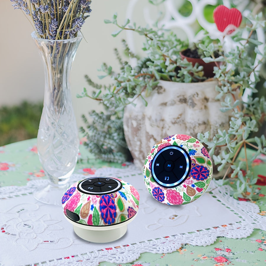 Haut-Parleur Nouveau Design 2025, Motif d'Impression de Fleurs, Boîte d'Interface Audio Sans Fil avec Charge USB et Contrôle par Bouton, Batterie Rechargeable au Lithium Polymère, Compatible avec les Smartphones, Grande Ventouse pour un Montage Facile
