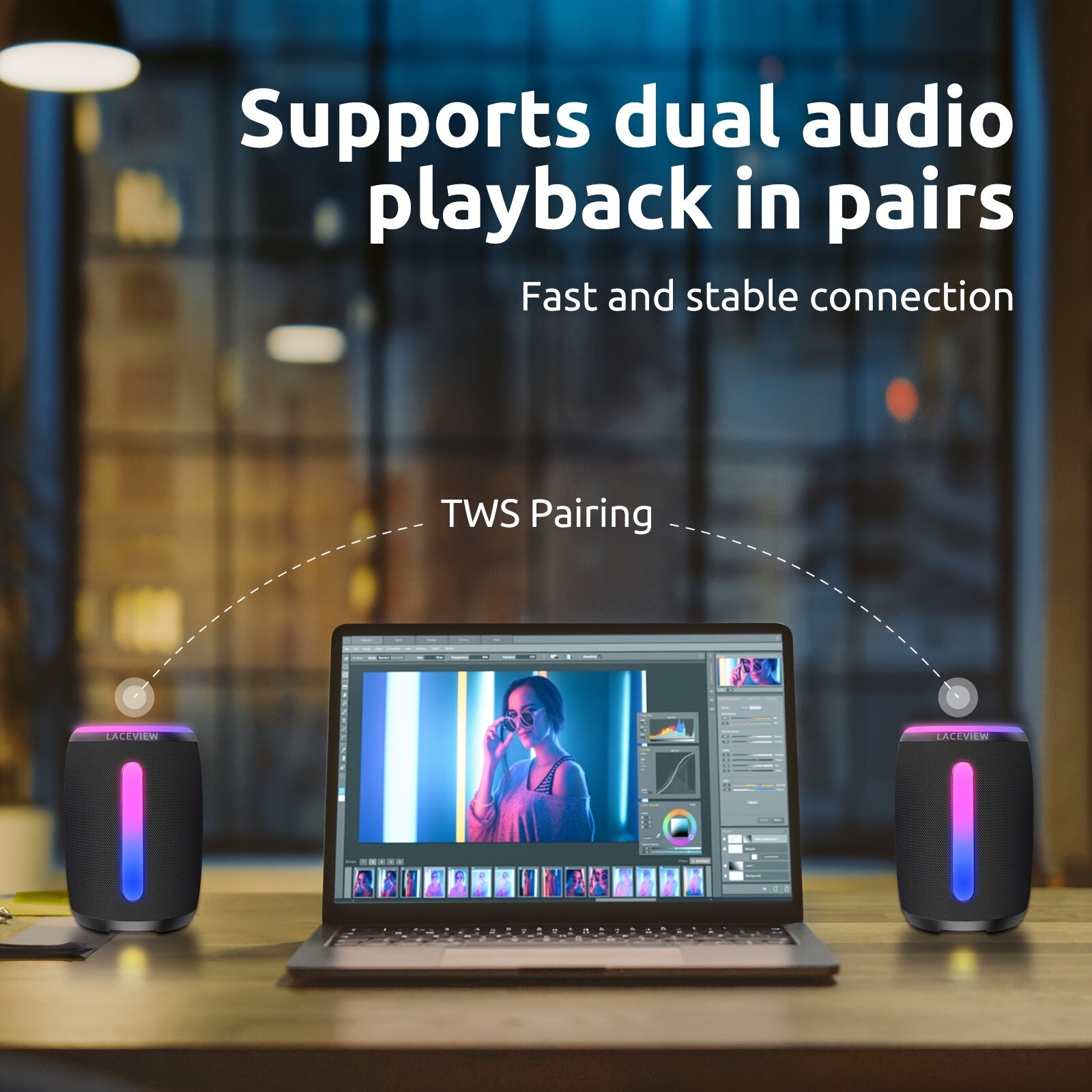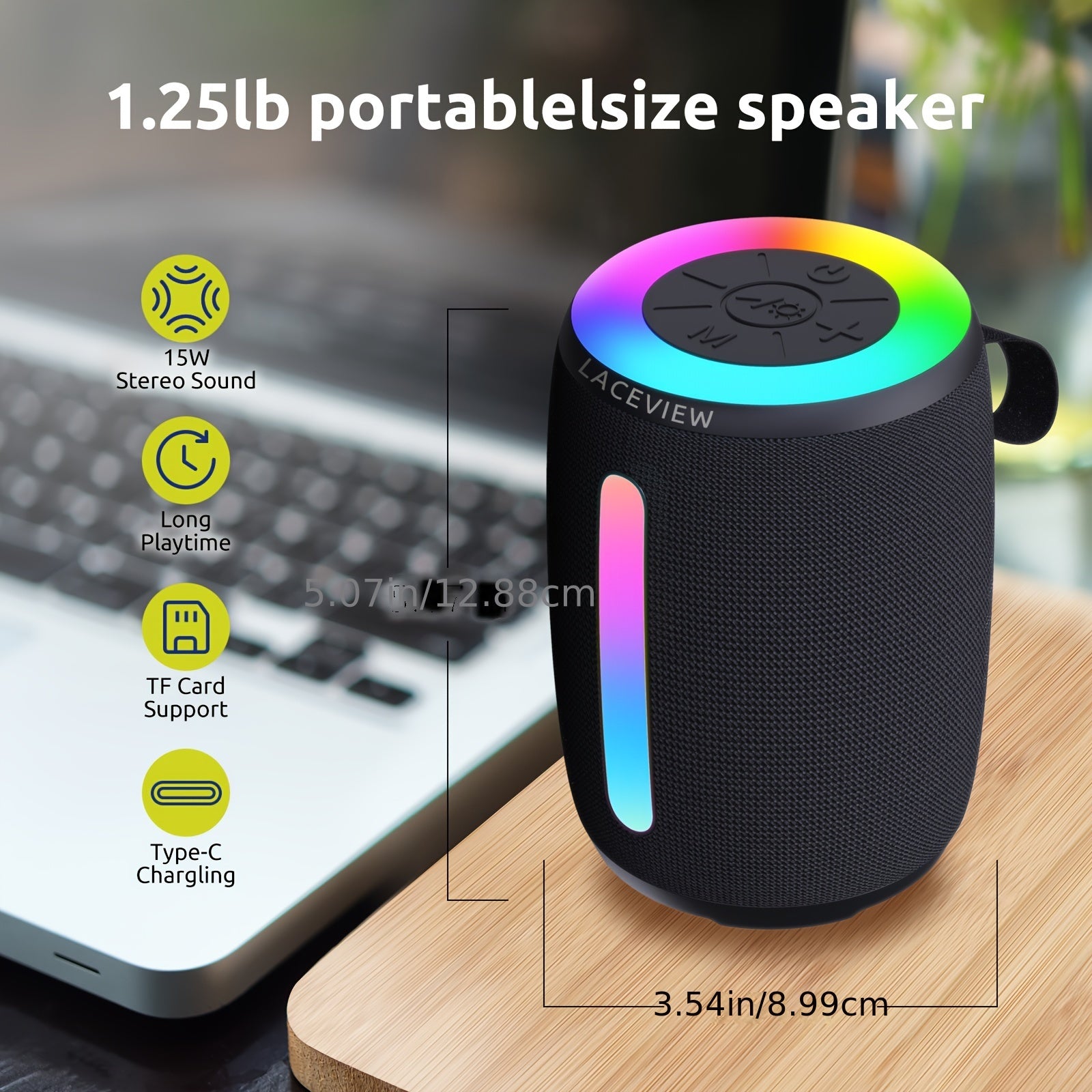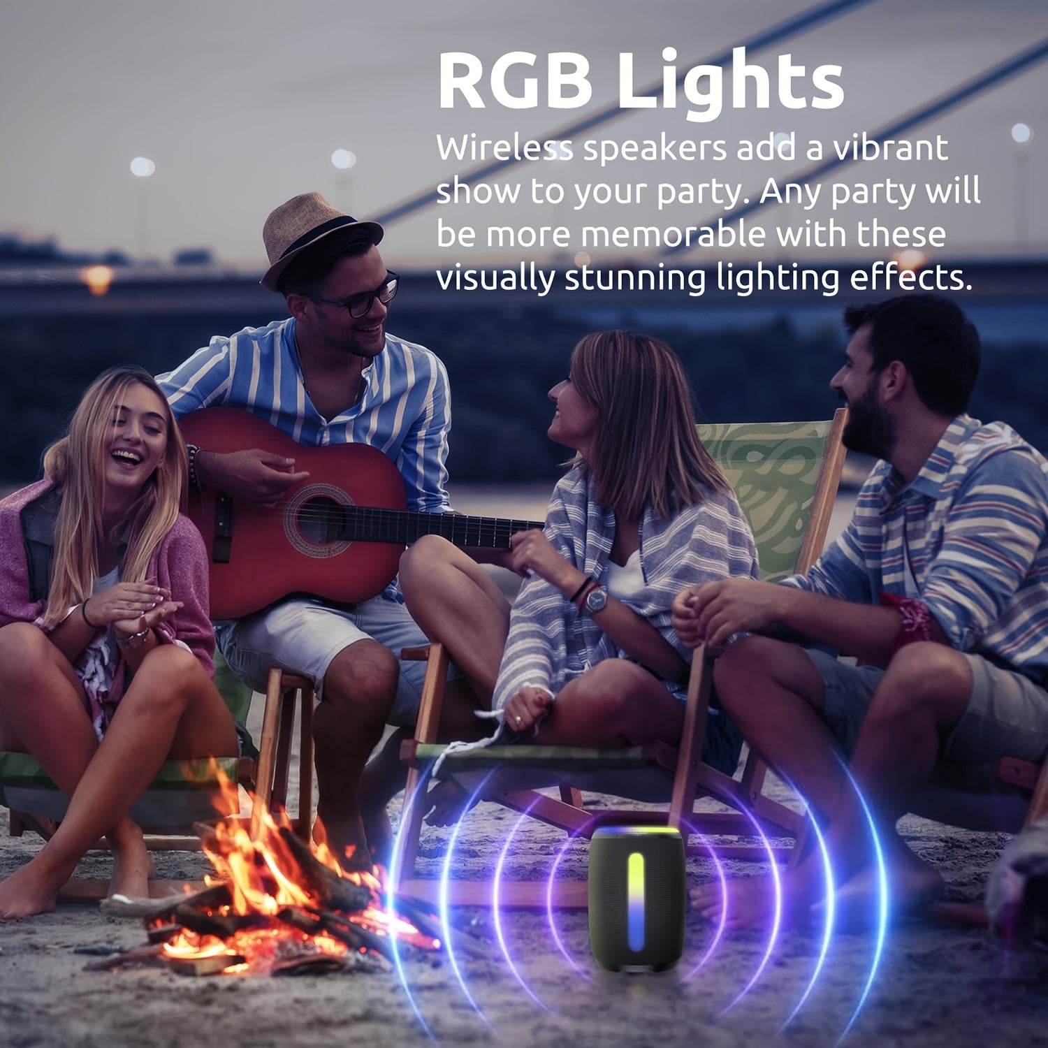 Haut-Parleur Sans Fil Portable avec Appairage TWS, Lumières LED Dynamiques Vibrantes, Fonctionnalités d'Appel & Radio FM, Support USB AUX, Idéal pour le Camping en Plein Air et les Fêtes