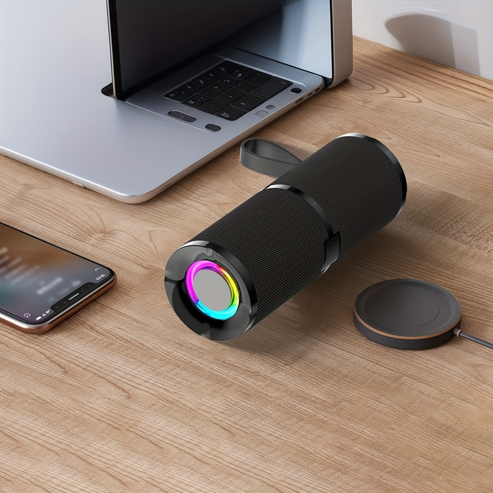 Haut-parleur sans fil portable, qualité sonore HD, haut-parleur avec lumière LED, temps de lecture jusqu'à 24 heures, basses profondes, mise en paire TWS, prise en charge de la carte Tf/câble Aux, microphone intégré, parfait pour les fêtes, la maison, l'e