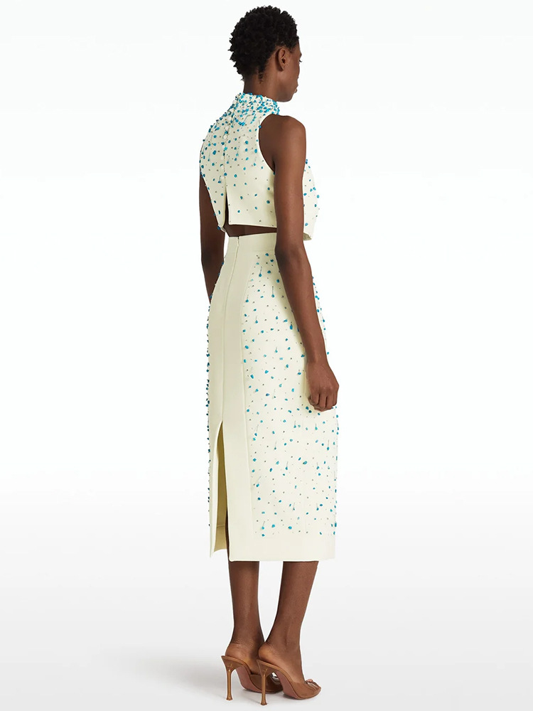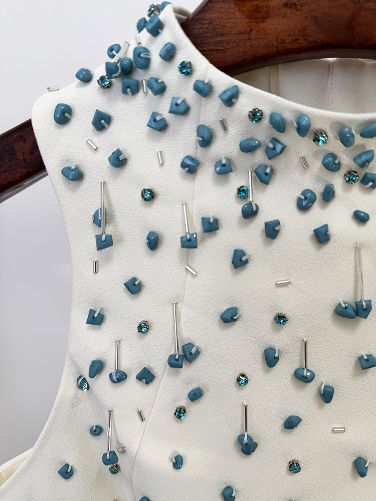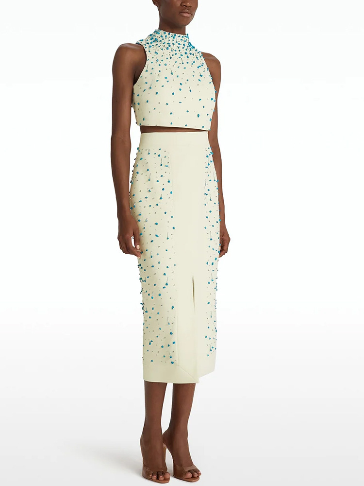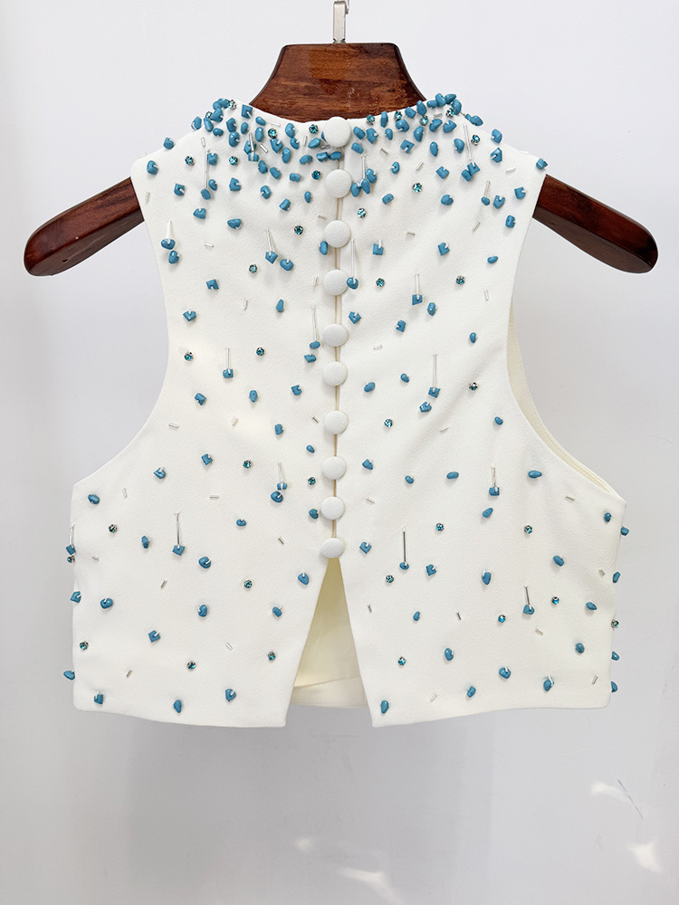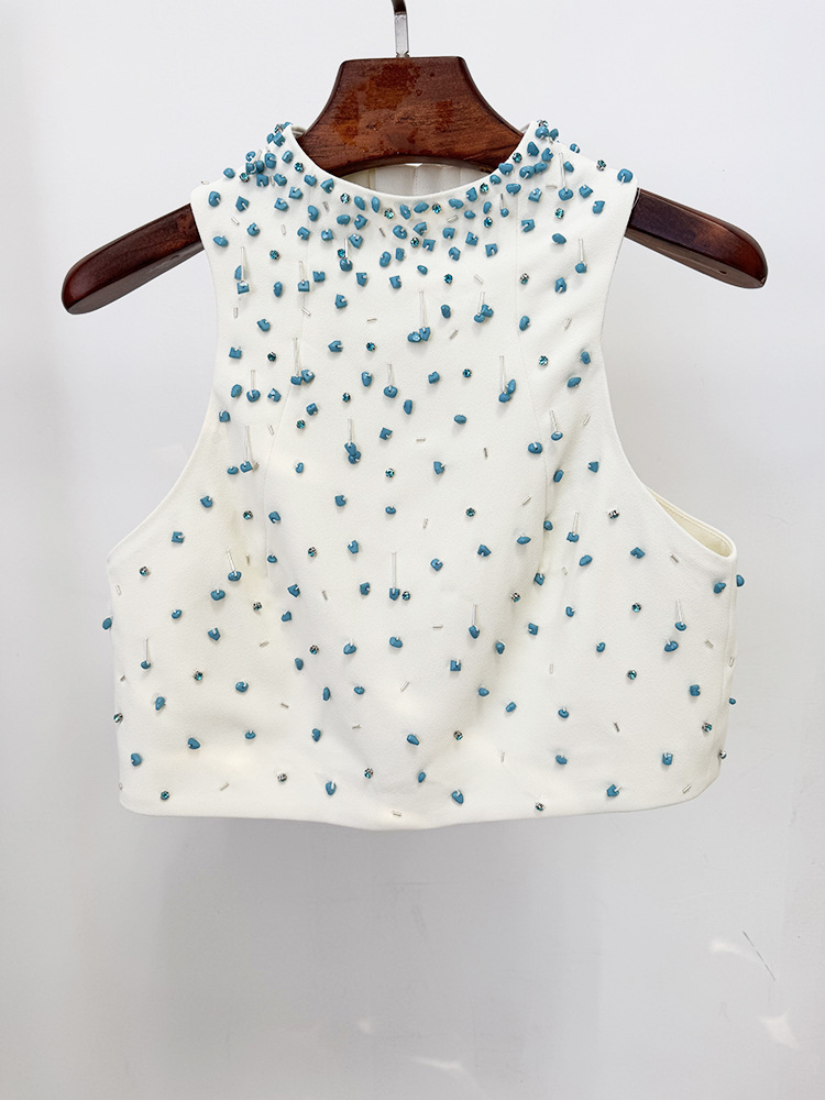 Heavy Industry Beads Vest Top Split Skirt Two Piece Sets