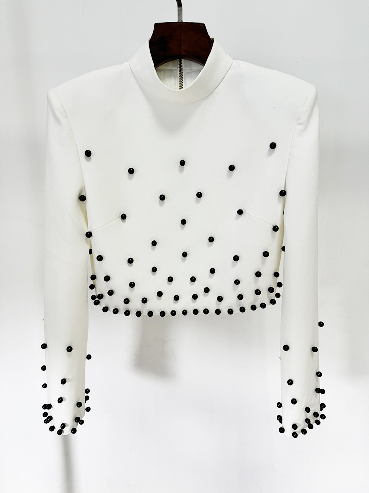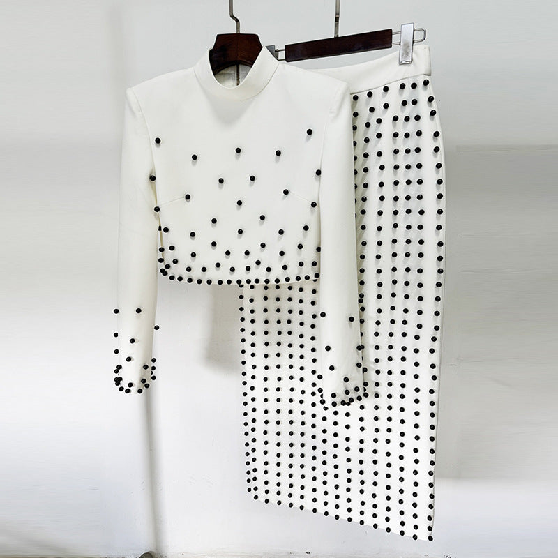 Heavy Industry Pearl Beaded Short Top Skirt Set Two Piece Set