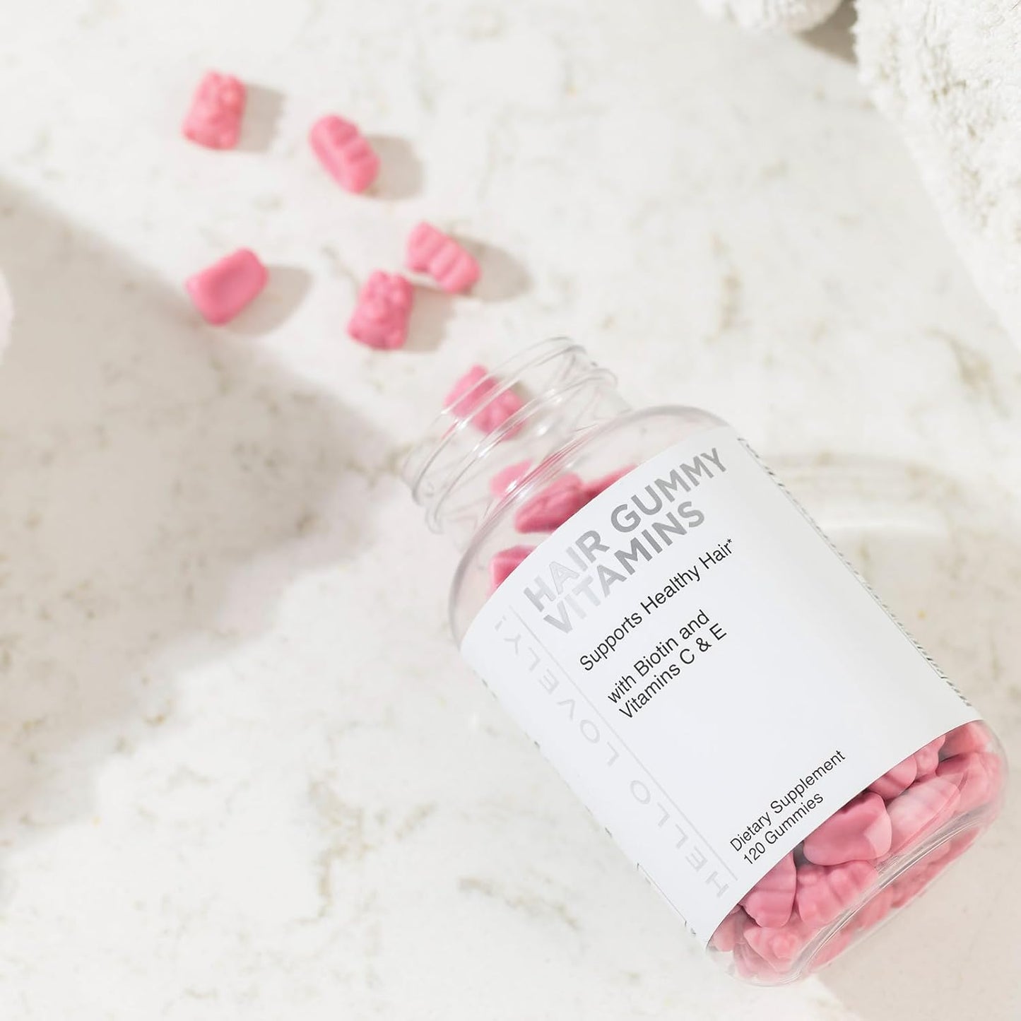 Hello Lovely! Hair Vitamins Gummy with Biotin 5000 mcg Vitamin E & C Support Hair Growth, Premium Vegetarian Non-GMO, for Stronger Beautiful Hair, Skin & Nails Supplement - 120 Bear Gummies