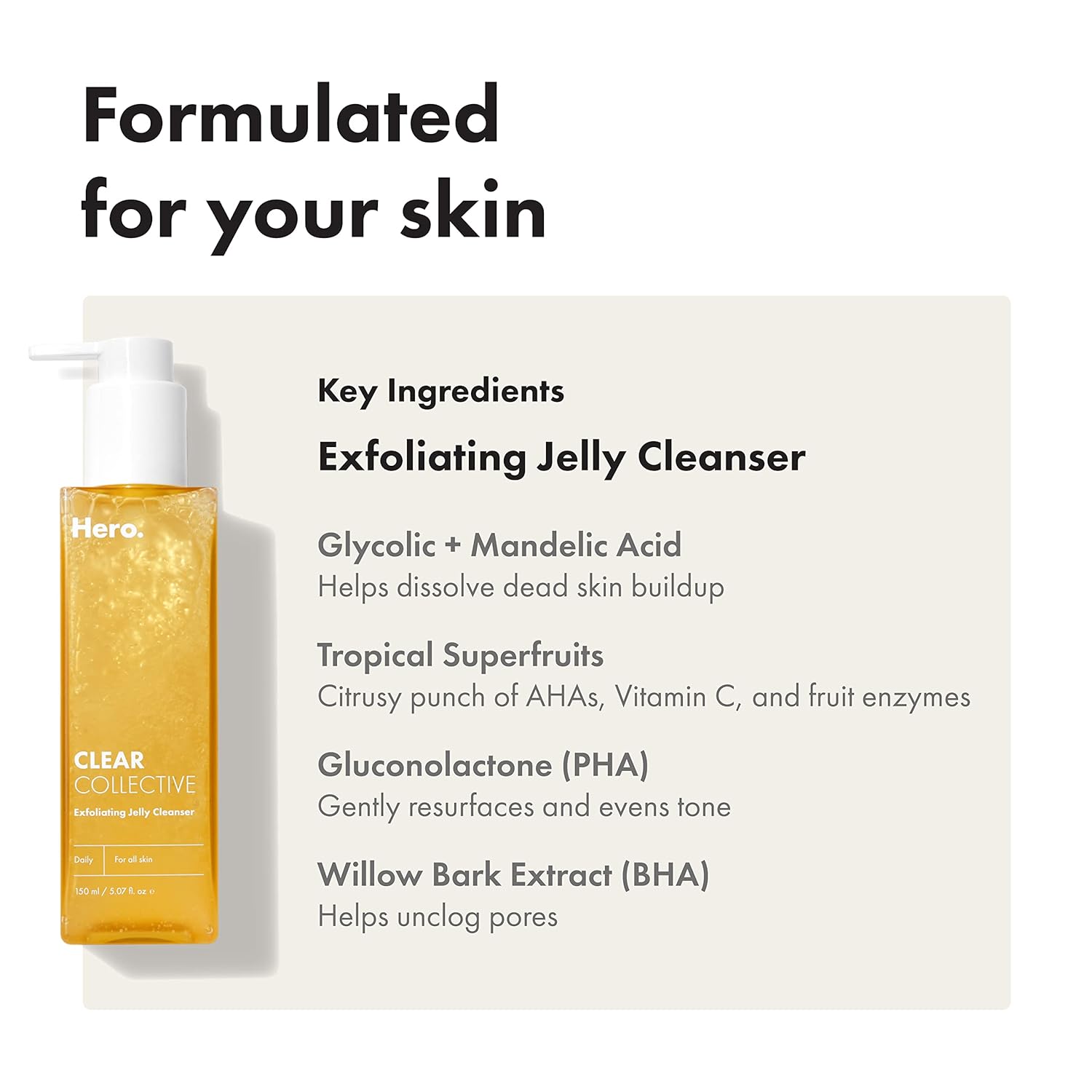 Hero Cosmetics Clear Collective Exfoliating Jelly Cleanser - Gentle Daily Foam Facial Cleanser, Removes Oil and Dead Skin, Fragrance and Paraben Free (5.07 fl oz)