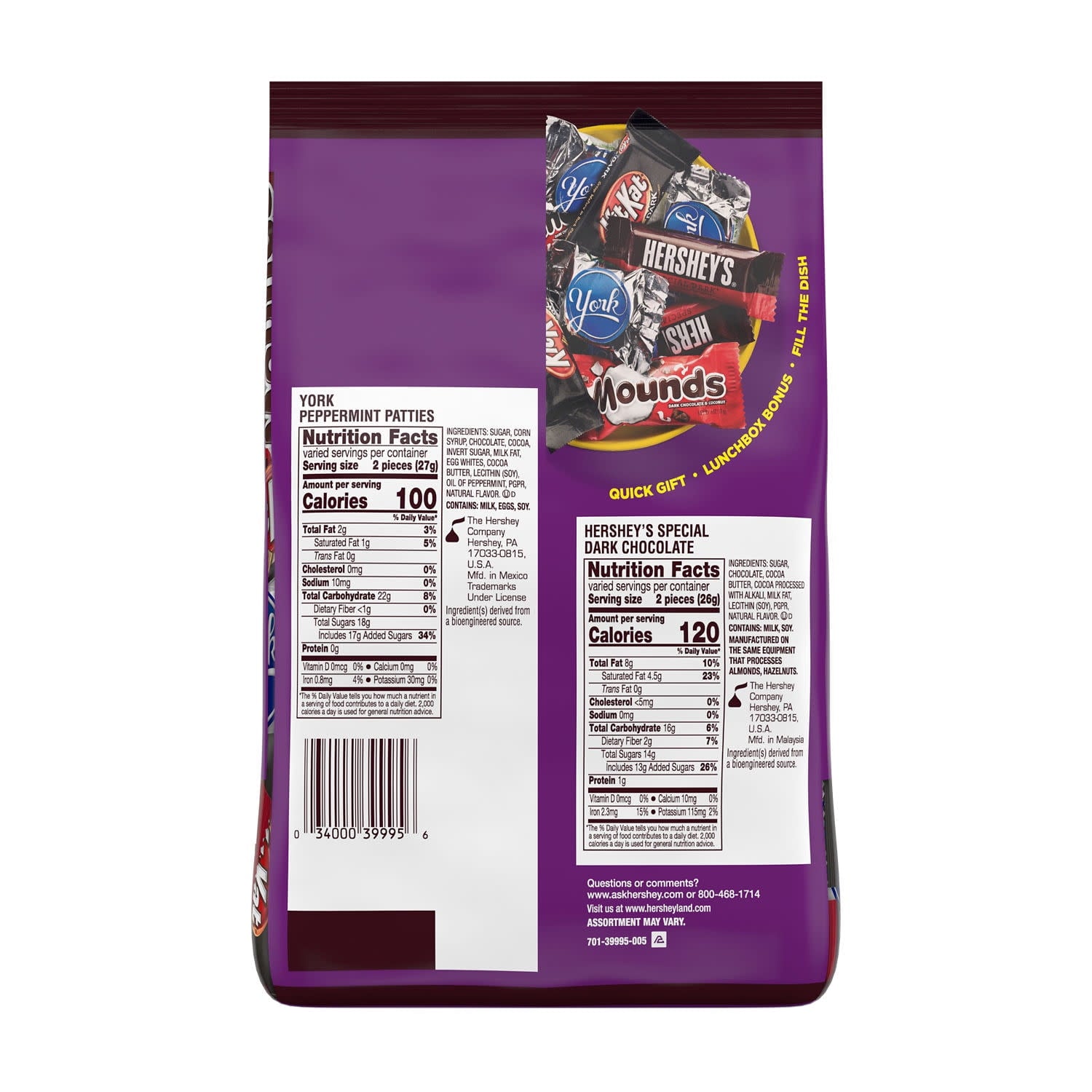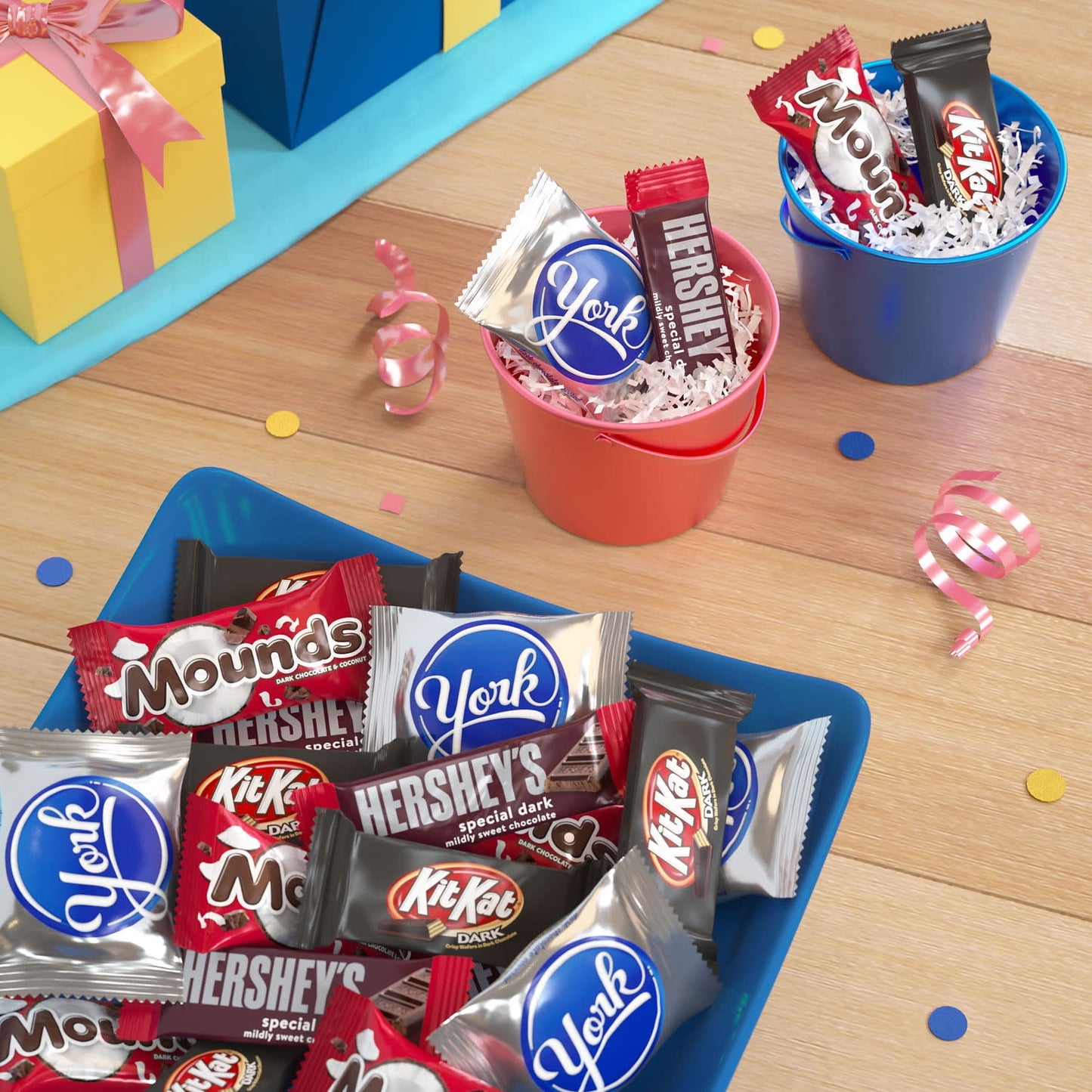 - Includes HERSHEY'S SPECIAL DARK mildly sweet chocolate bars, KIT KAT dark chocolate wafer candy bars, YORK dark chocolate peppermint patties candy and MOUNDS dark chocolate and coconut candy bars