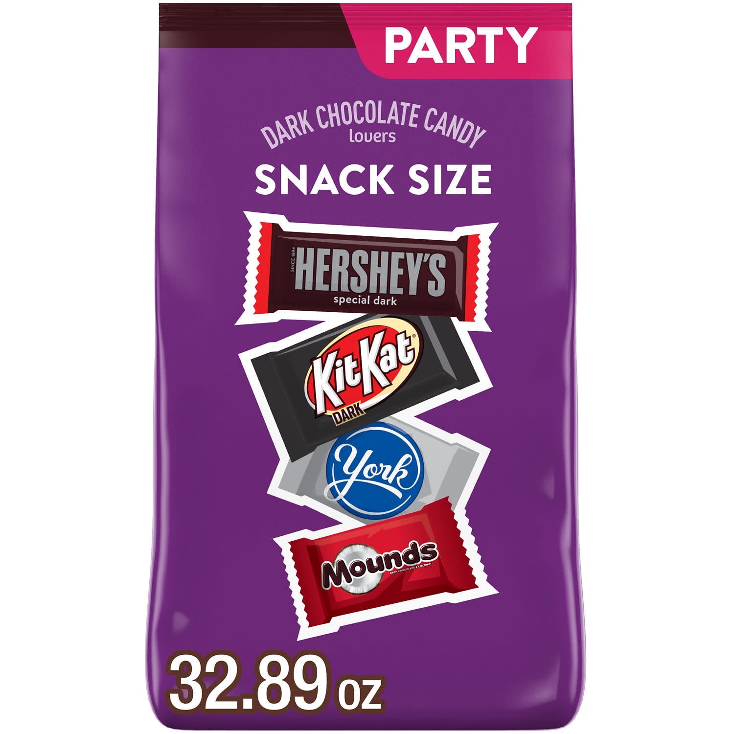 - Contains one (1) 32.89-ounce bulk party pack of Hershey Dark Chocolate Lovers Assorted Dark Chocolate Snack Size Candy